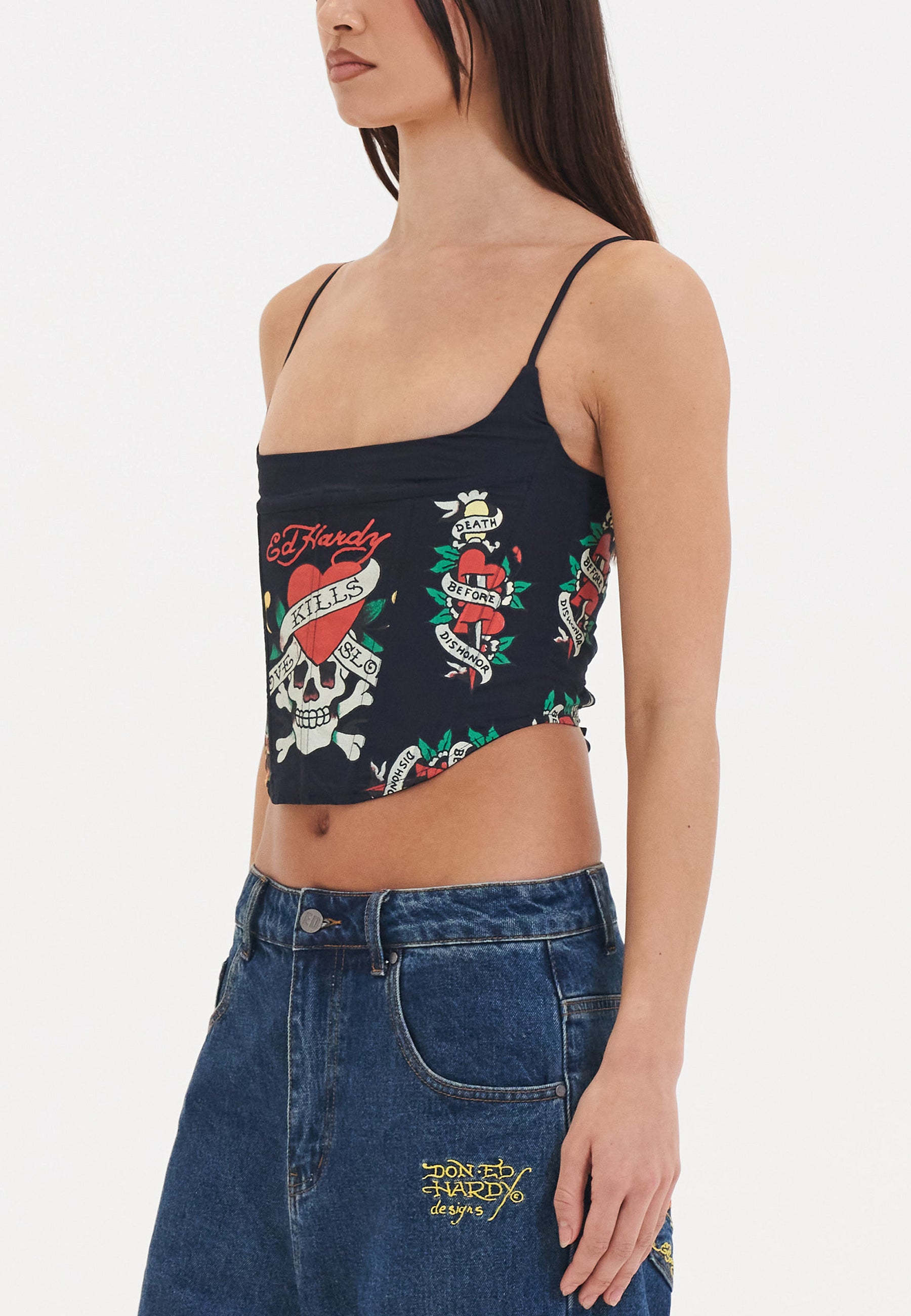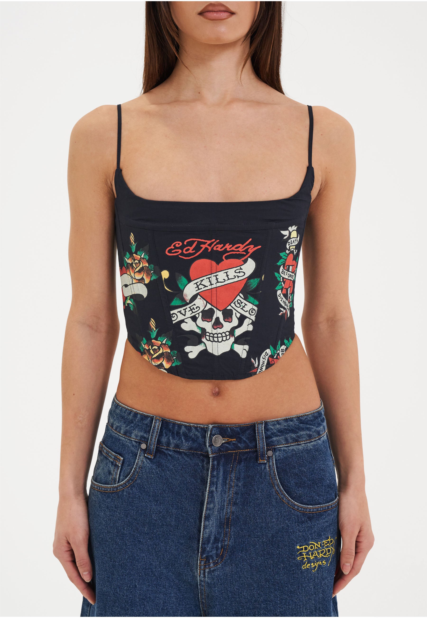 Stand out with the Love Kills Corset Top, an expression of unapologetic rebellion.