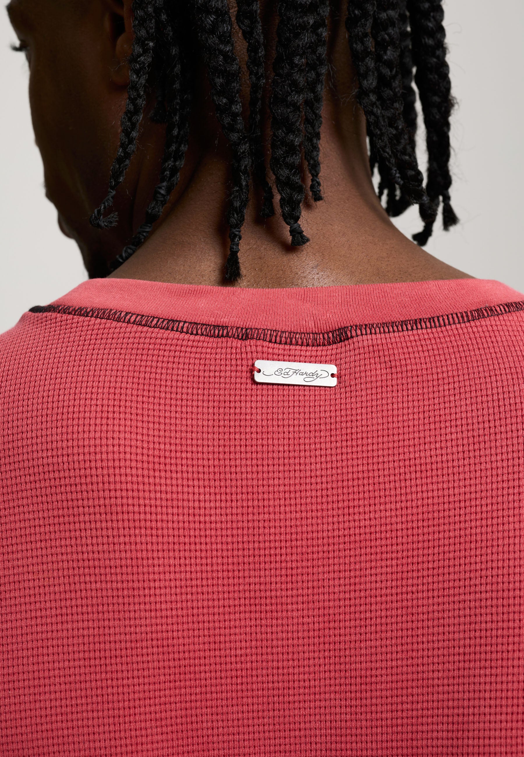 Mens Washed Waffle Panther Graphic Relaxed T-Shirt - Red