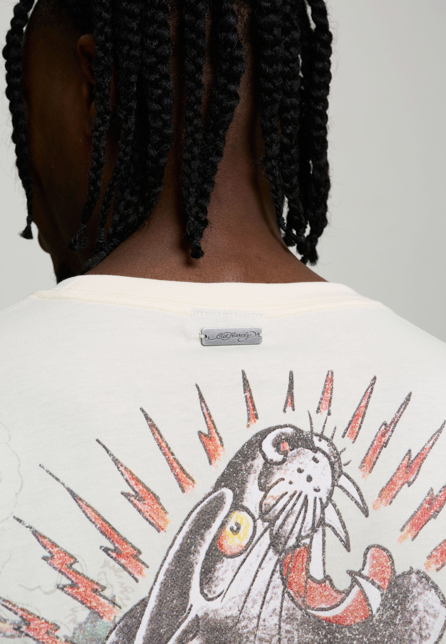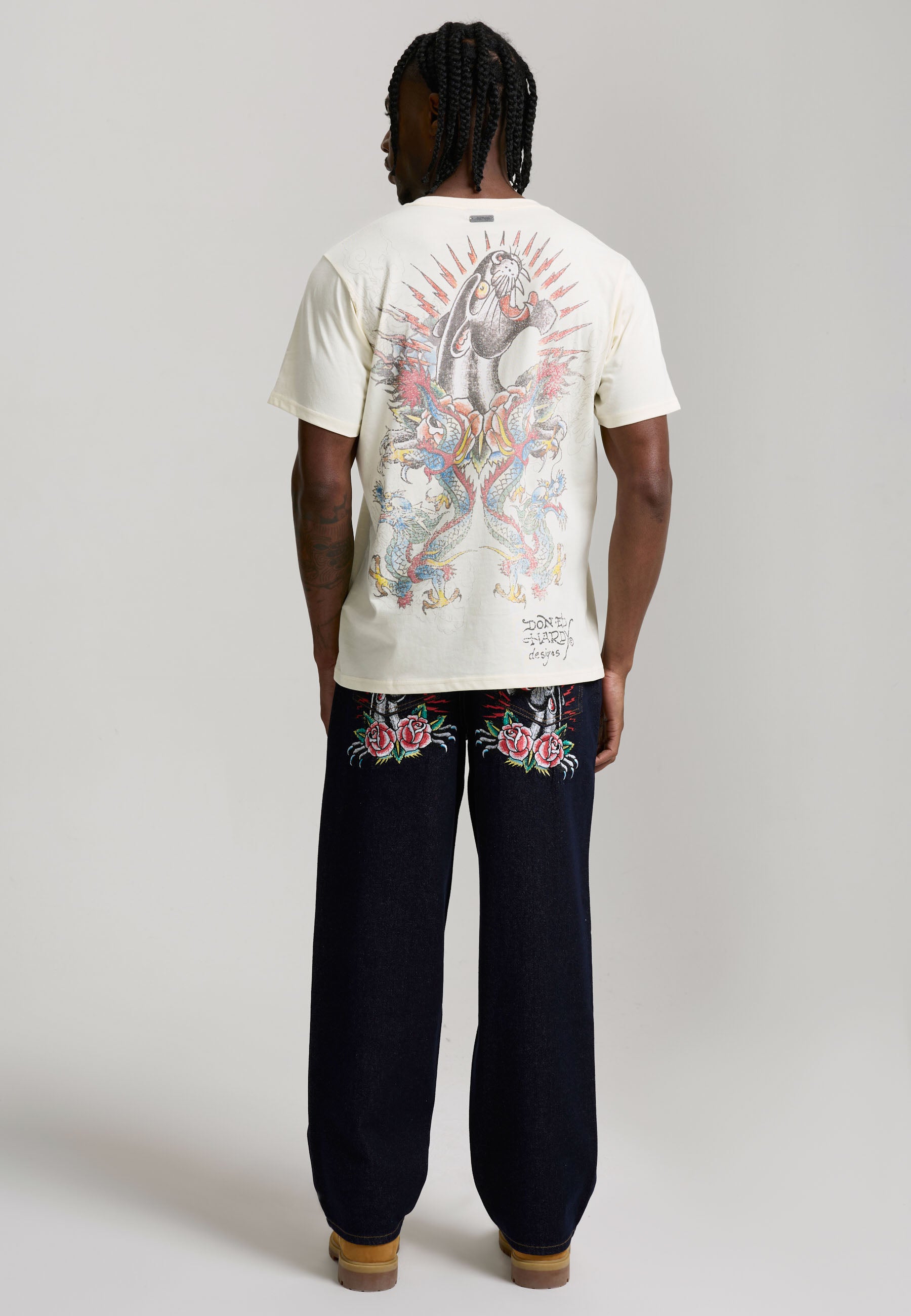 Mens Dragon Panther Graphic Regular T-Shirt - Ecru