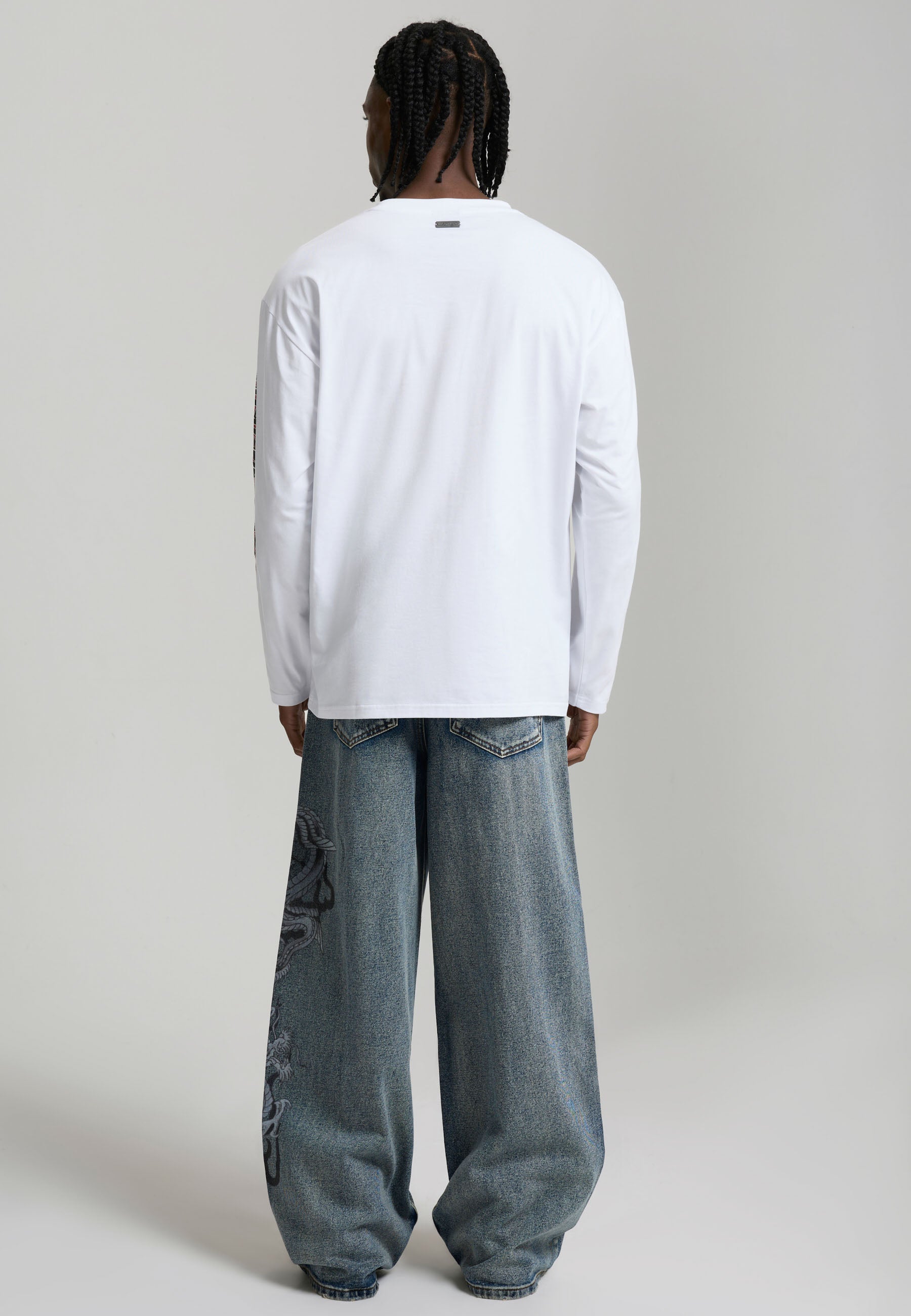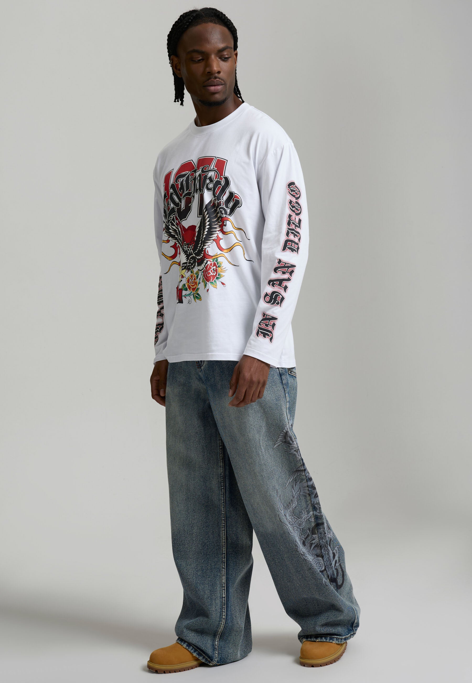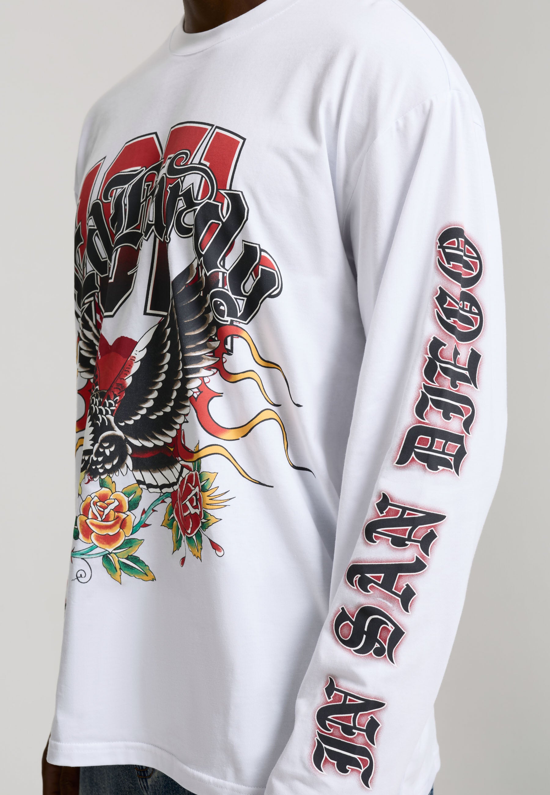 Mens 1971 Tattoo Eagle Graphic Long Sleeve T-Shirt - Bright White