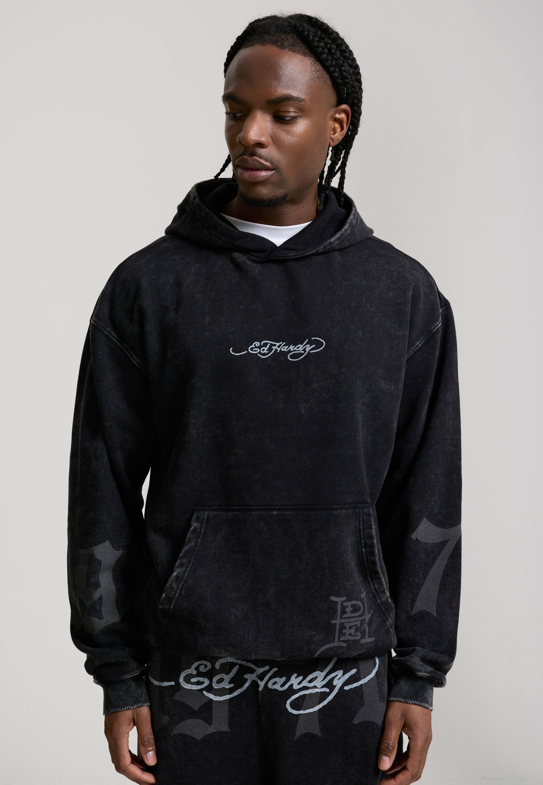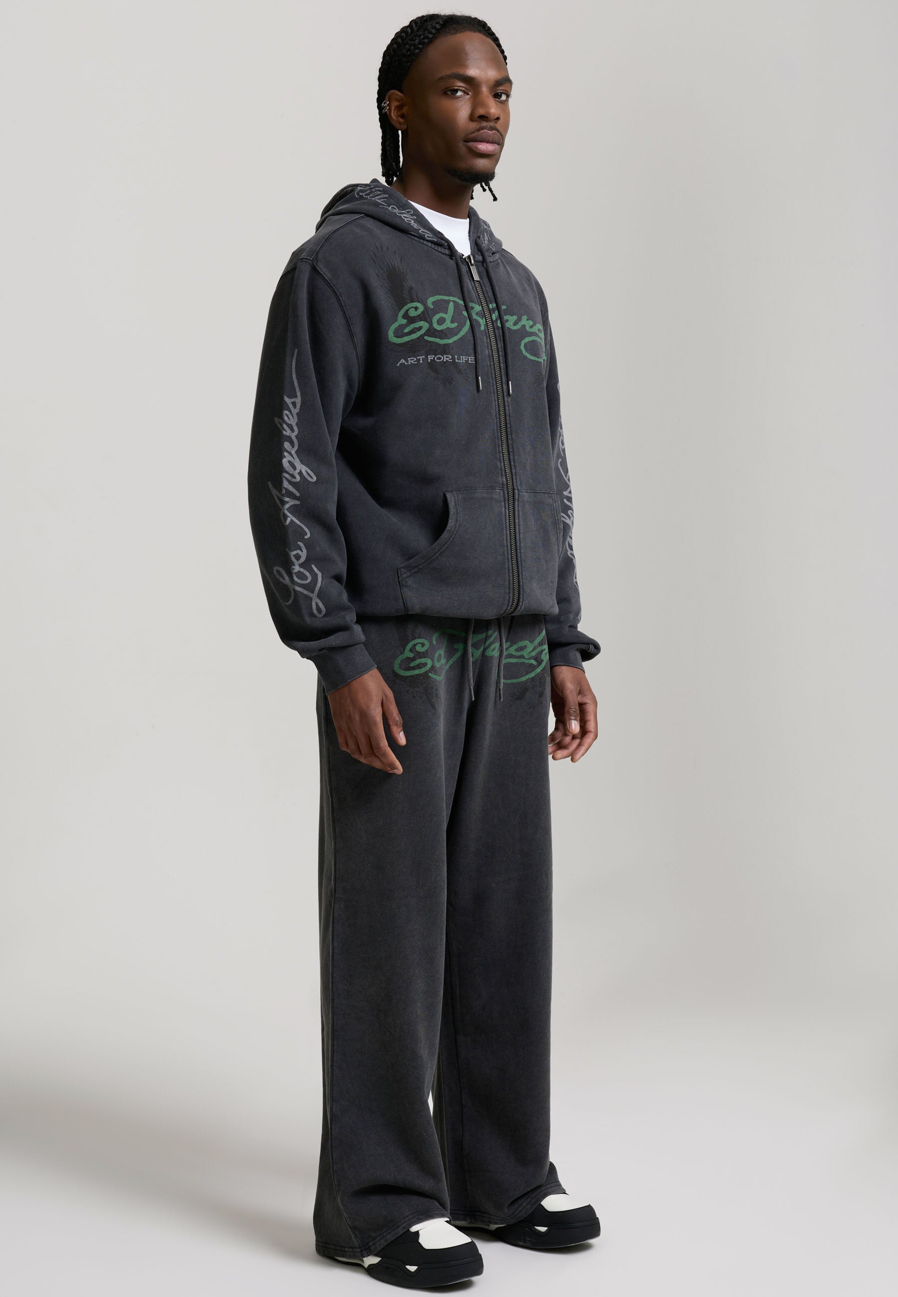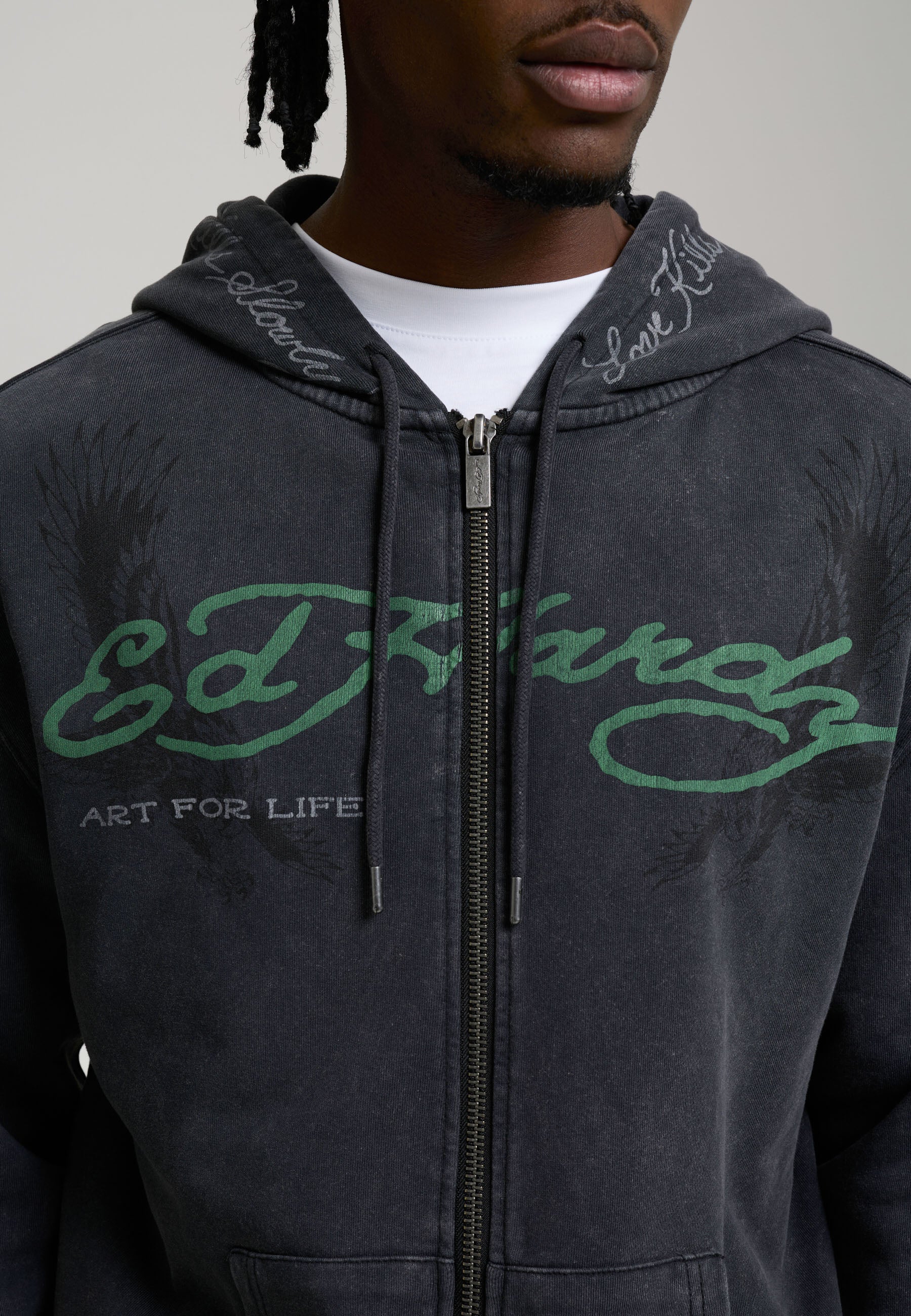 Mens Relaxed Art For Life Tattoo Zip Thru Hoodie - Black