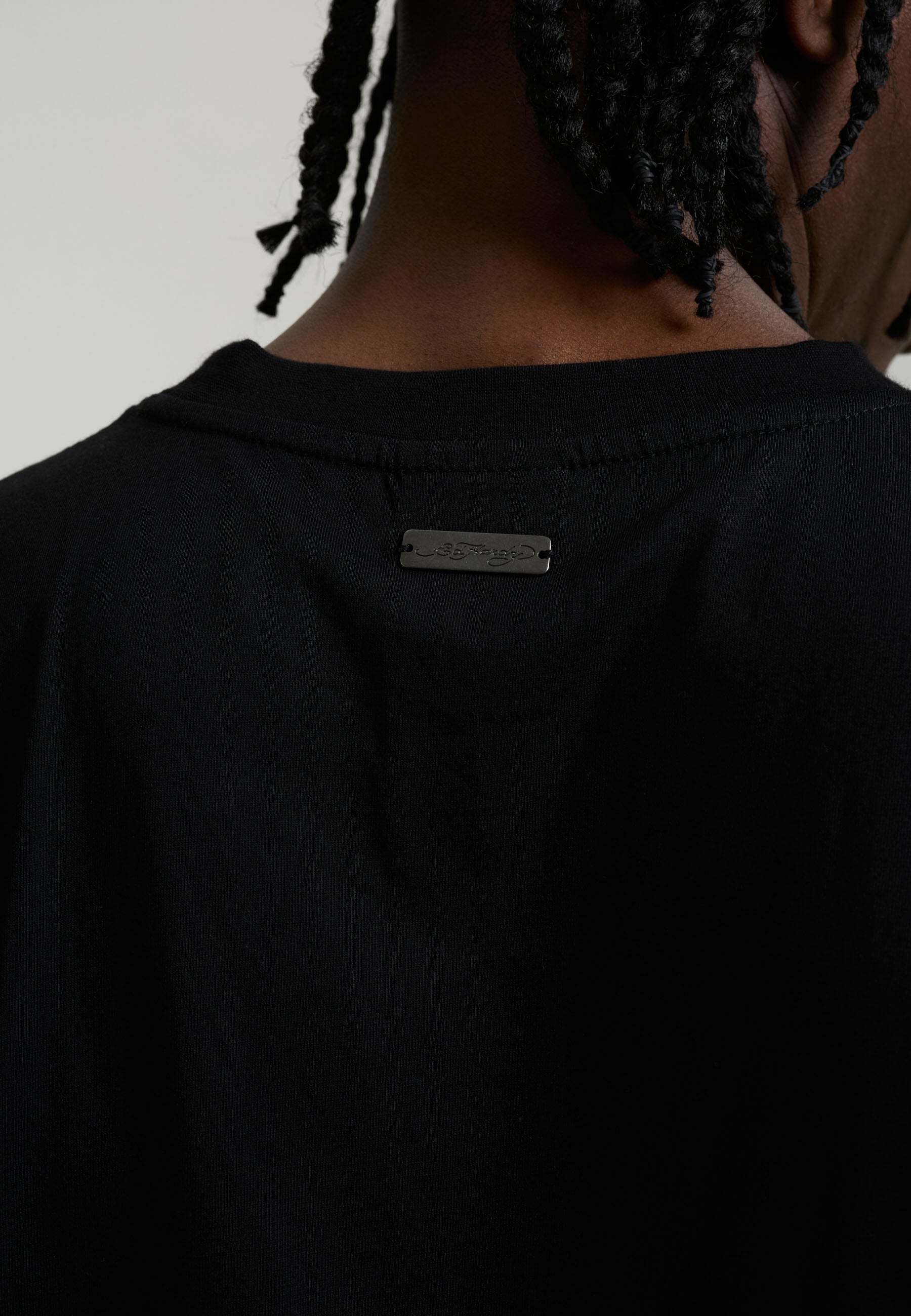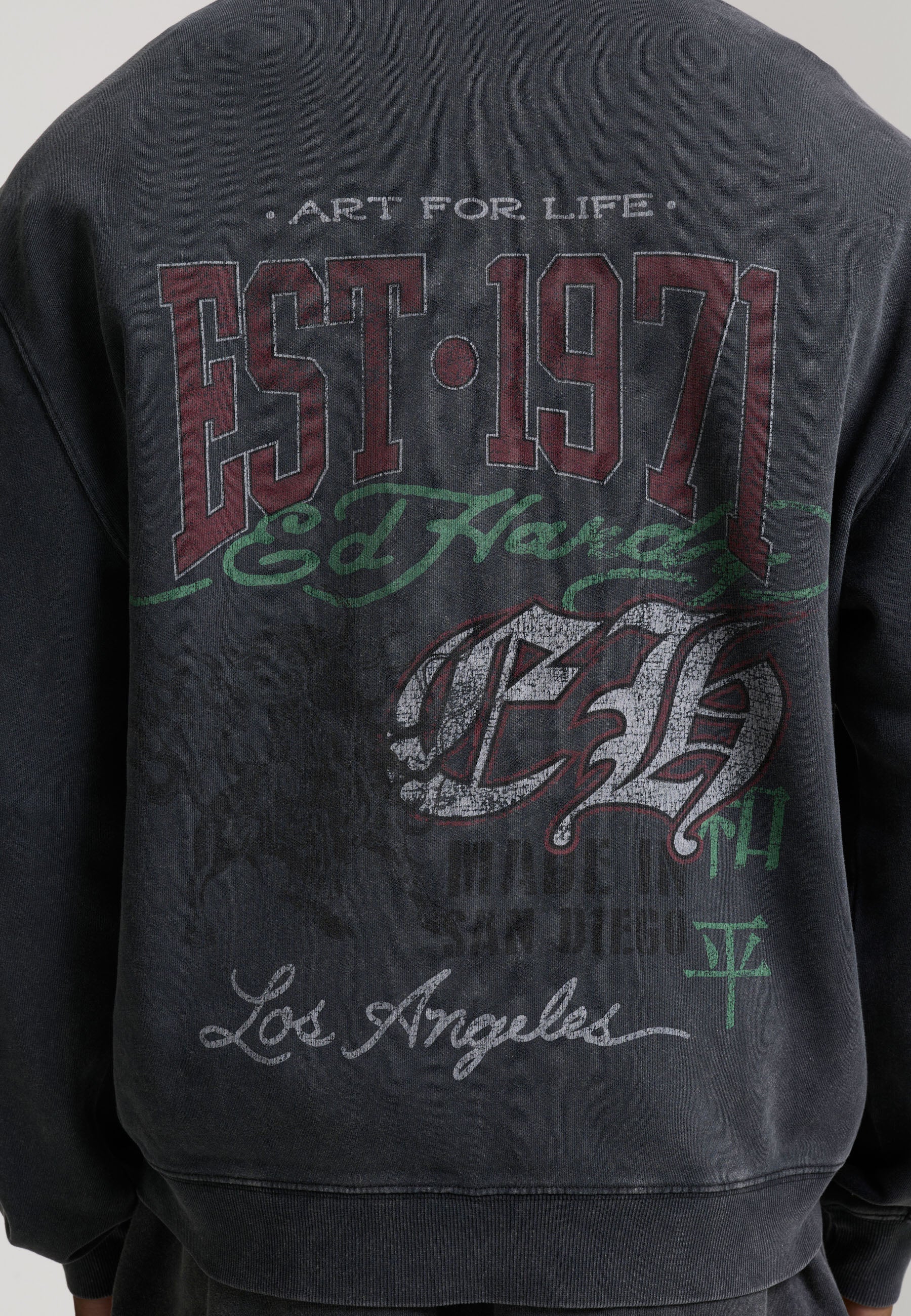Mens Embroidered Gothic Ed Hardy Boxy Twill Shirt - Black