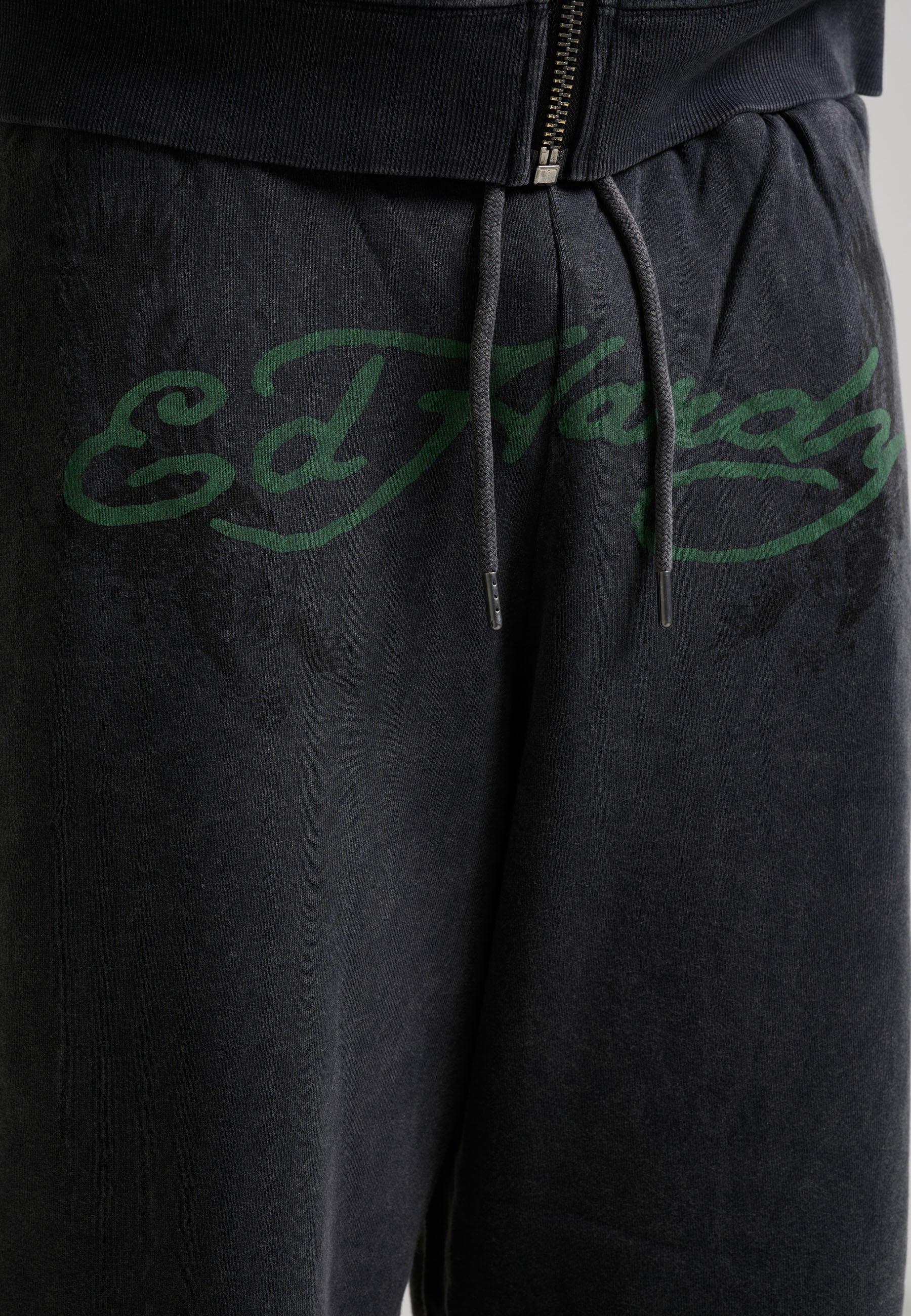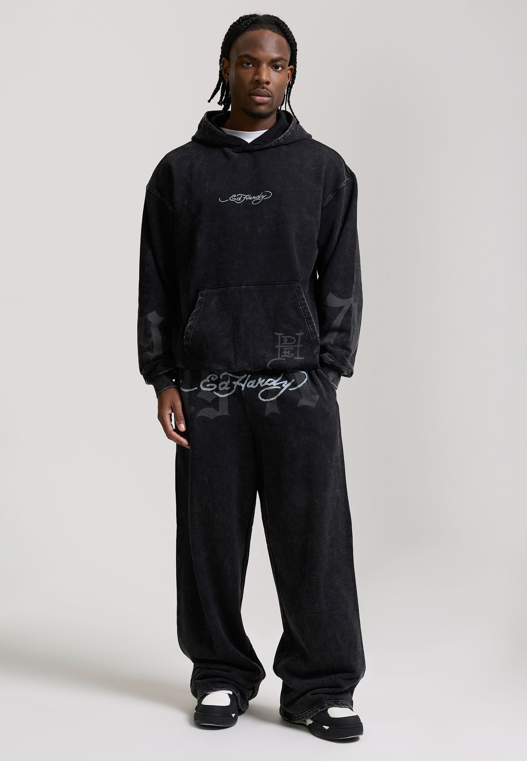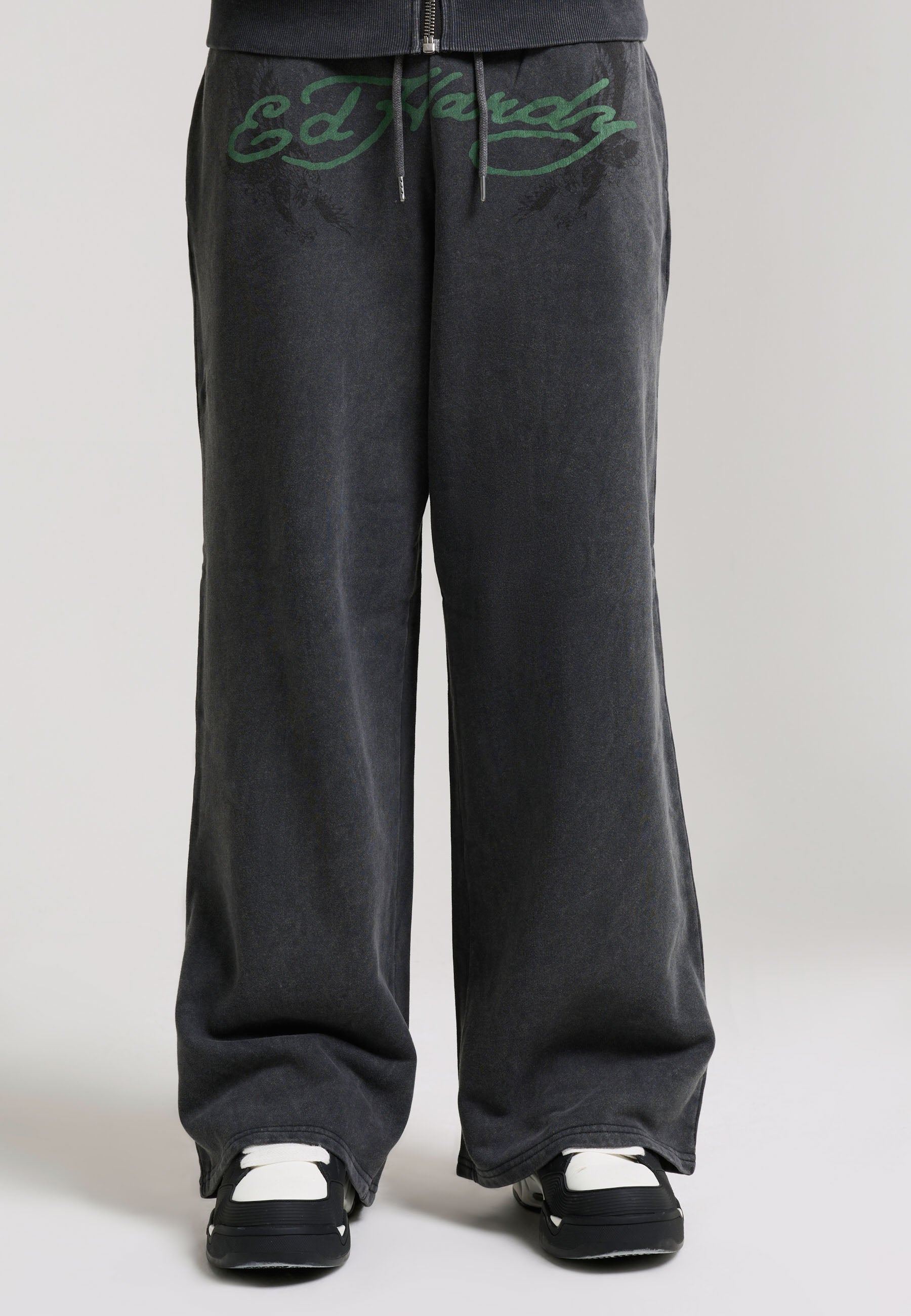 Mens Flaming 1971 Relaxed Washed Straight Leg Joggers - Black