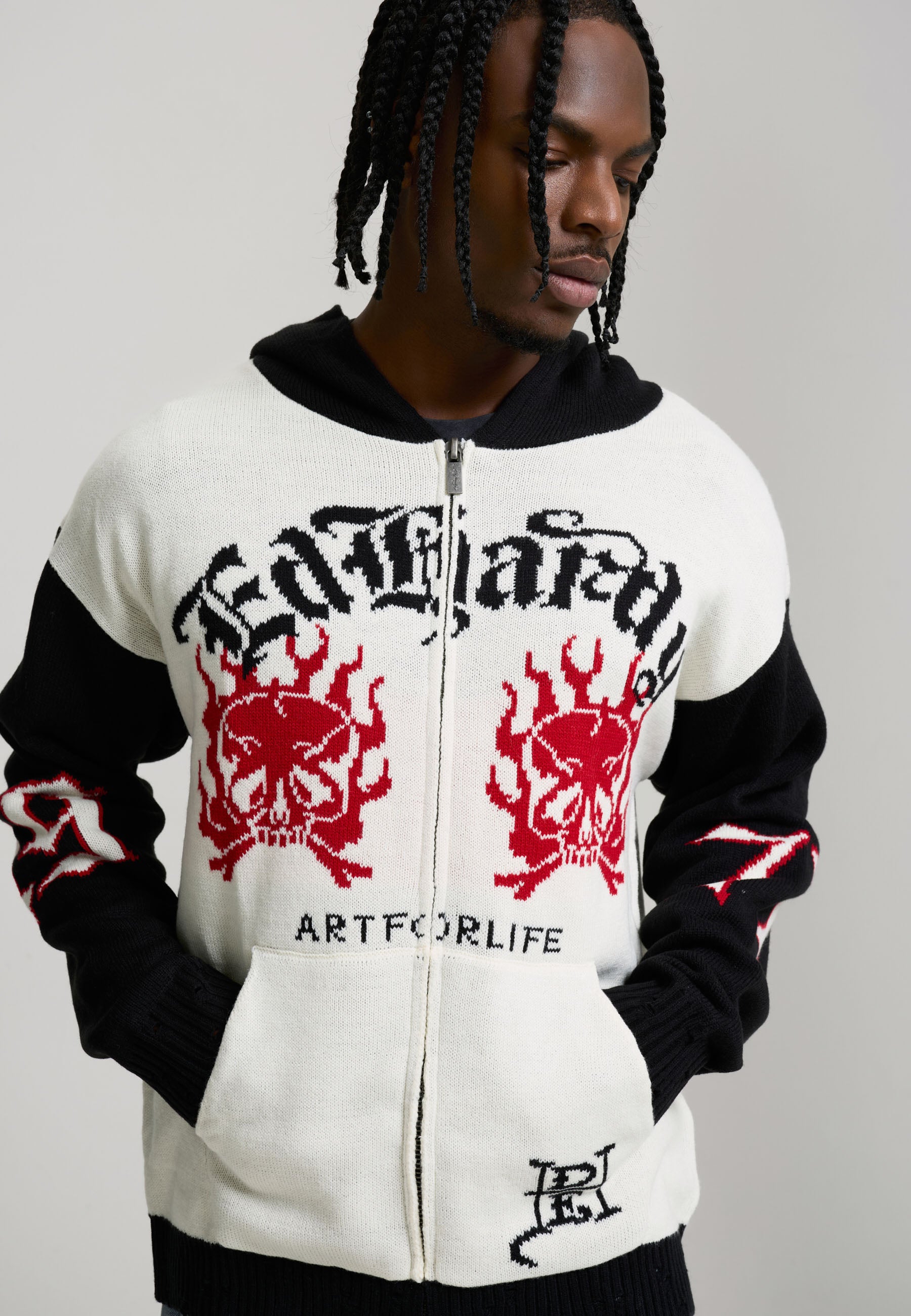 Mens 1971 Knitted Zip Thru Knitted Hoodie - Ecru / Black