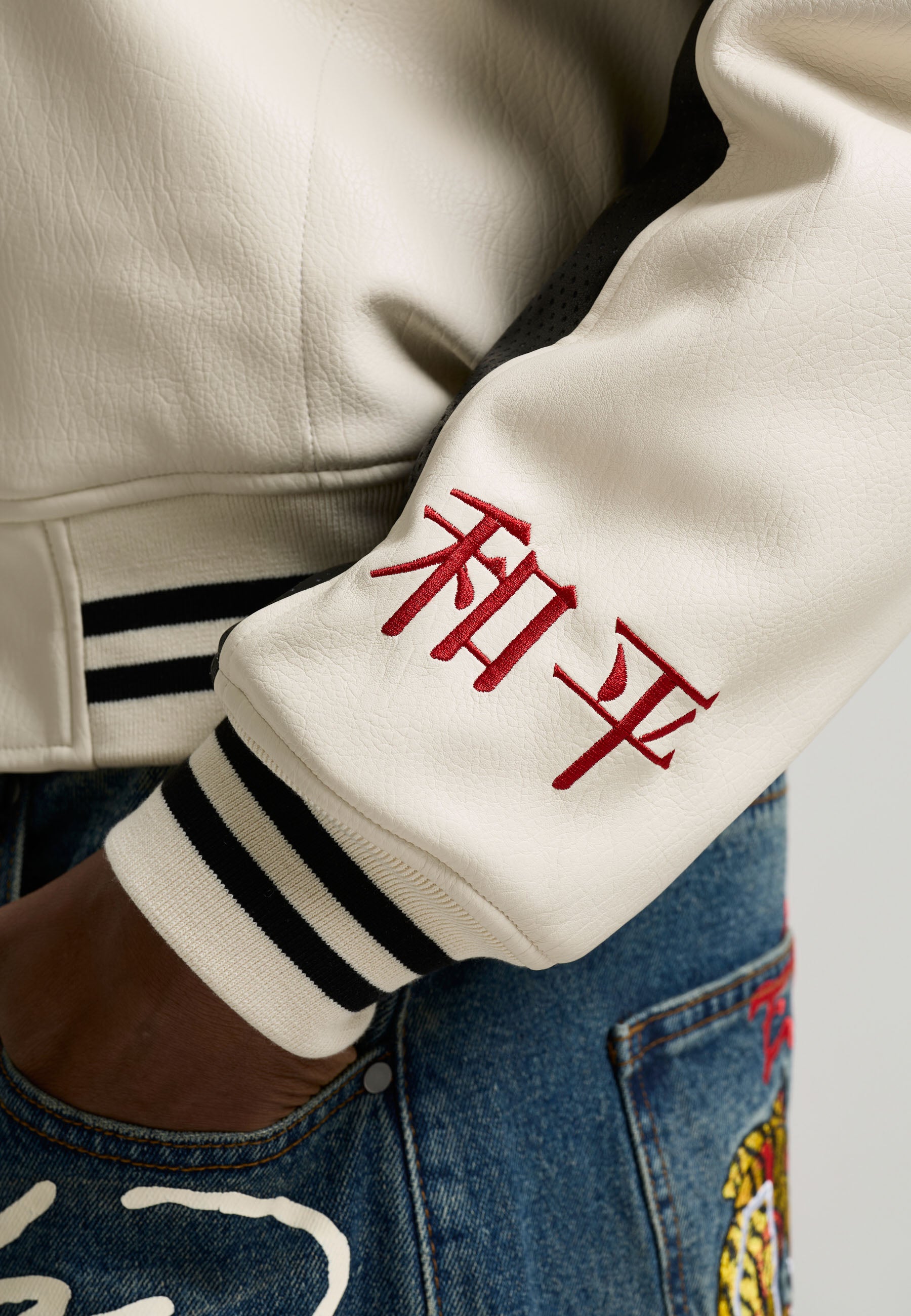 Mens 1971 Panther Pu Varsity Bomber - Ecru / Black