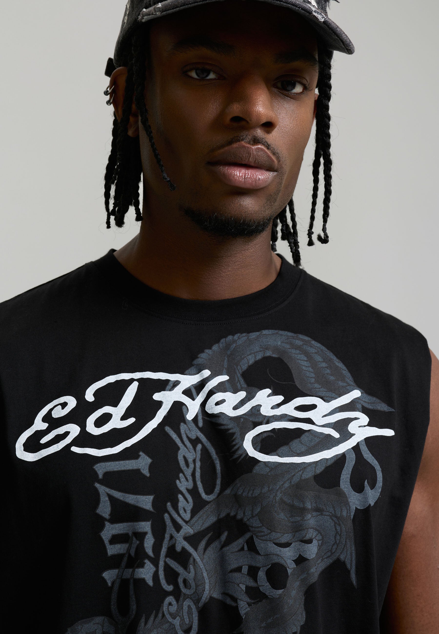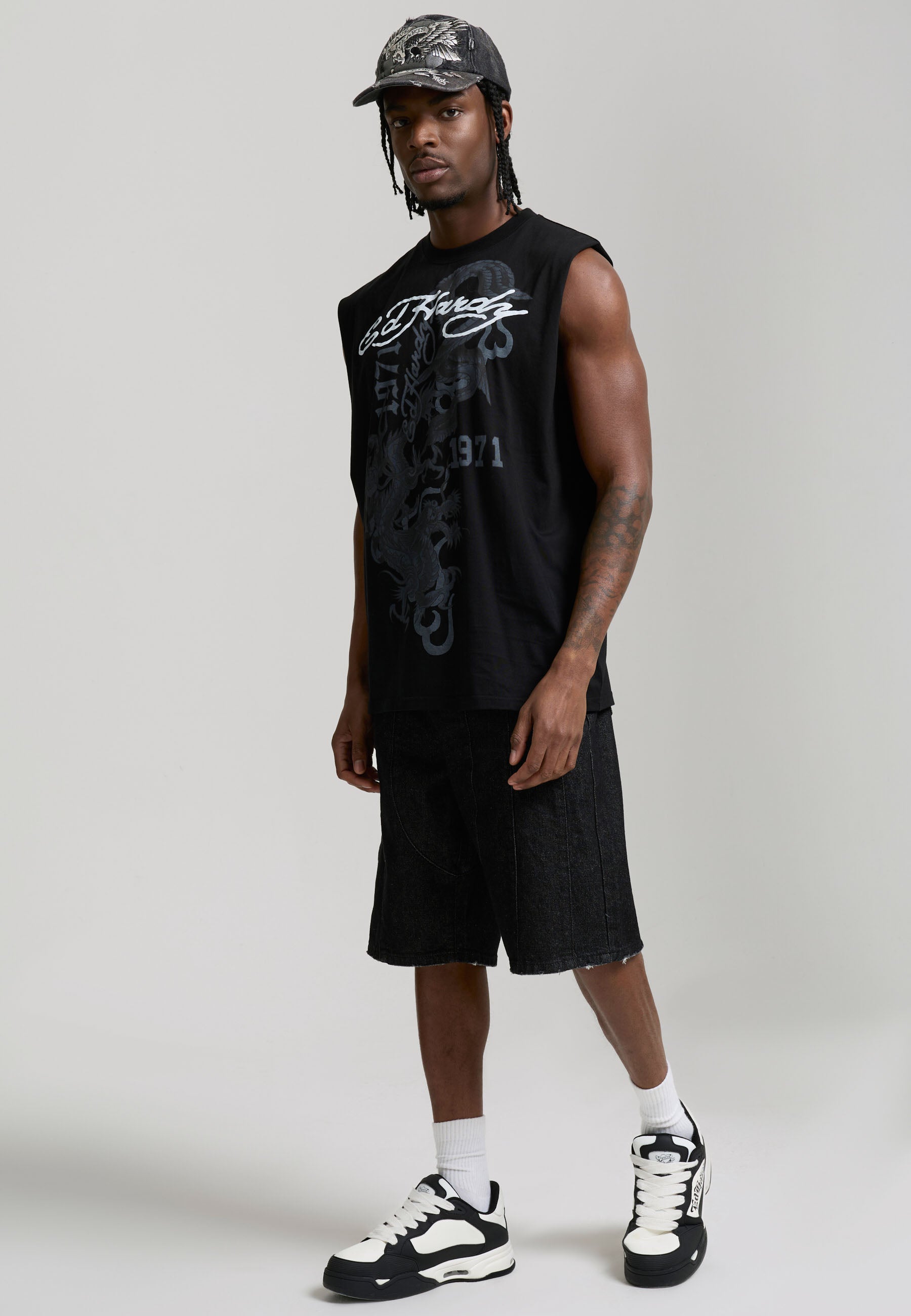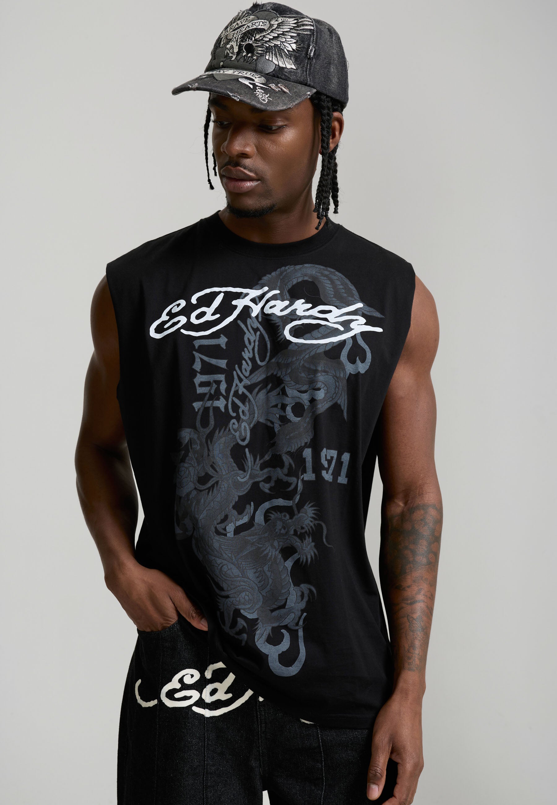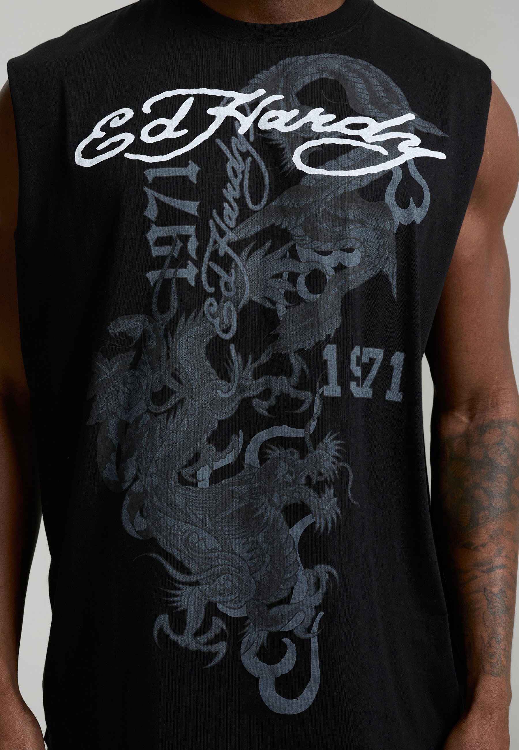 Mens Flying Dragon Graphic Sleeveless T-Shirt - Black