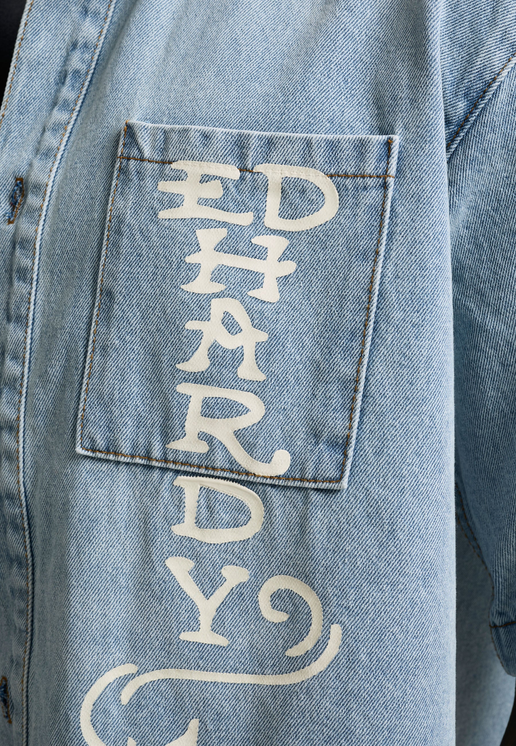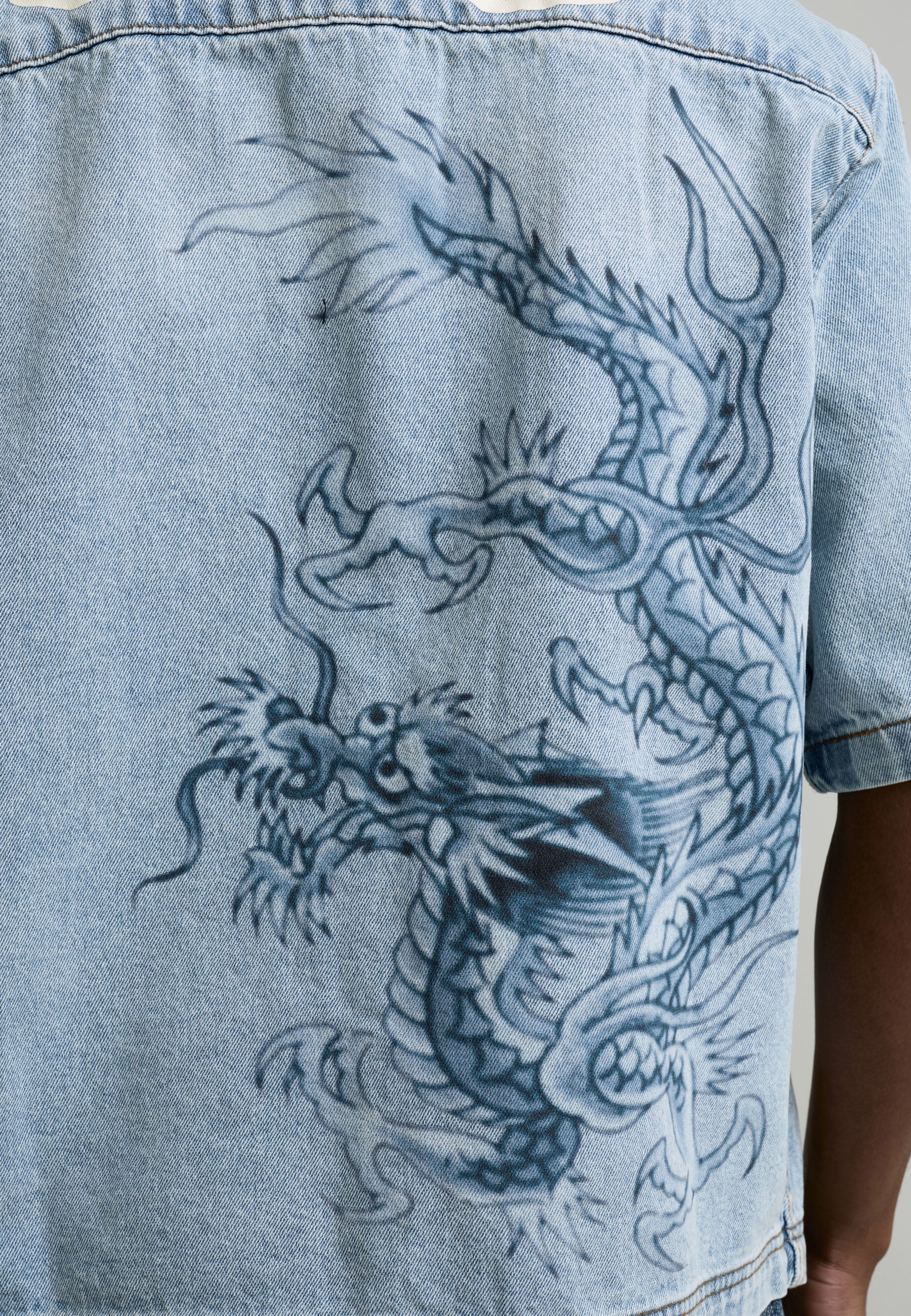 Mens Tonal Dragon Utility Denim Shirt - Bleach