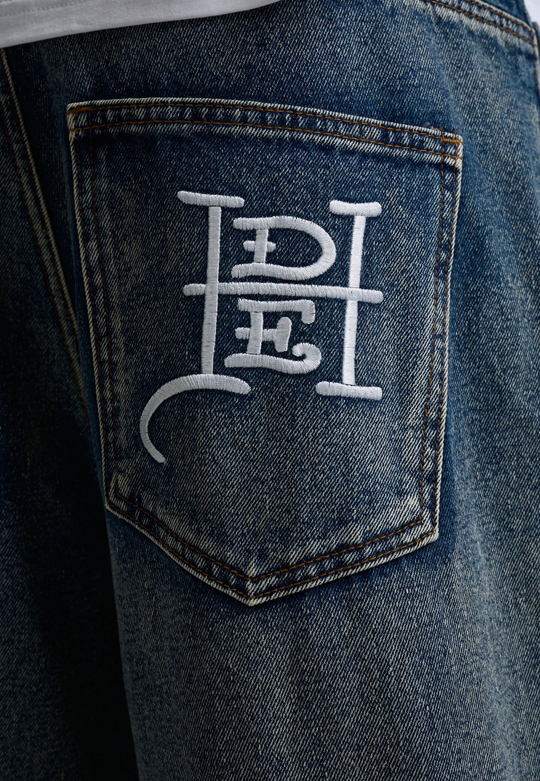Mens Embroidered Panther Relaxed Jeans - Blue Blasted Wash