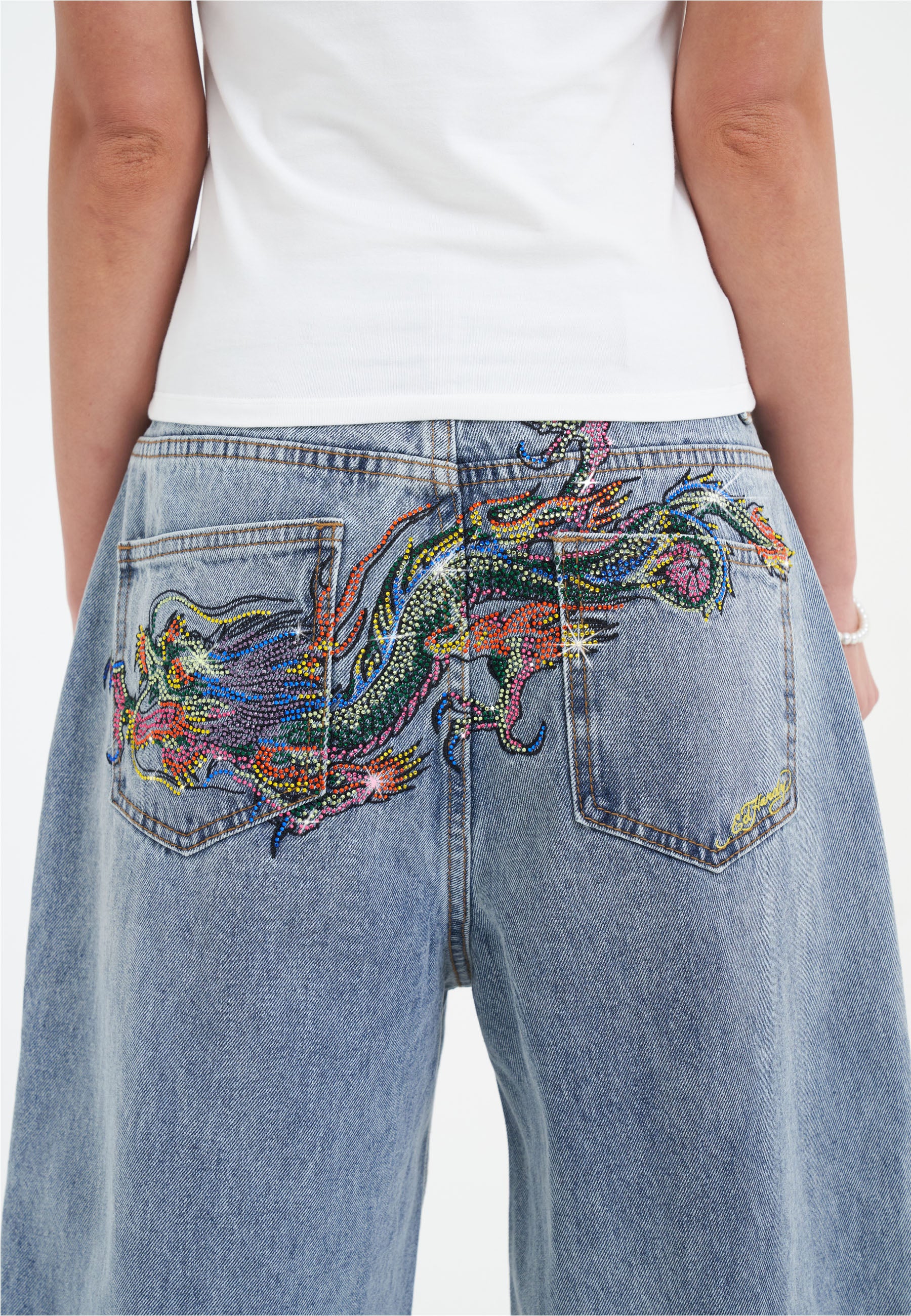 Designed with Ed Hardy’s signature artistry, these jeans showcase intricate embroidered details and prints that make you stand out in the crowd.
