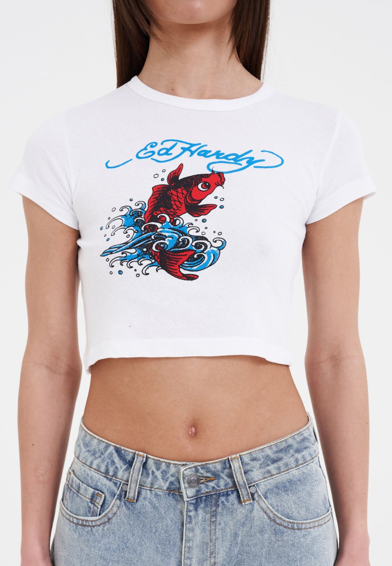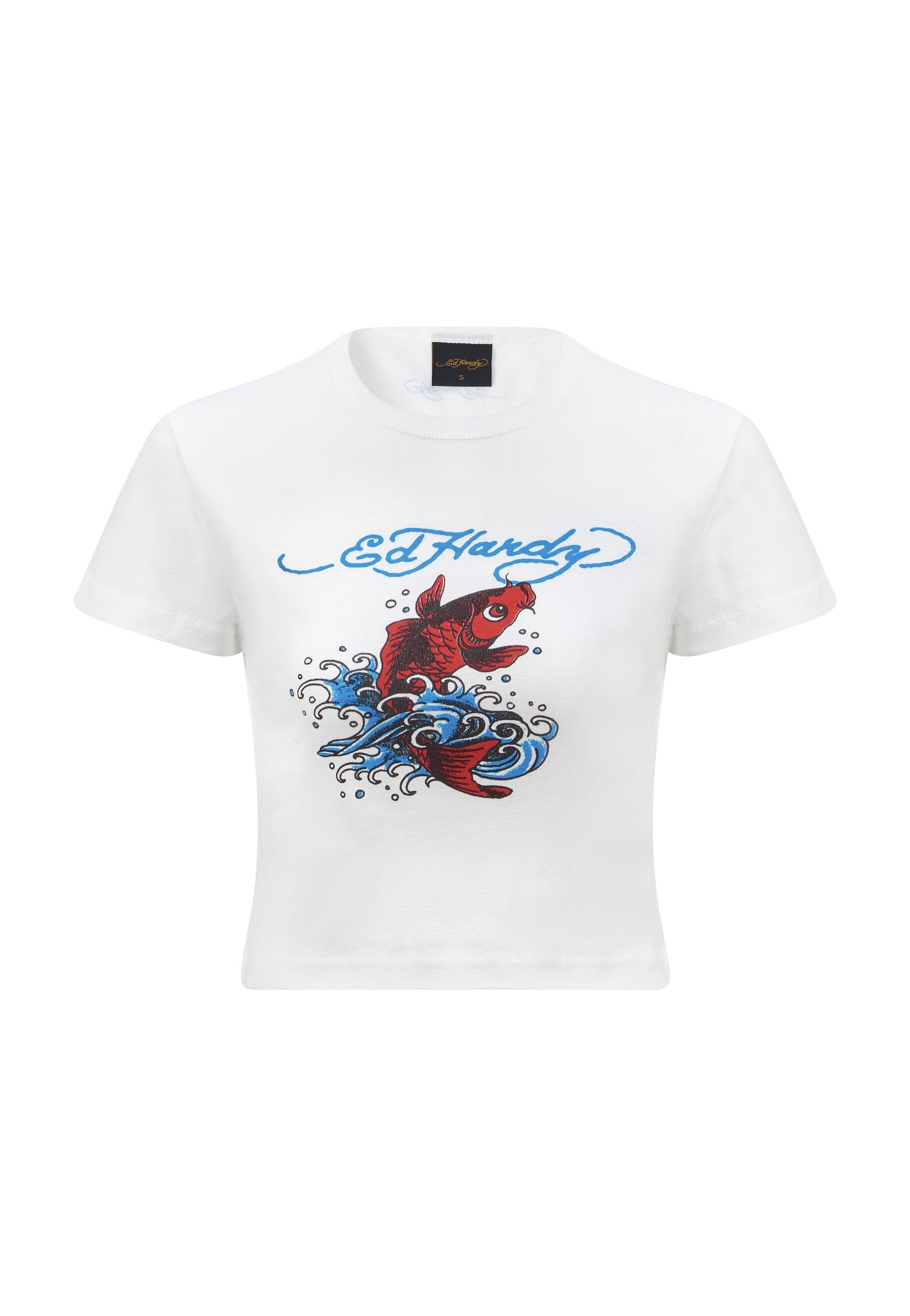 Swap 'coy' for 'koi' this season. The Koi-Baby Tee is here to answer all your summer wardrobe prayers.