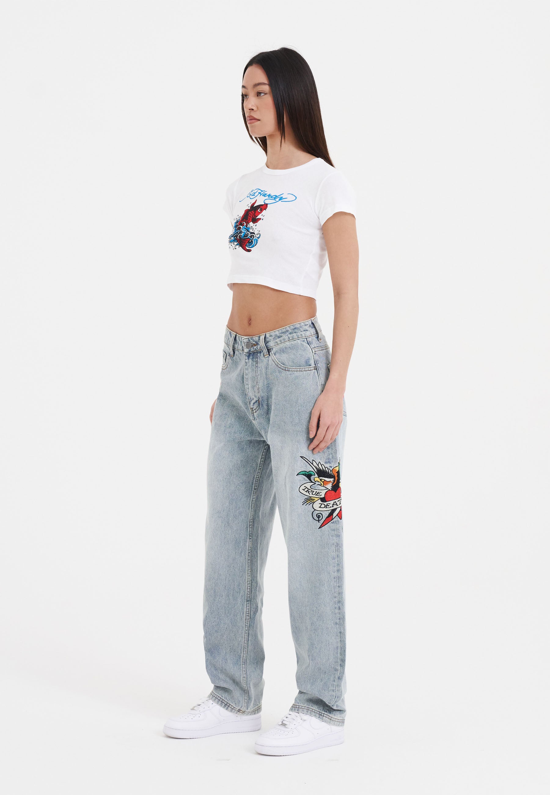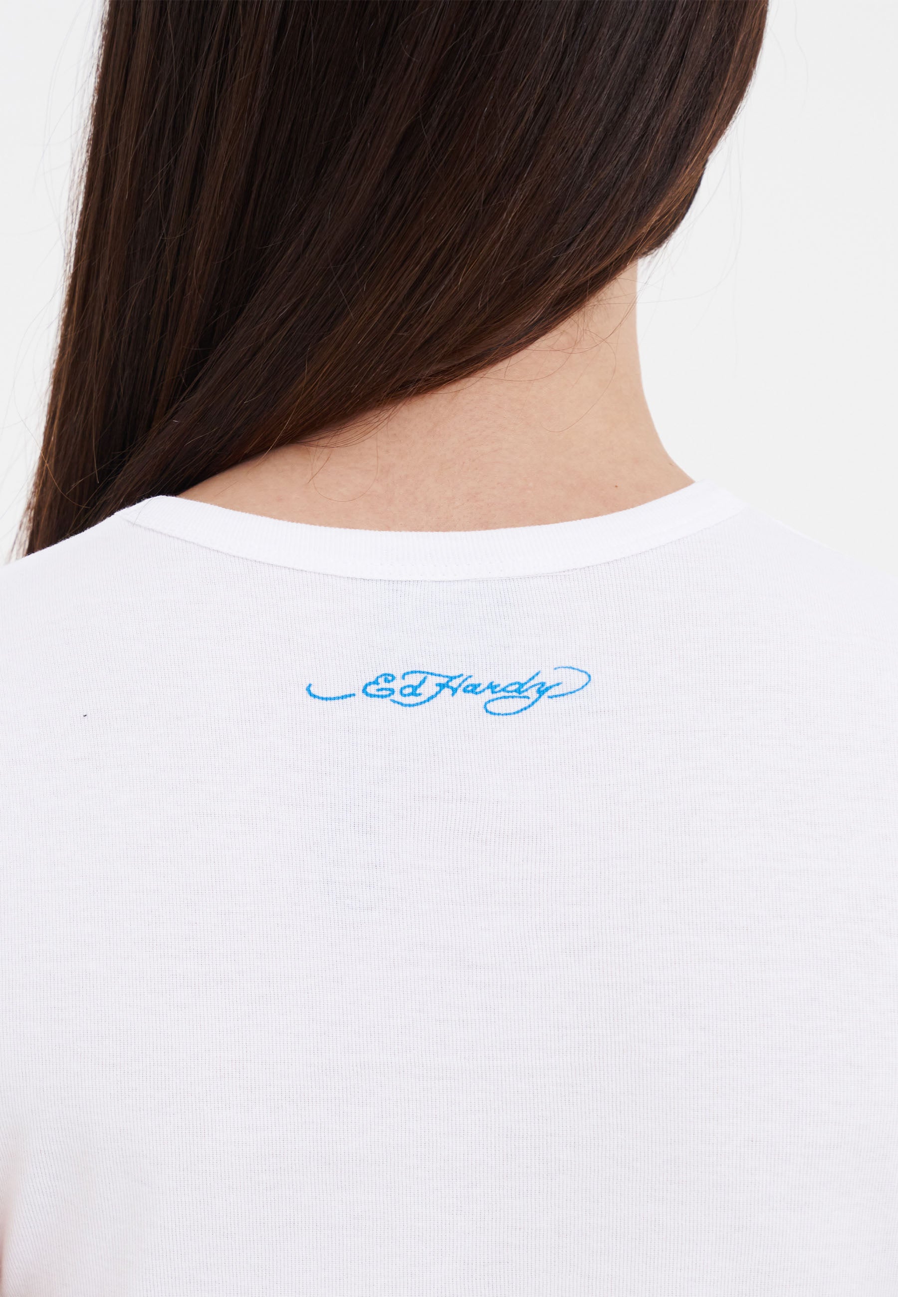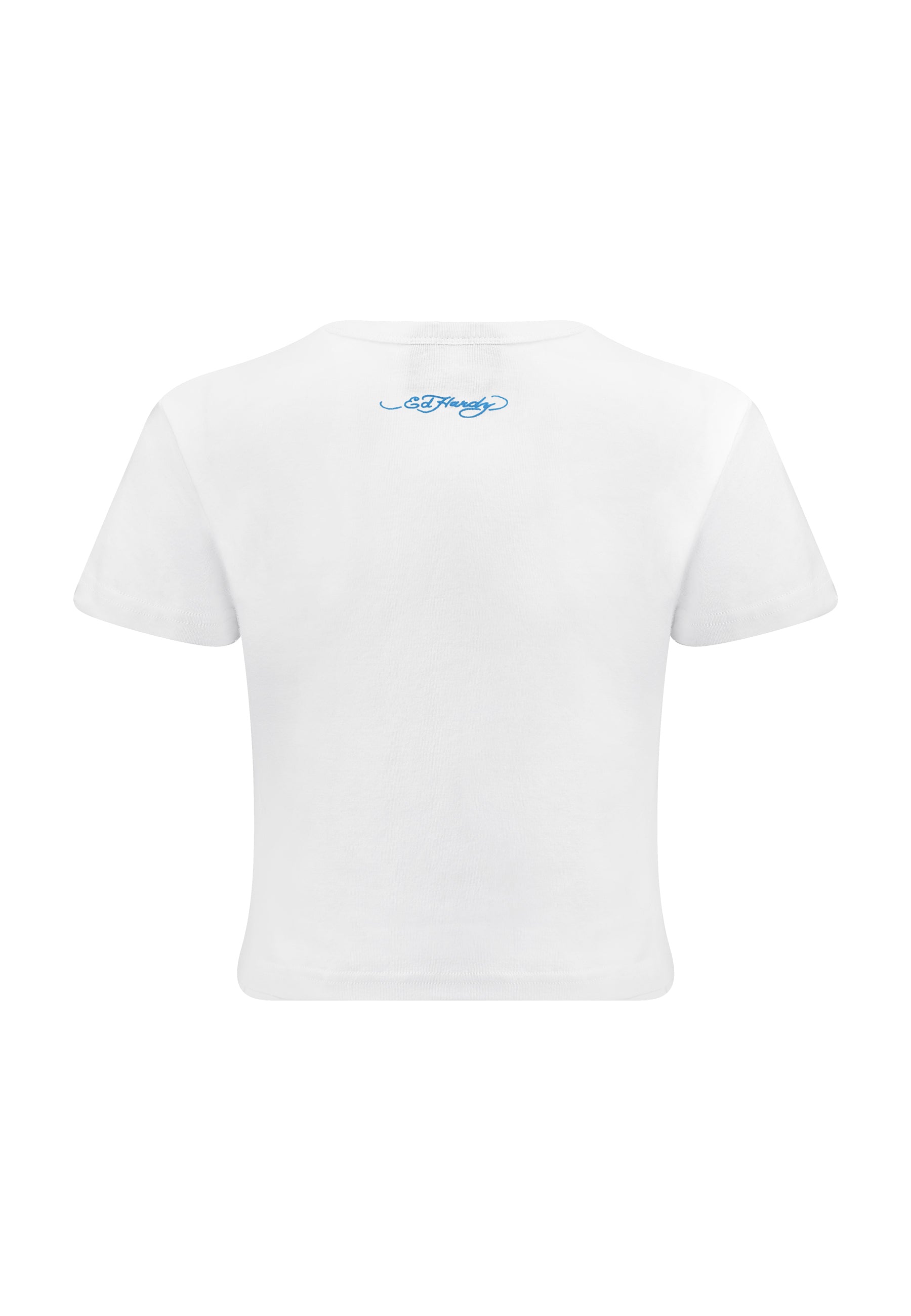 Featuring one of The Don's original tattoo illustrations in glorious full-colour print on a bright white figure-hugging t-shirt.