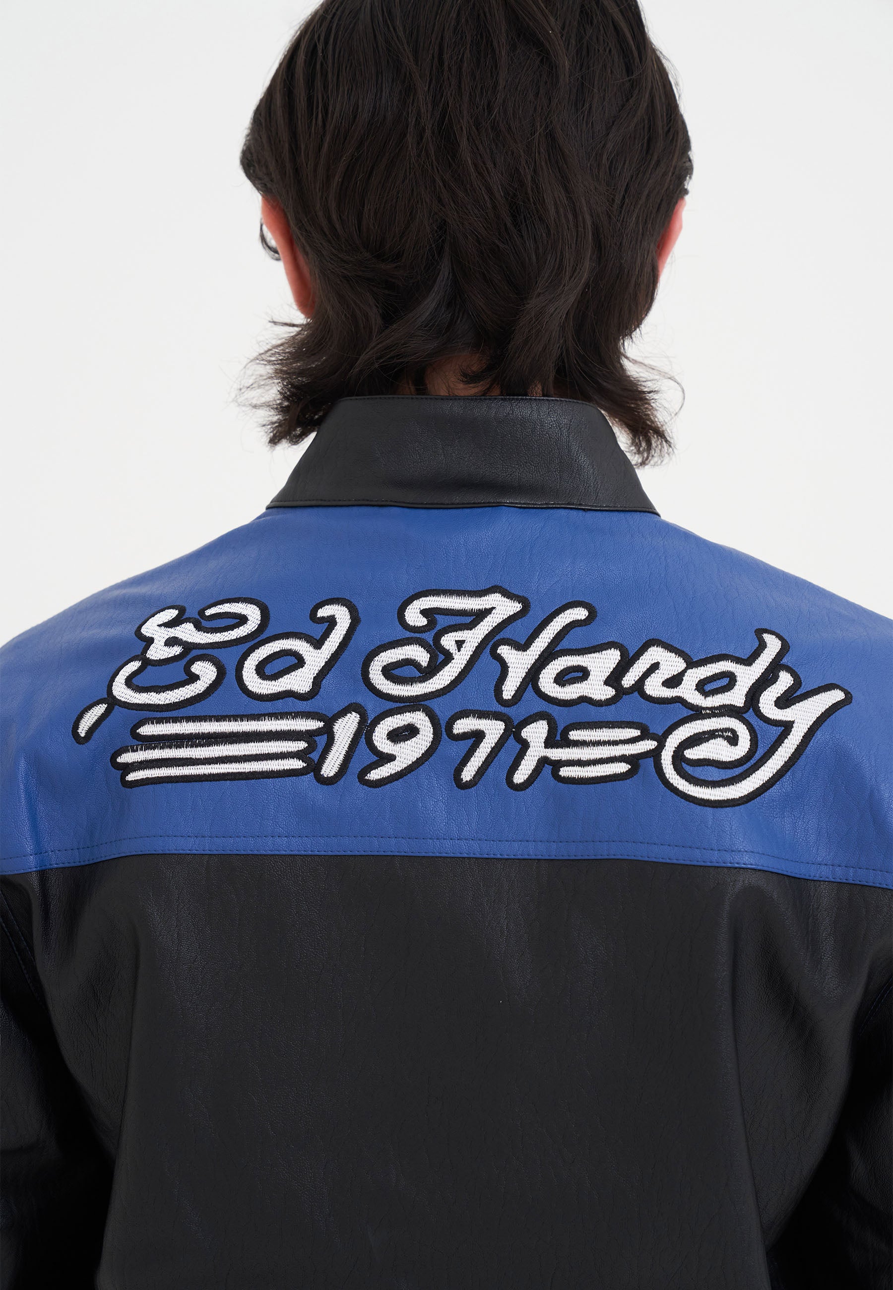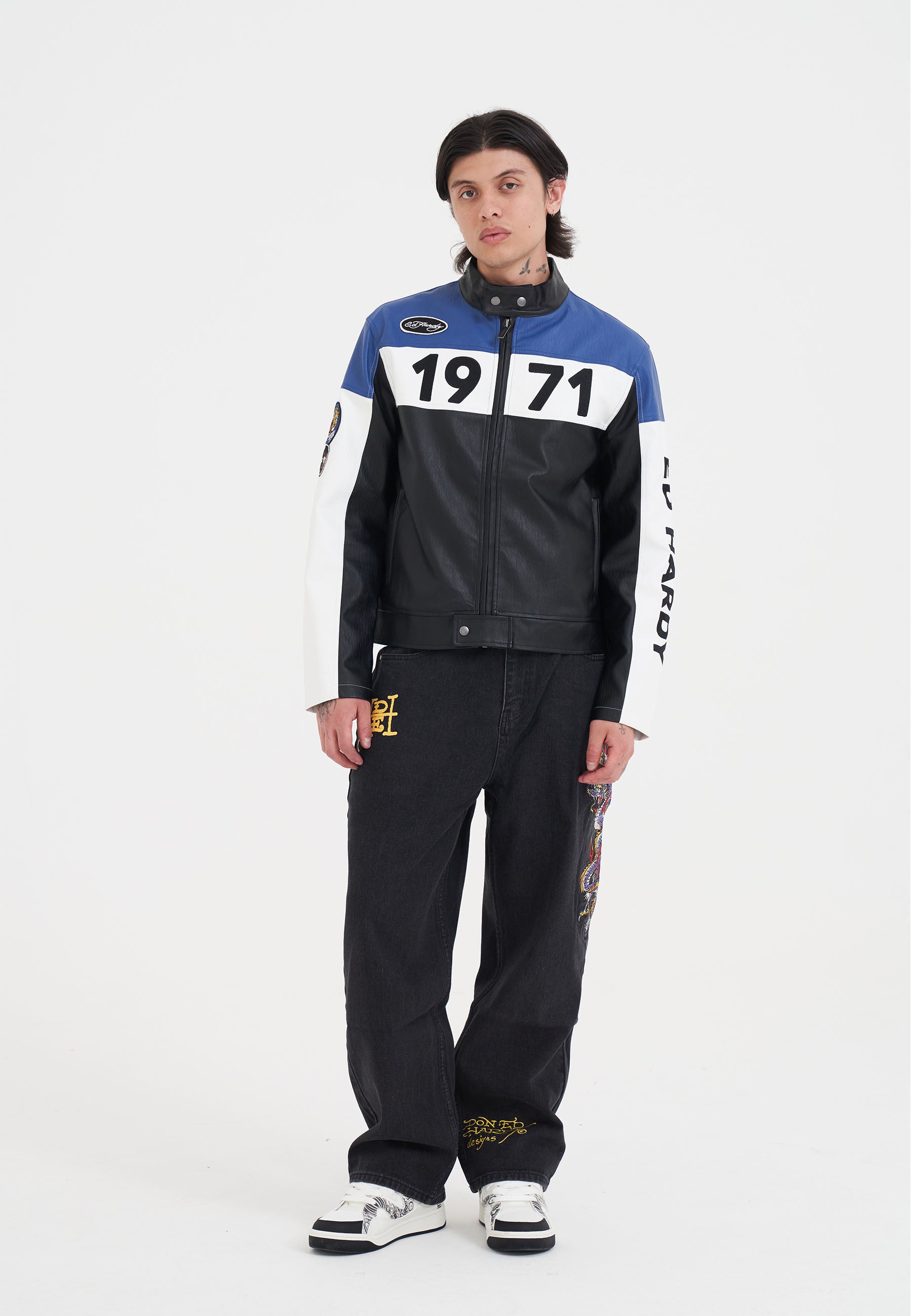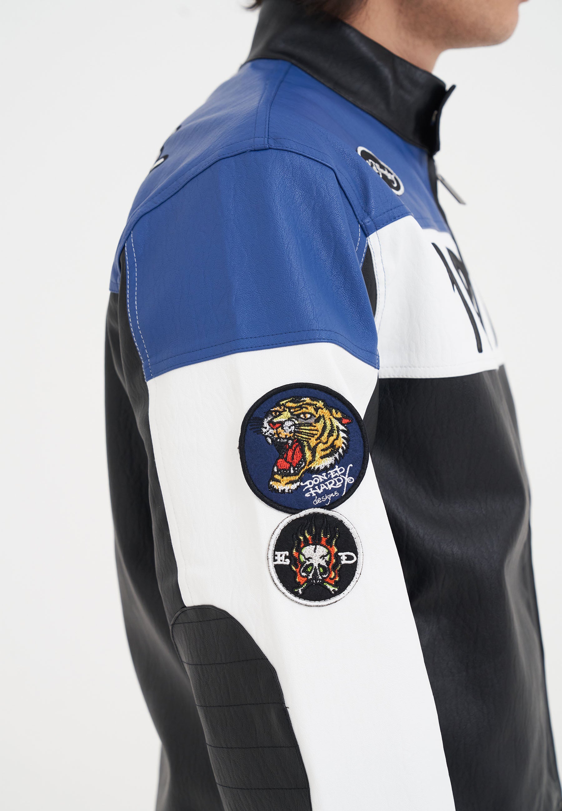 Unisex ED-1971 Moto Biker Jacket- Black/Blue/White