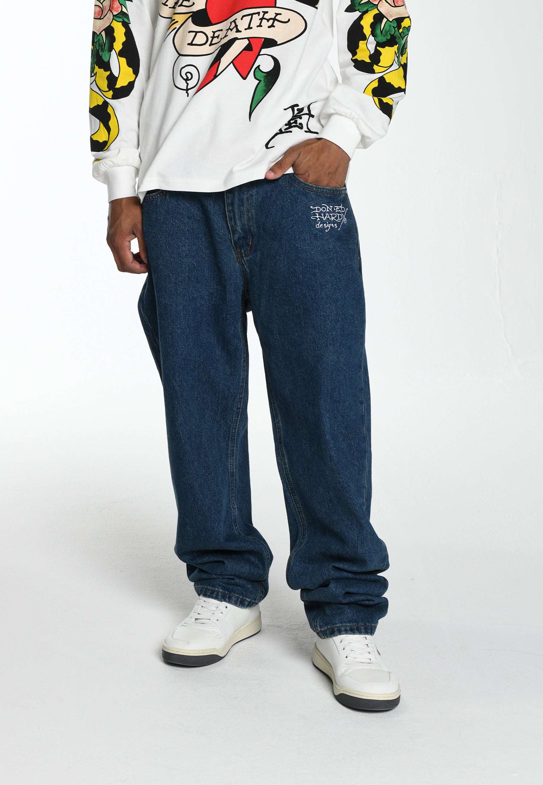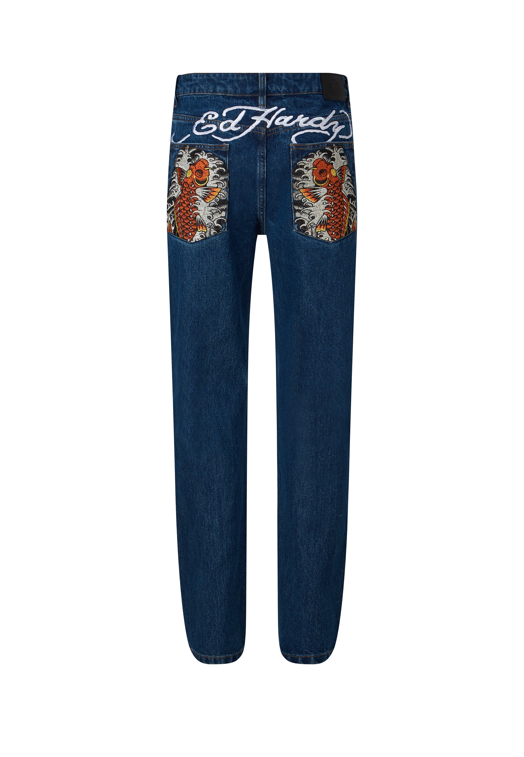 Drawing from our vintage origins, the Koi Merge Tattoo Jeans nod to our past, reenvisioned with intricate full-colour embroidery to define a fresh era in Ed Hardy fashion.