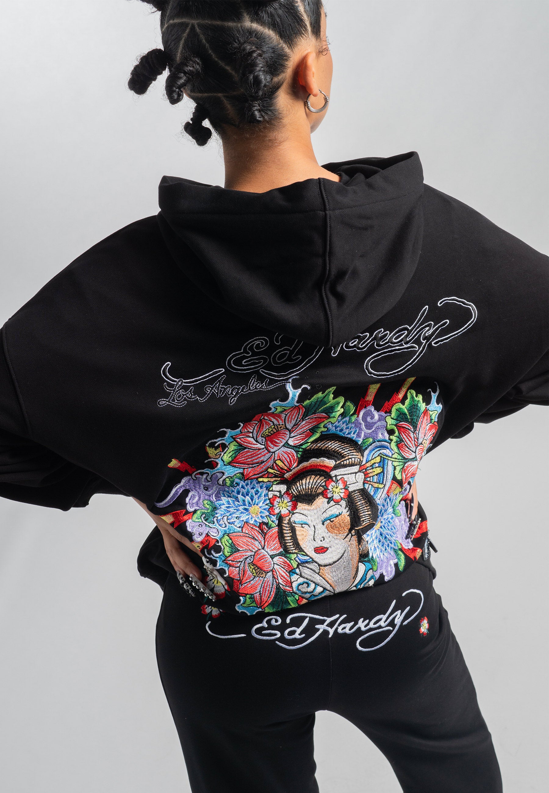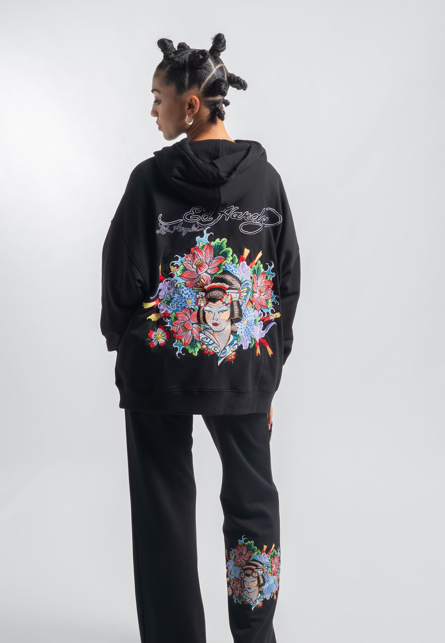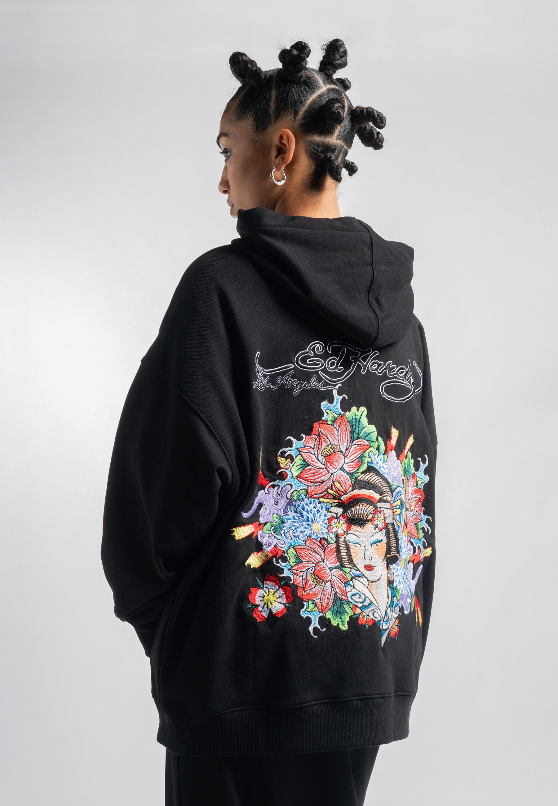 Womens Geisha World Relaxed Hoodie - Black