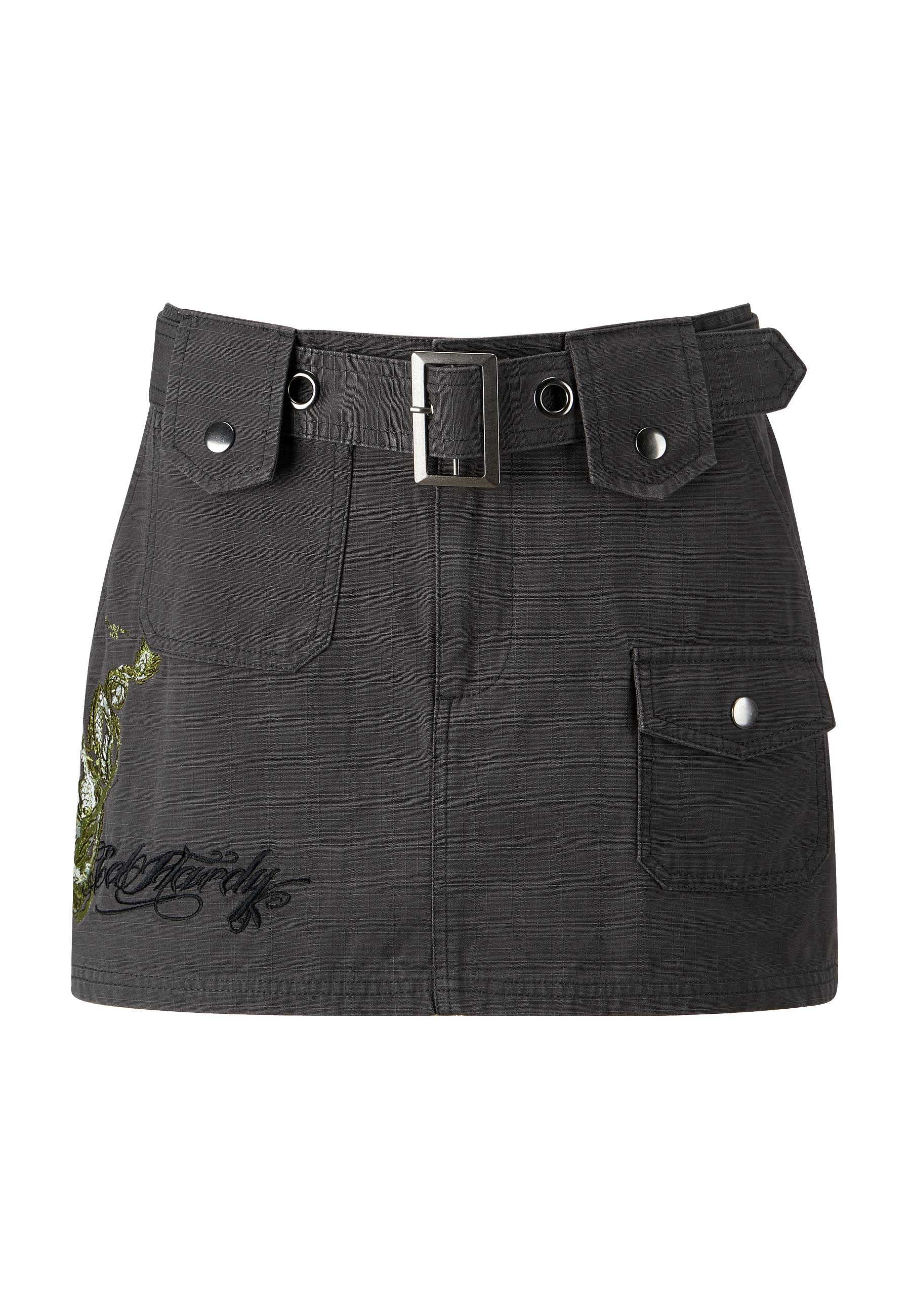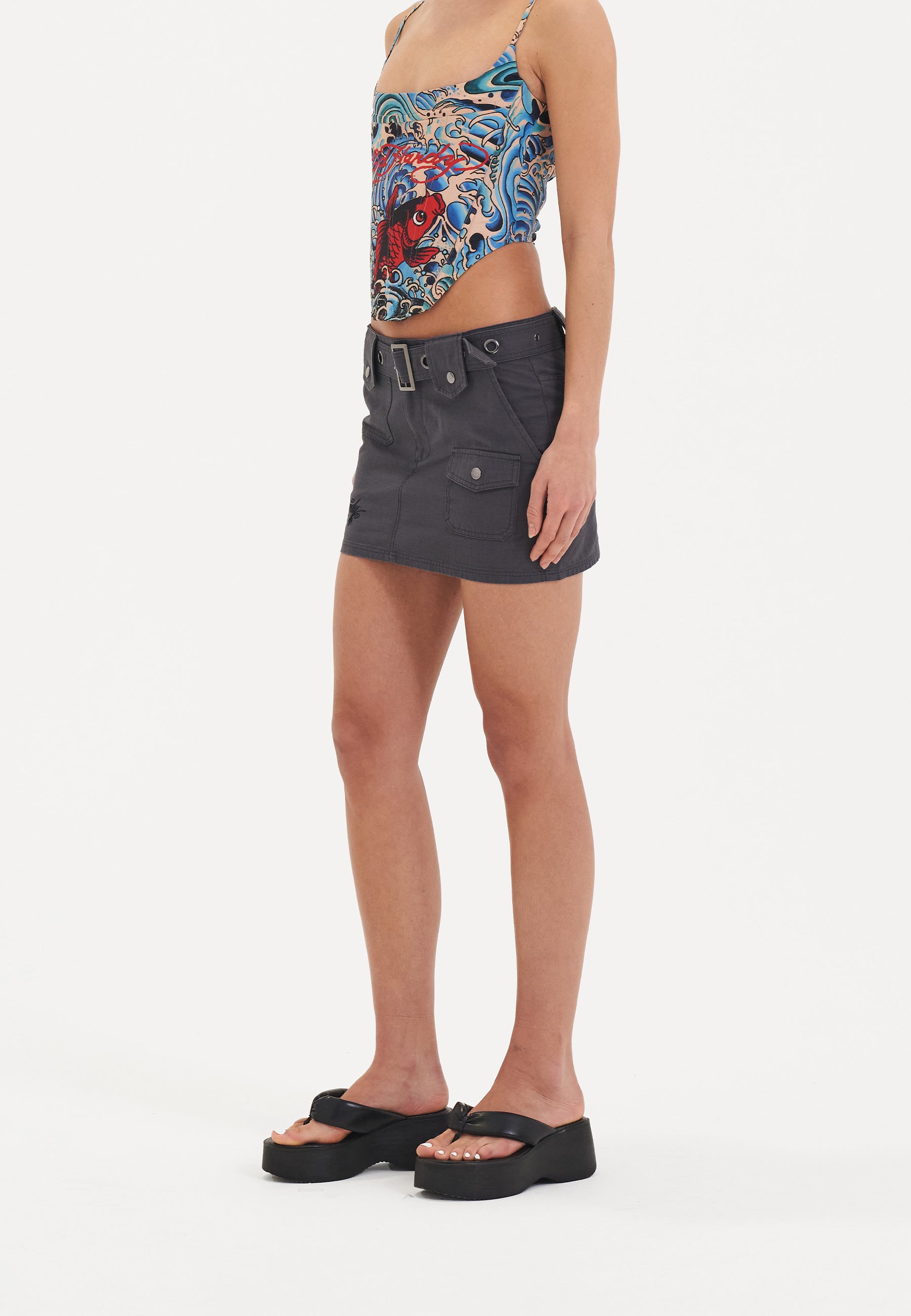 Womens Twisted Dragon Cargo Mini Skirt - Grey