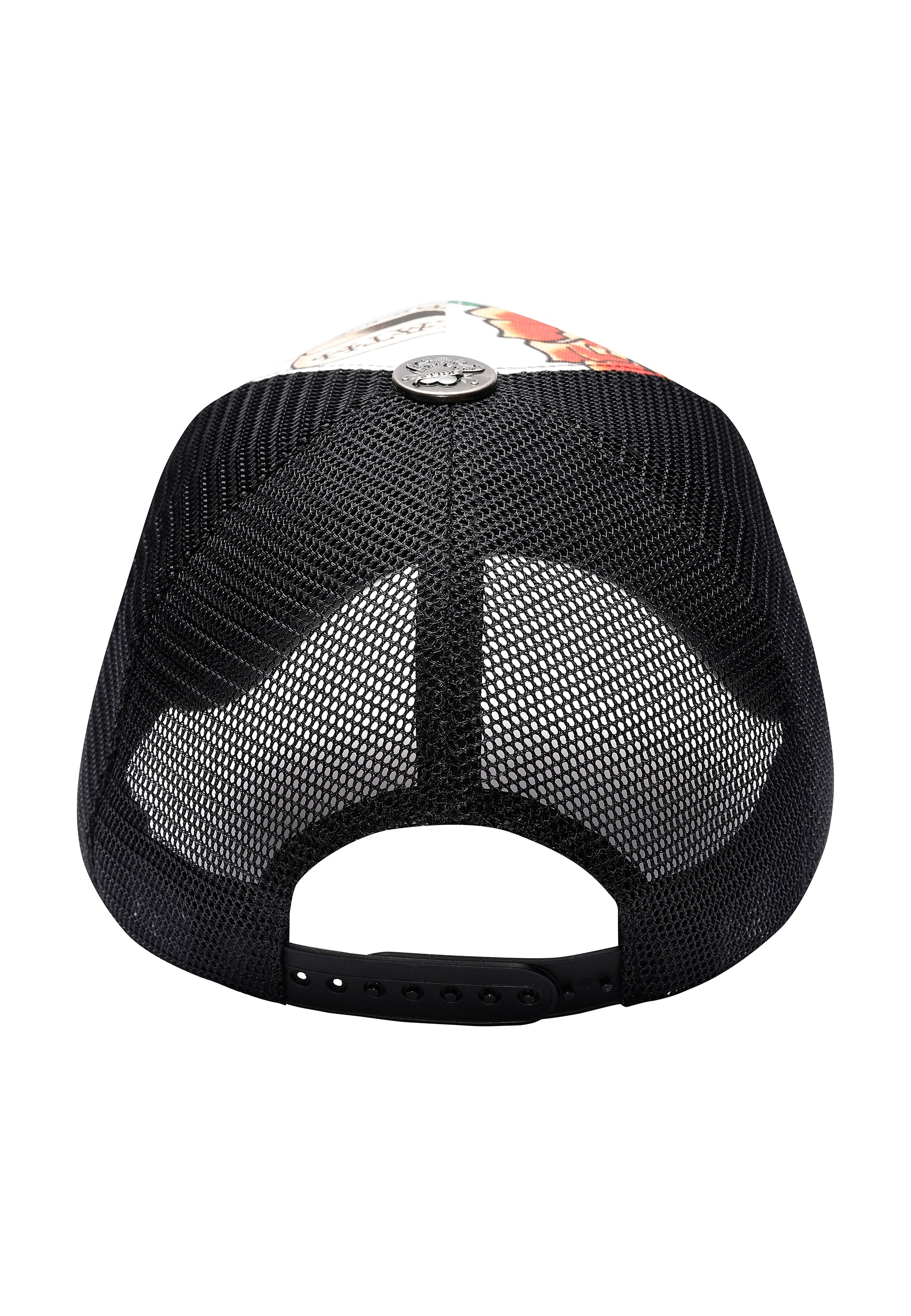 Unisex Snake And Skull 5 Panel Trucker Cap - White