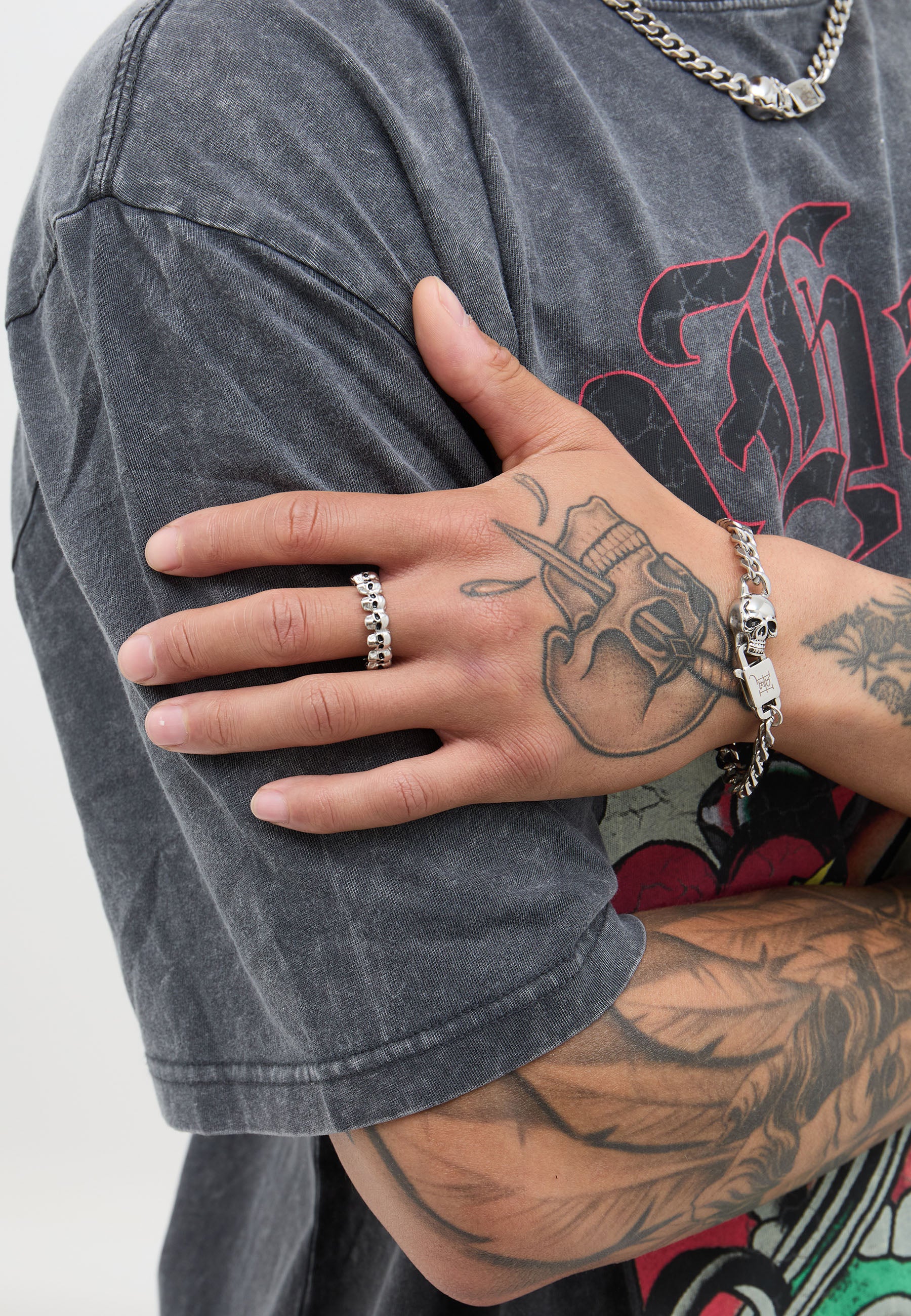 Ed Hardy Skulls Band Ring - Silver