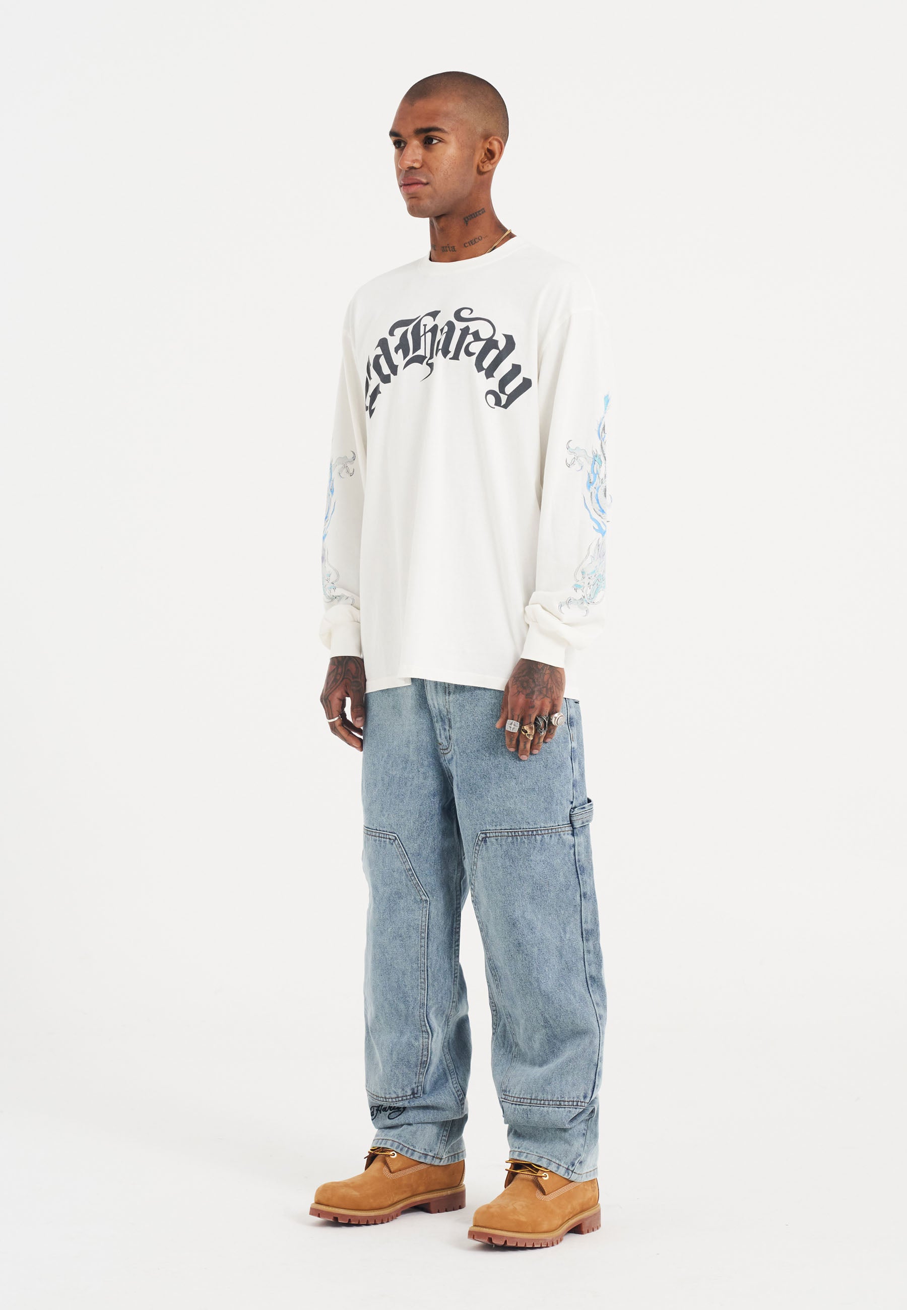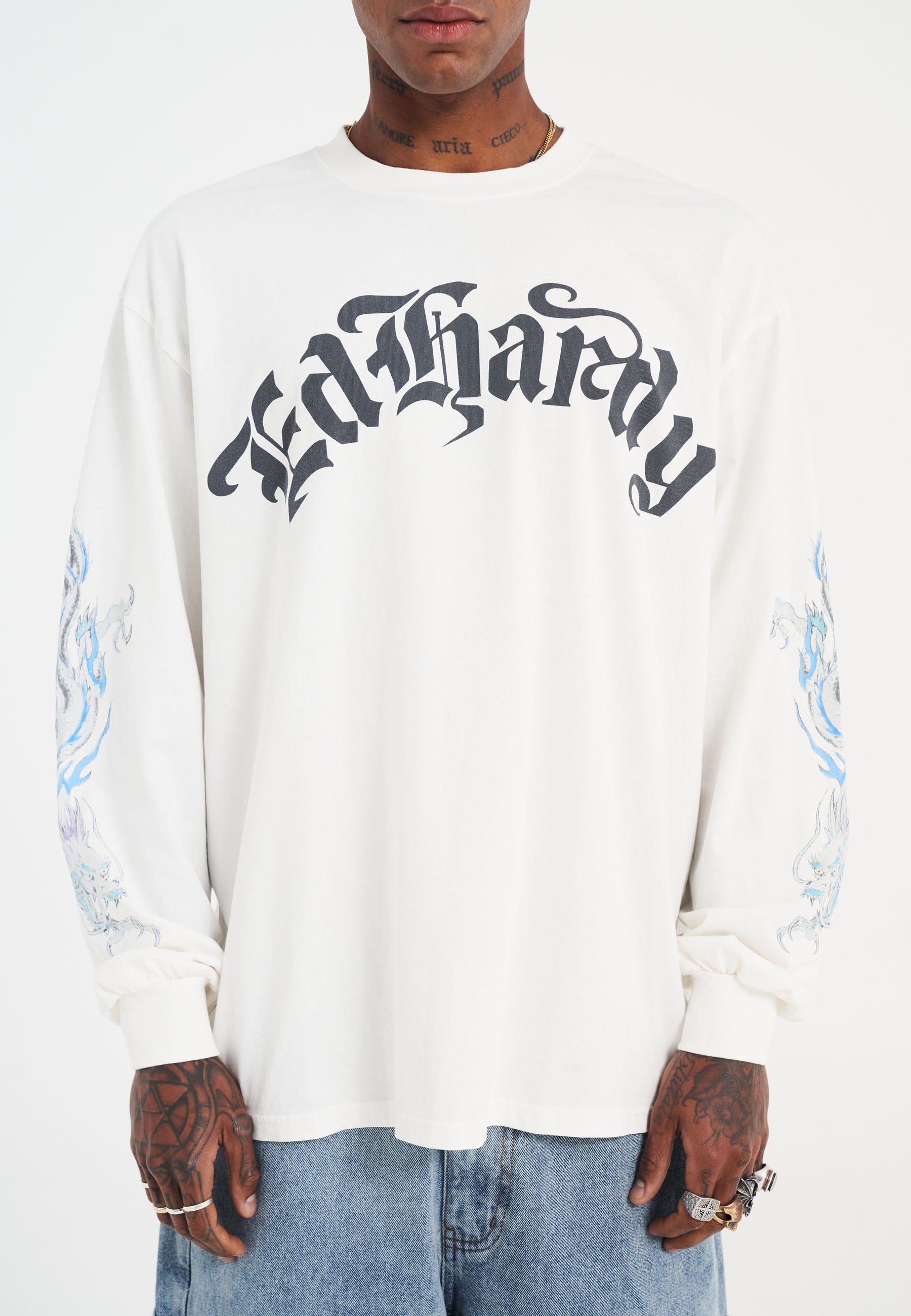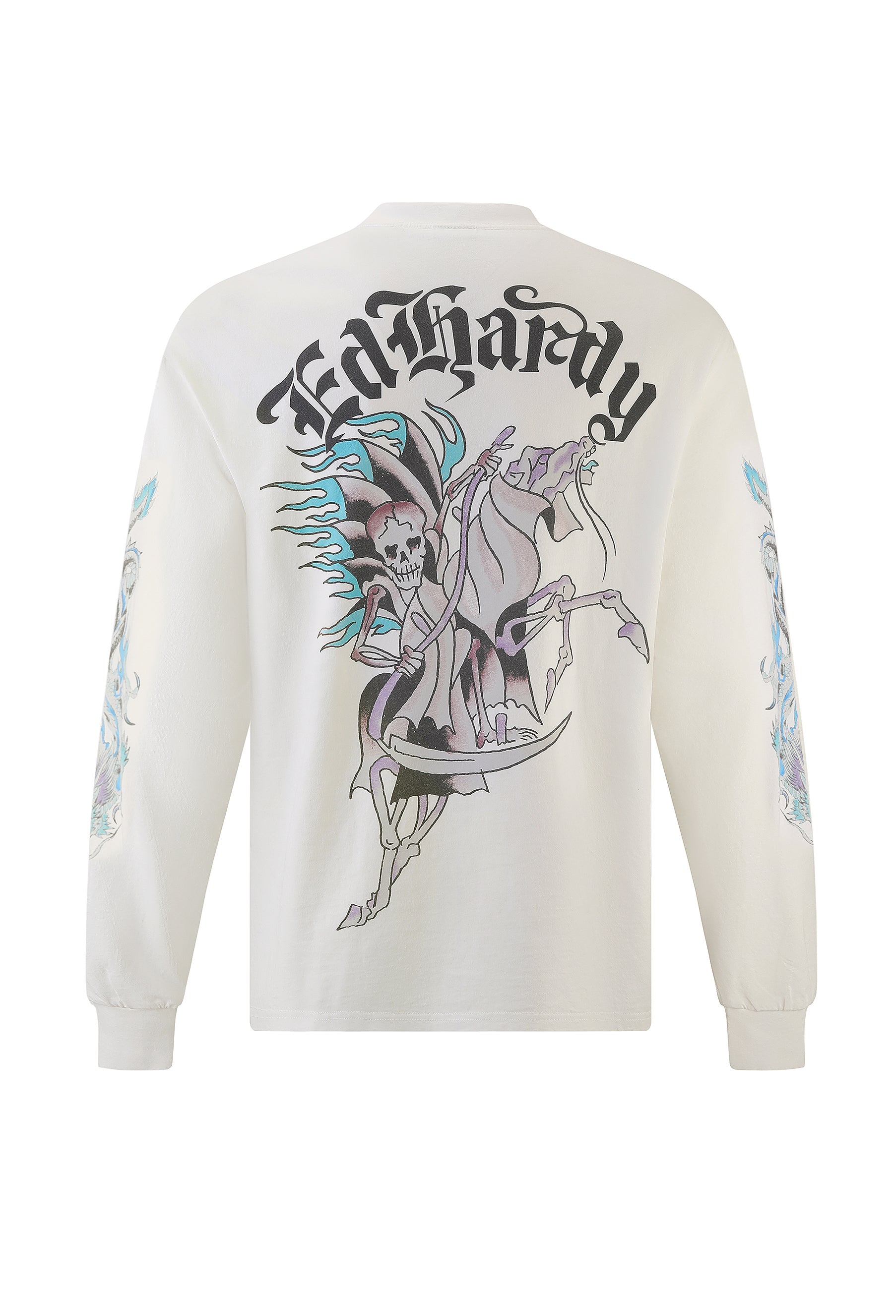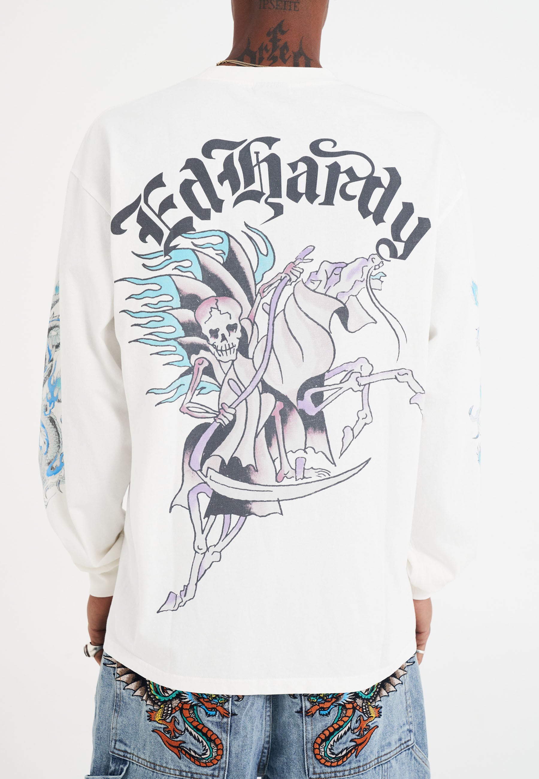 Mens Drag Death Rider Long Sleeve Tshirt - White