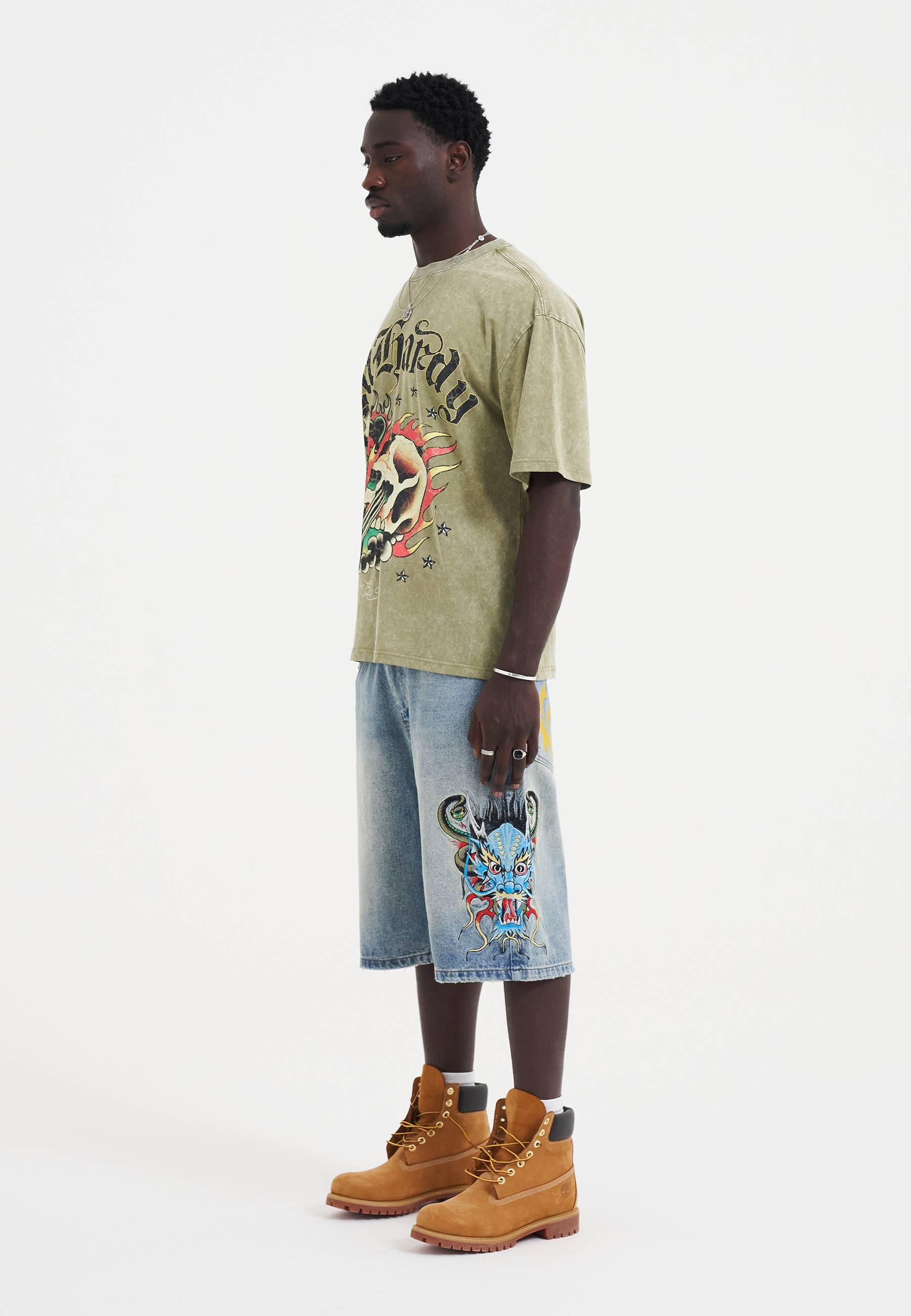 Mens Medusa Drag Denim Skater Jorts Shorts - Bleach