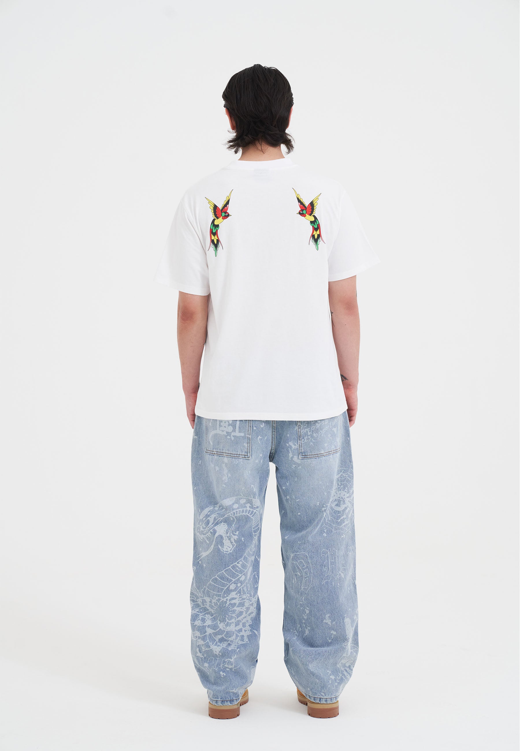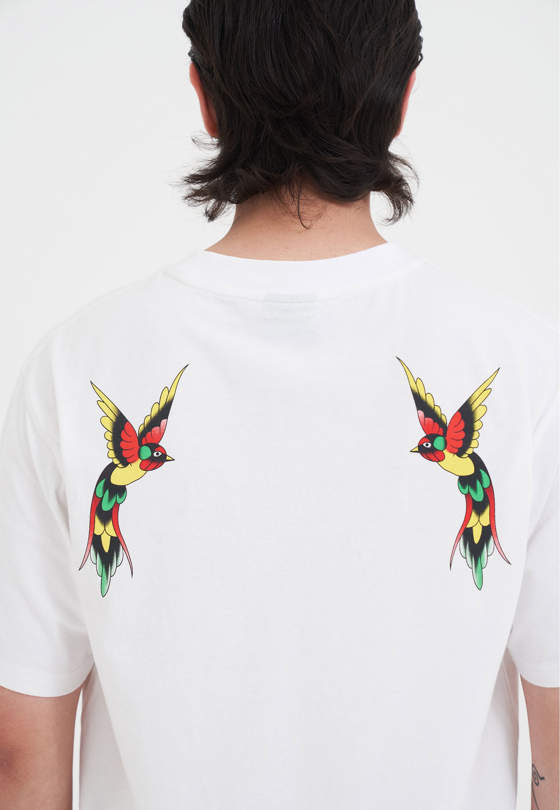 - FLYING SWALLOW GRAPHIC AT BACK SHOULDERS