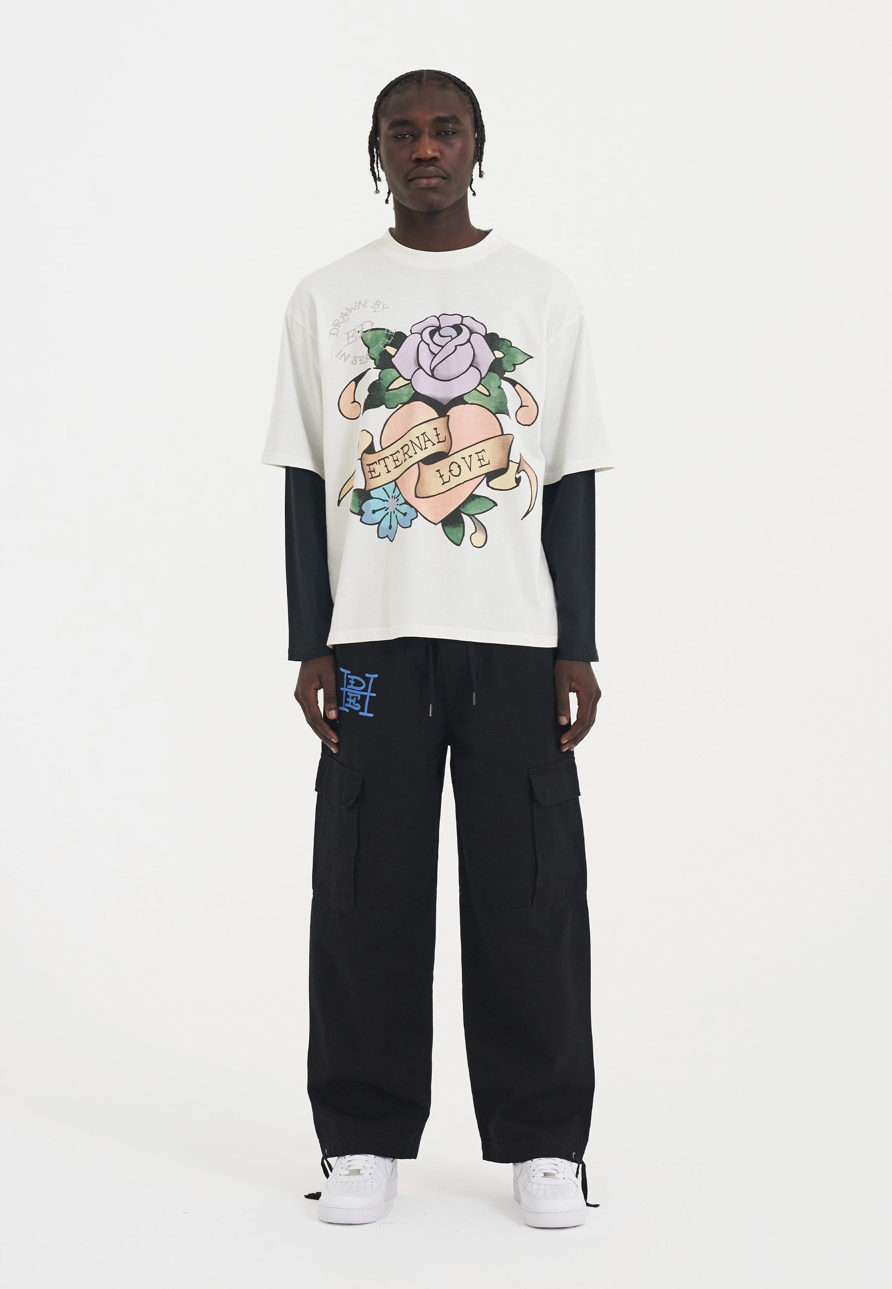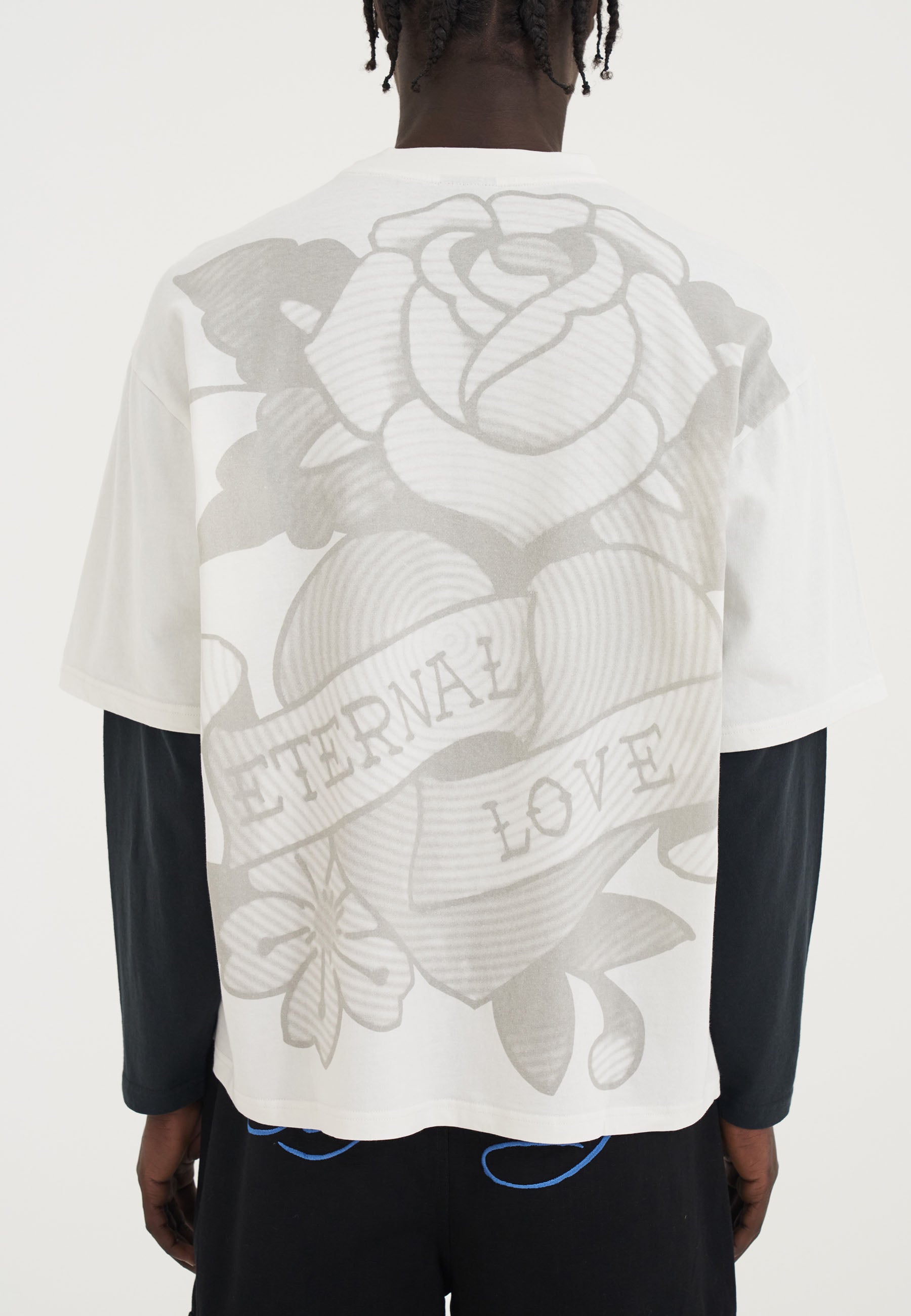 Mens Vintage Eternal Double Sleeve Relaxed Tshirt - White