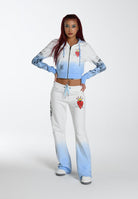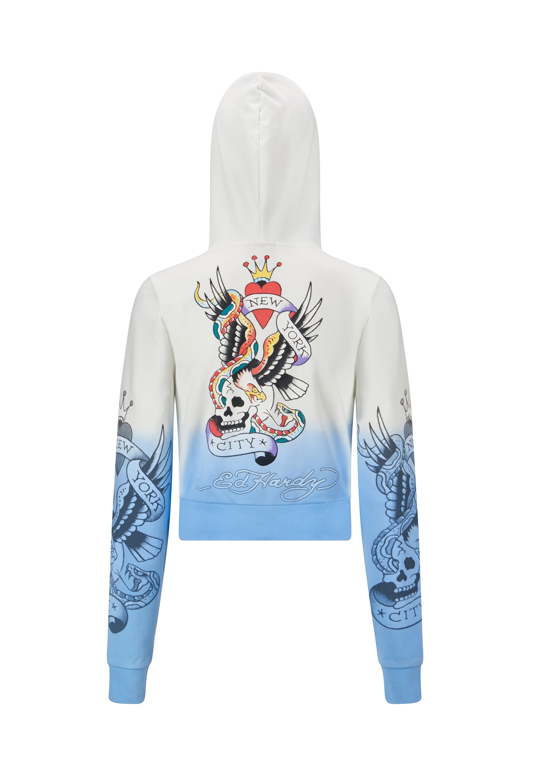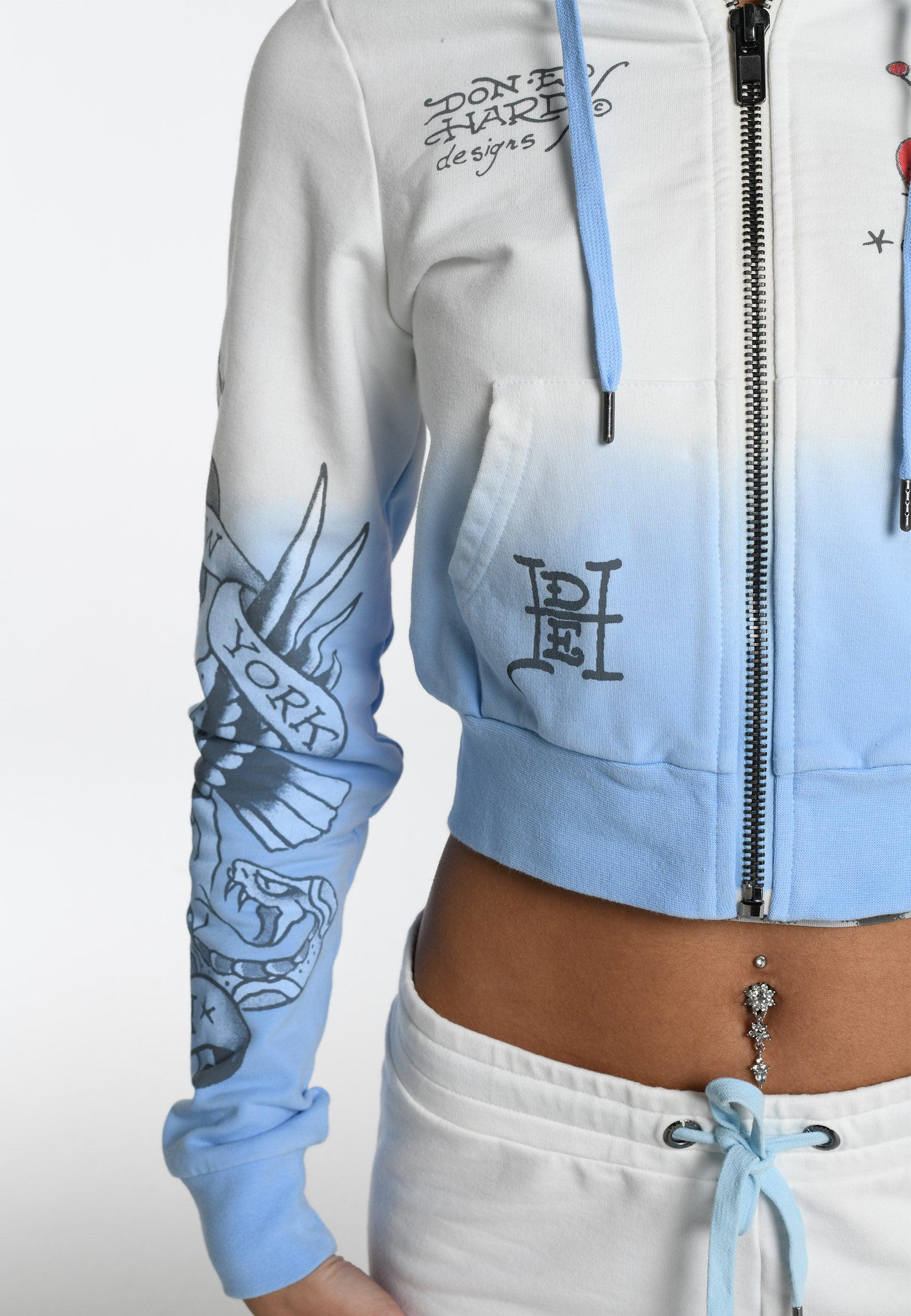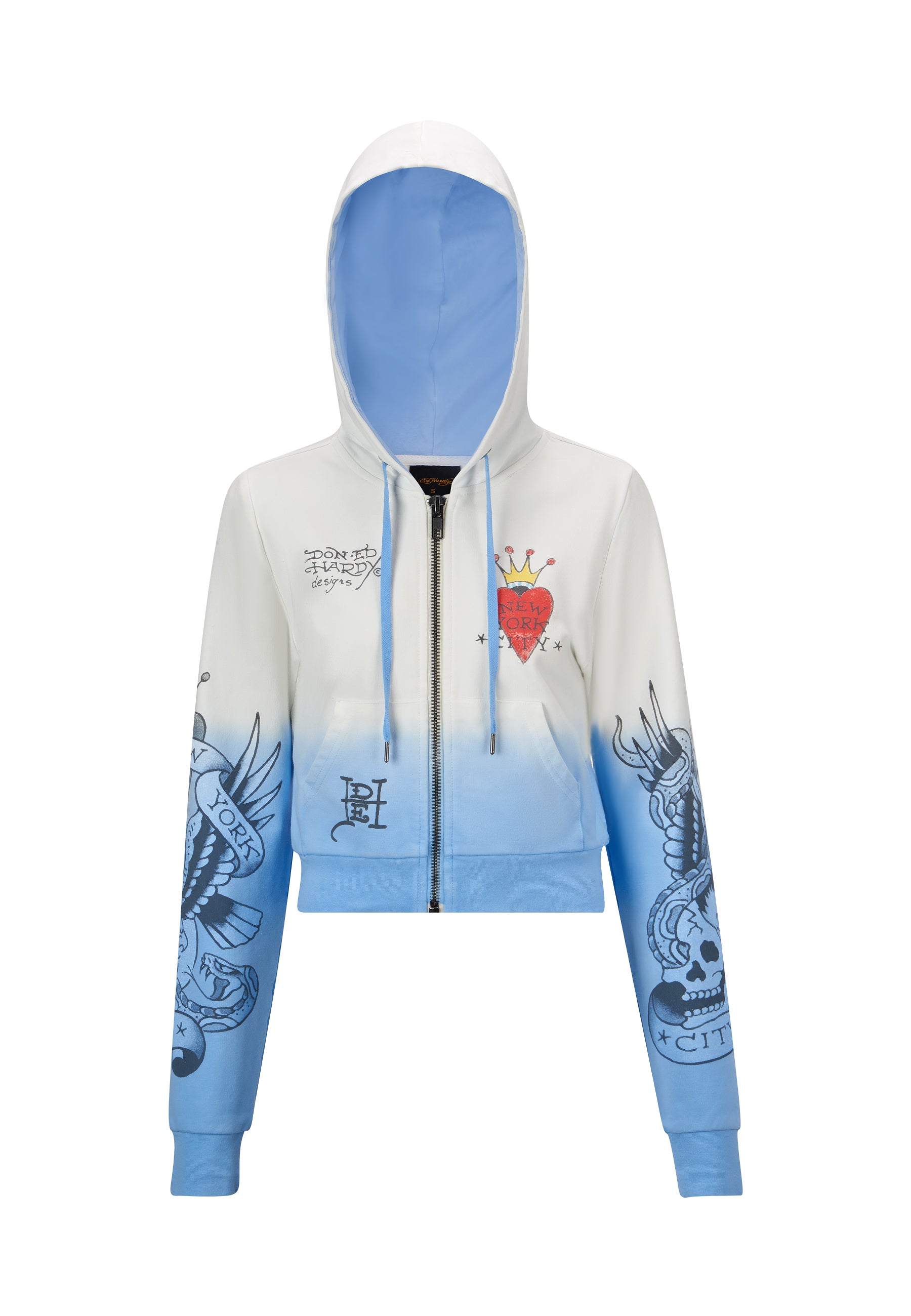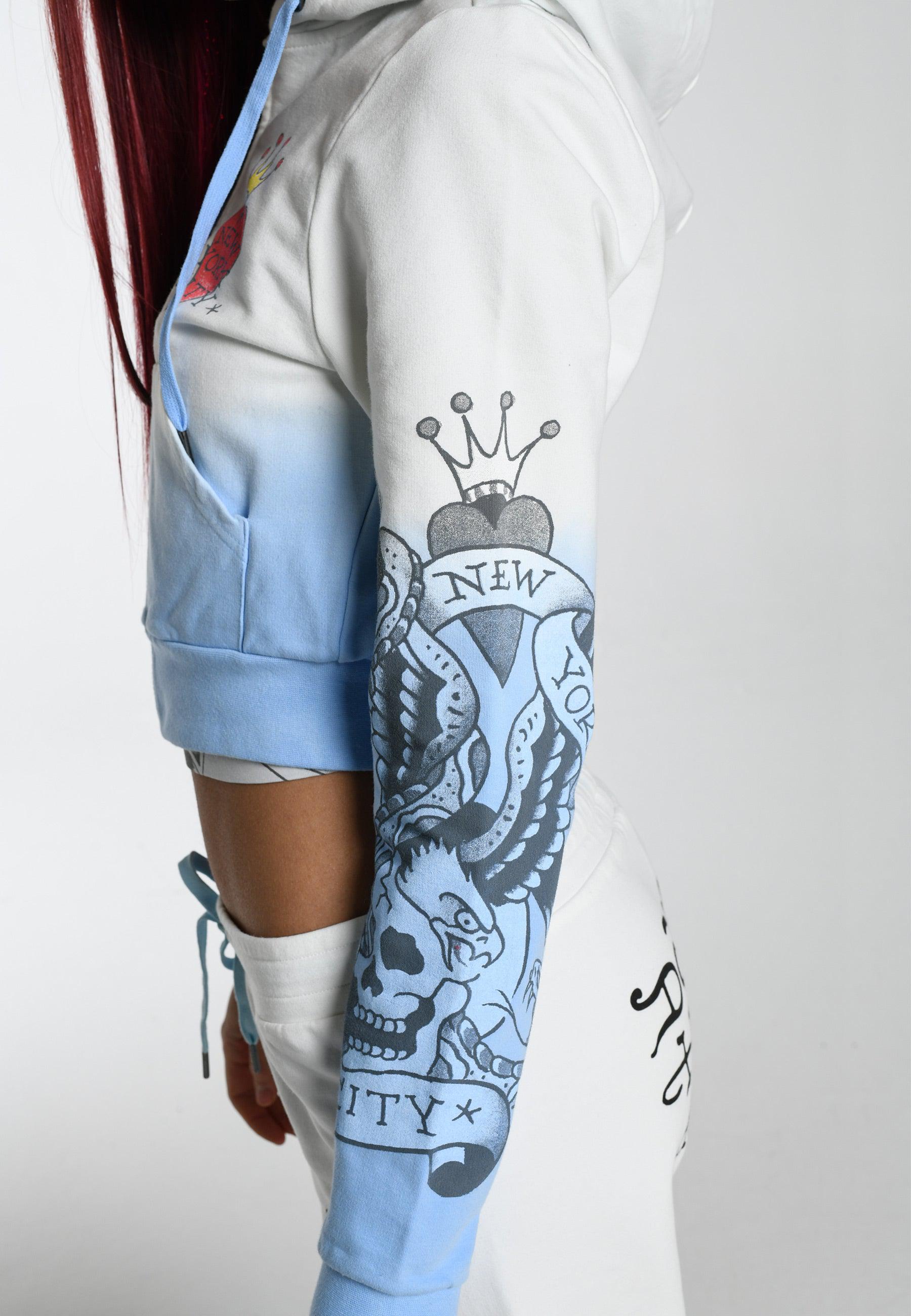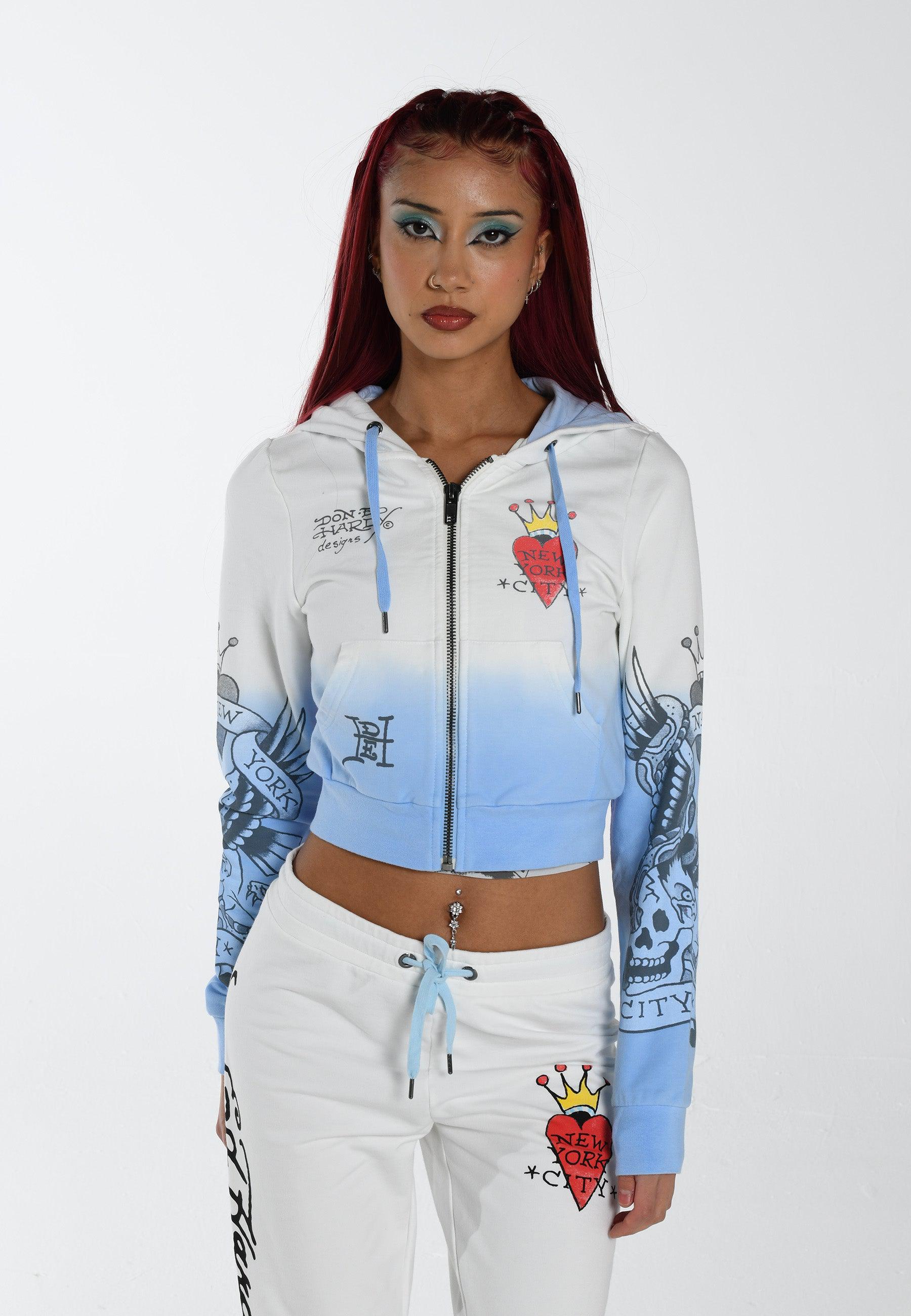 Womens Nyc-Heart Cropped Zip Through Hoodie - Blue
