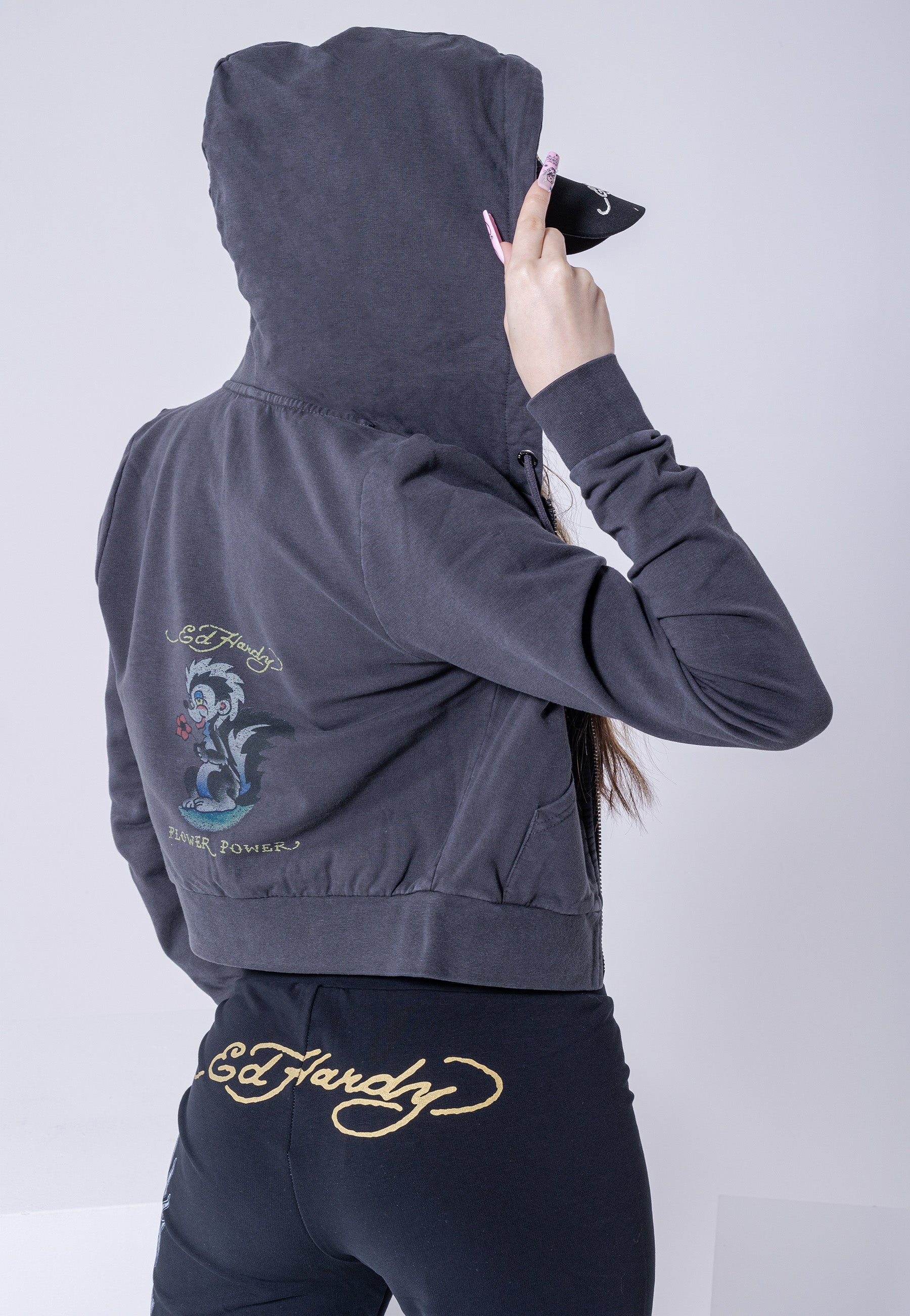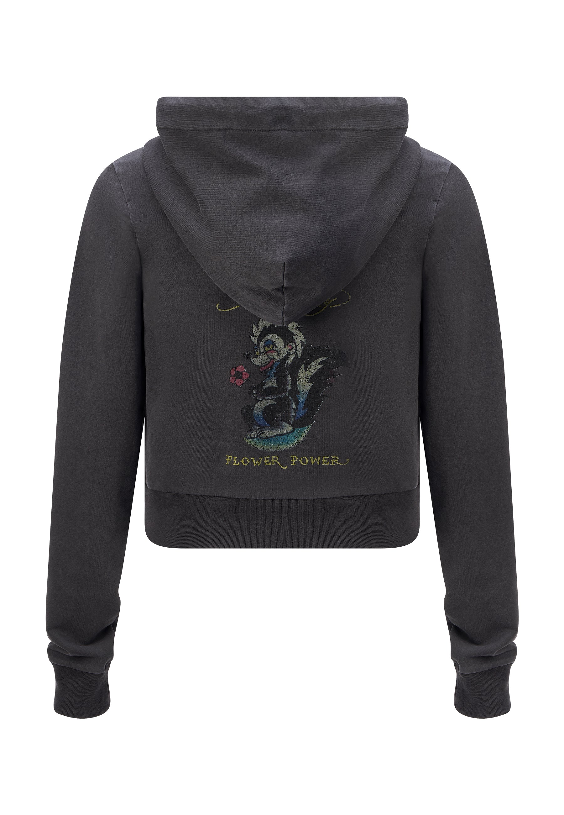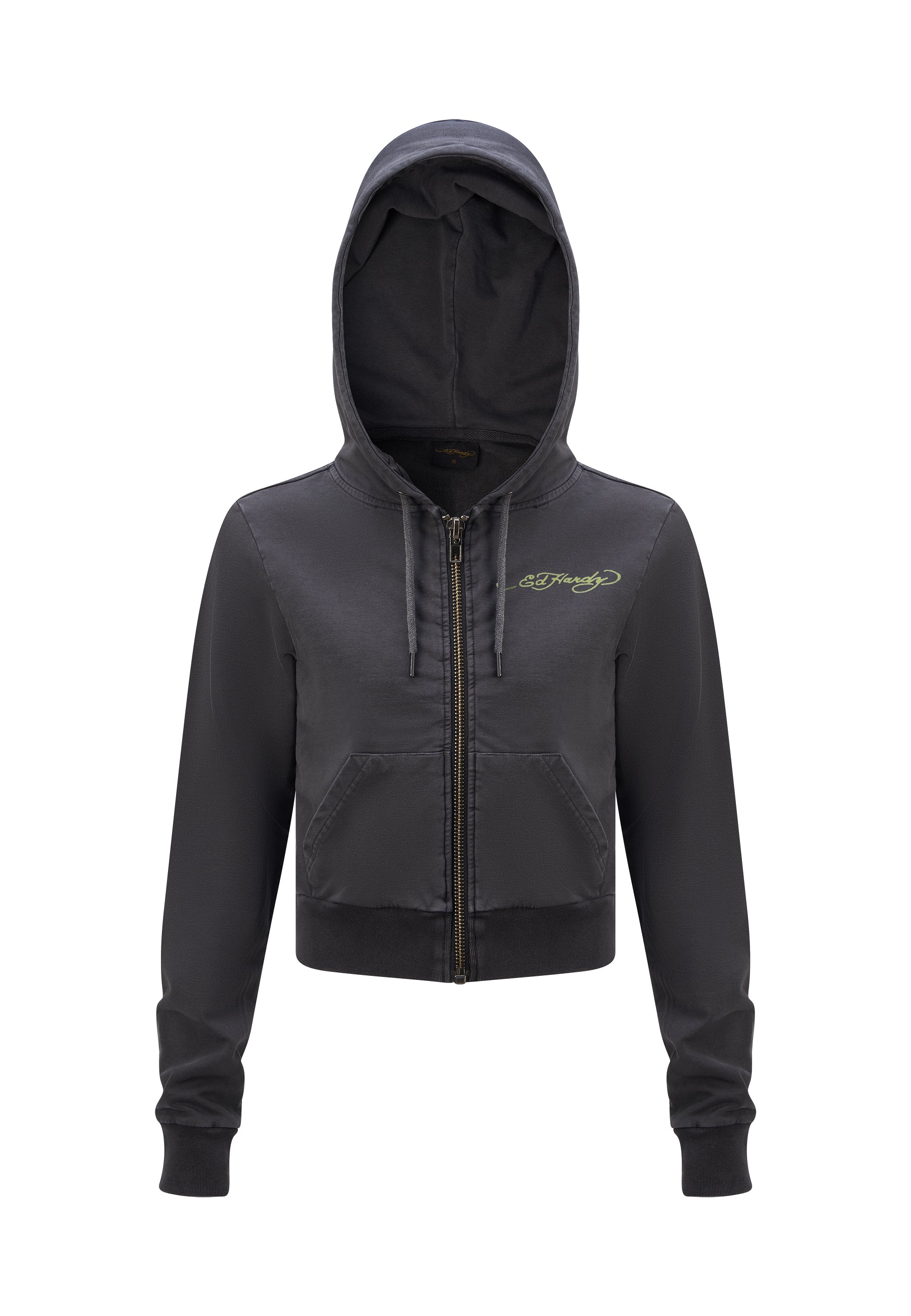 Skunk-Power Cropped Zip Thru Hoody - Gewaschenes Schwarz