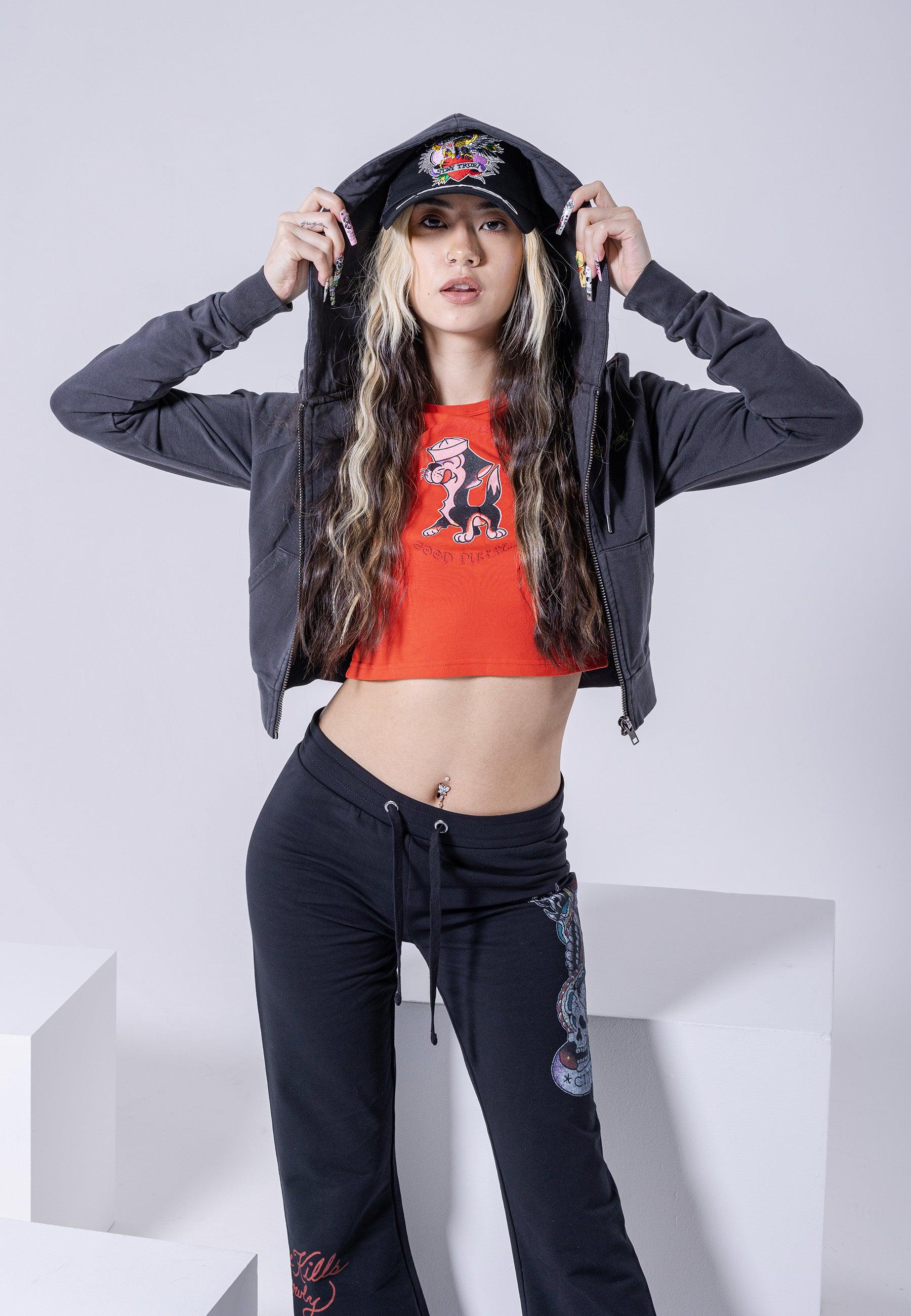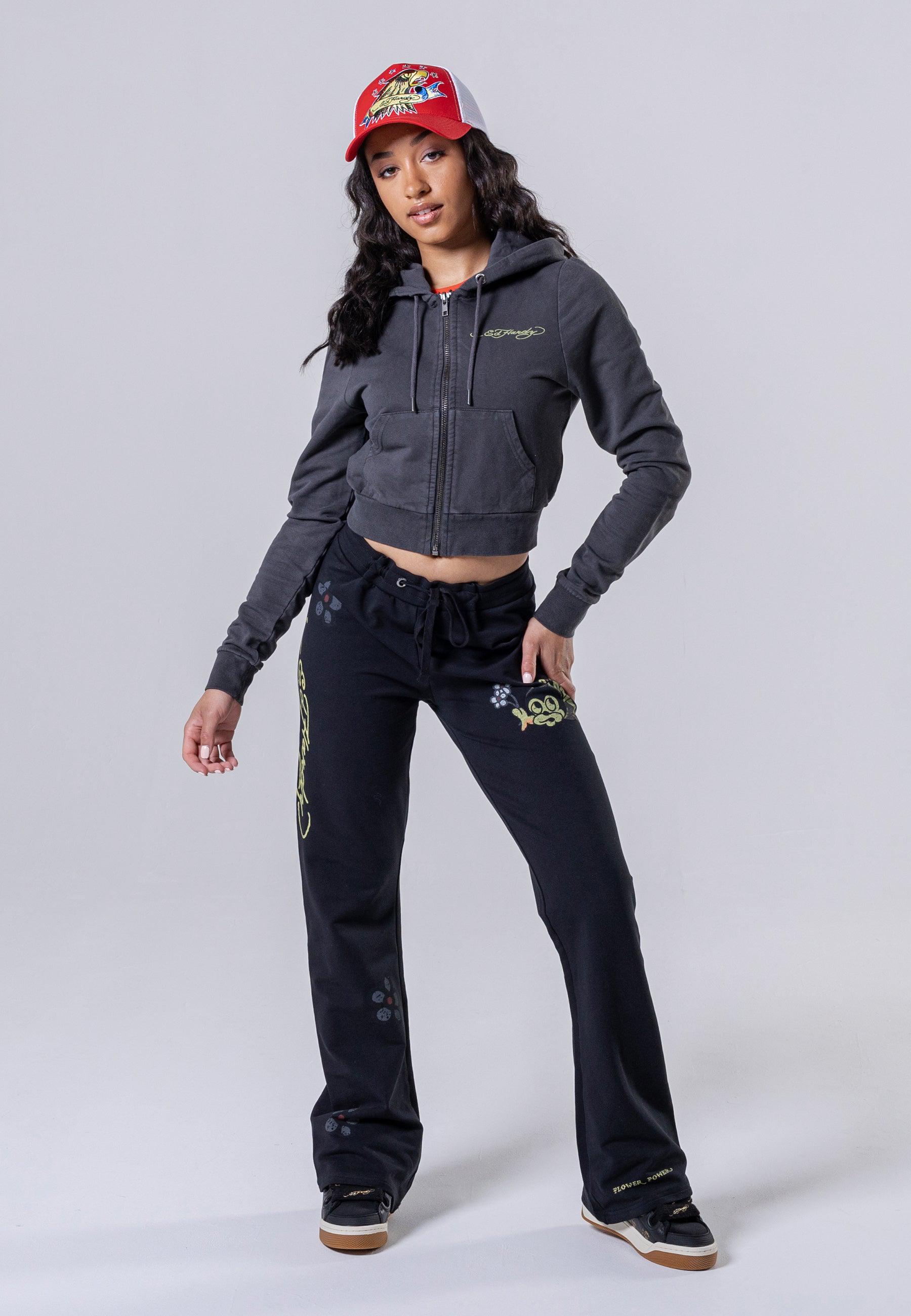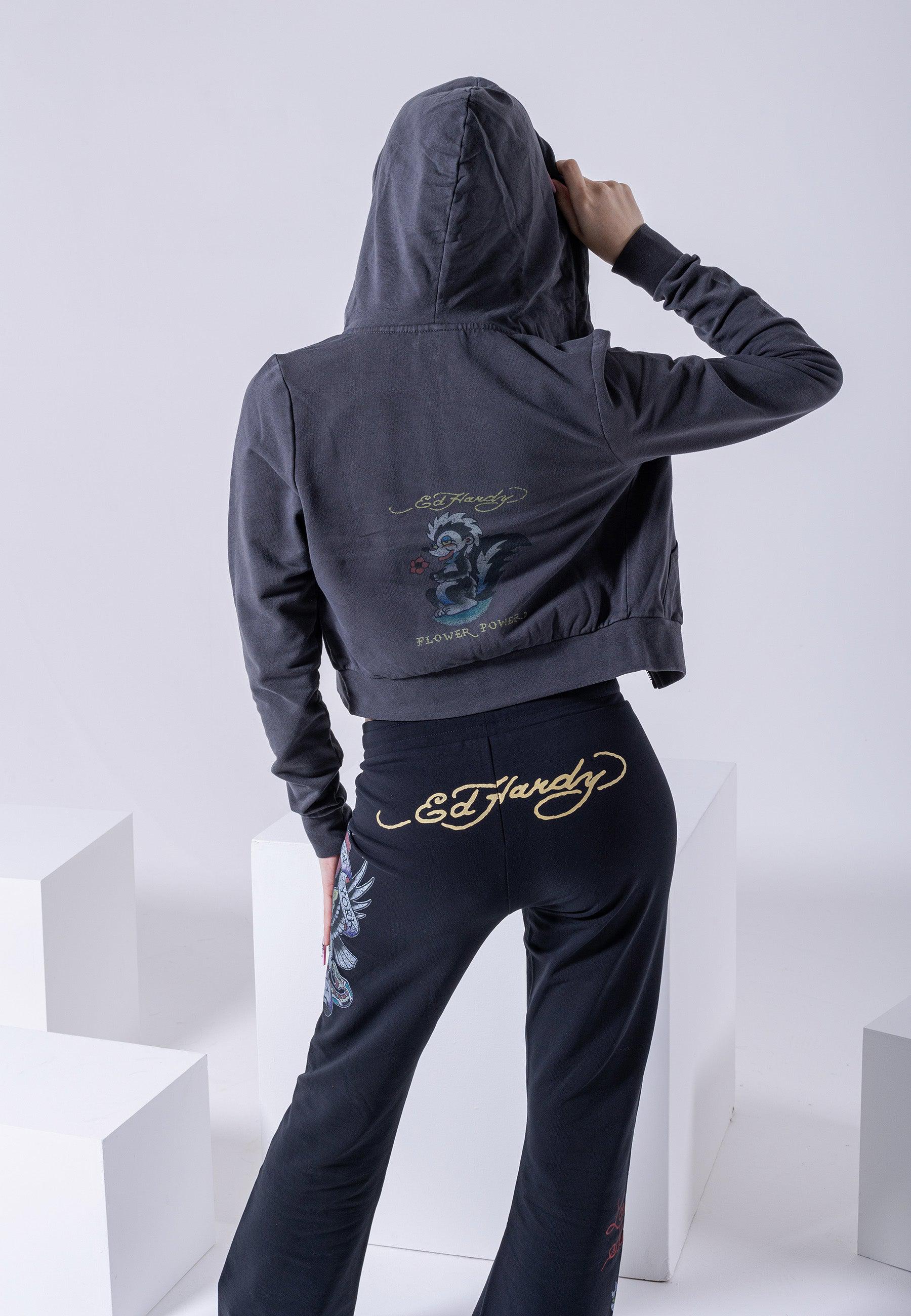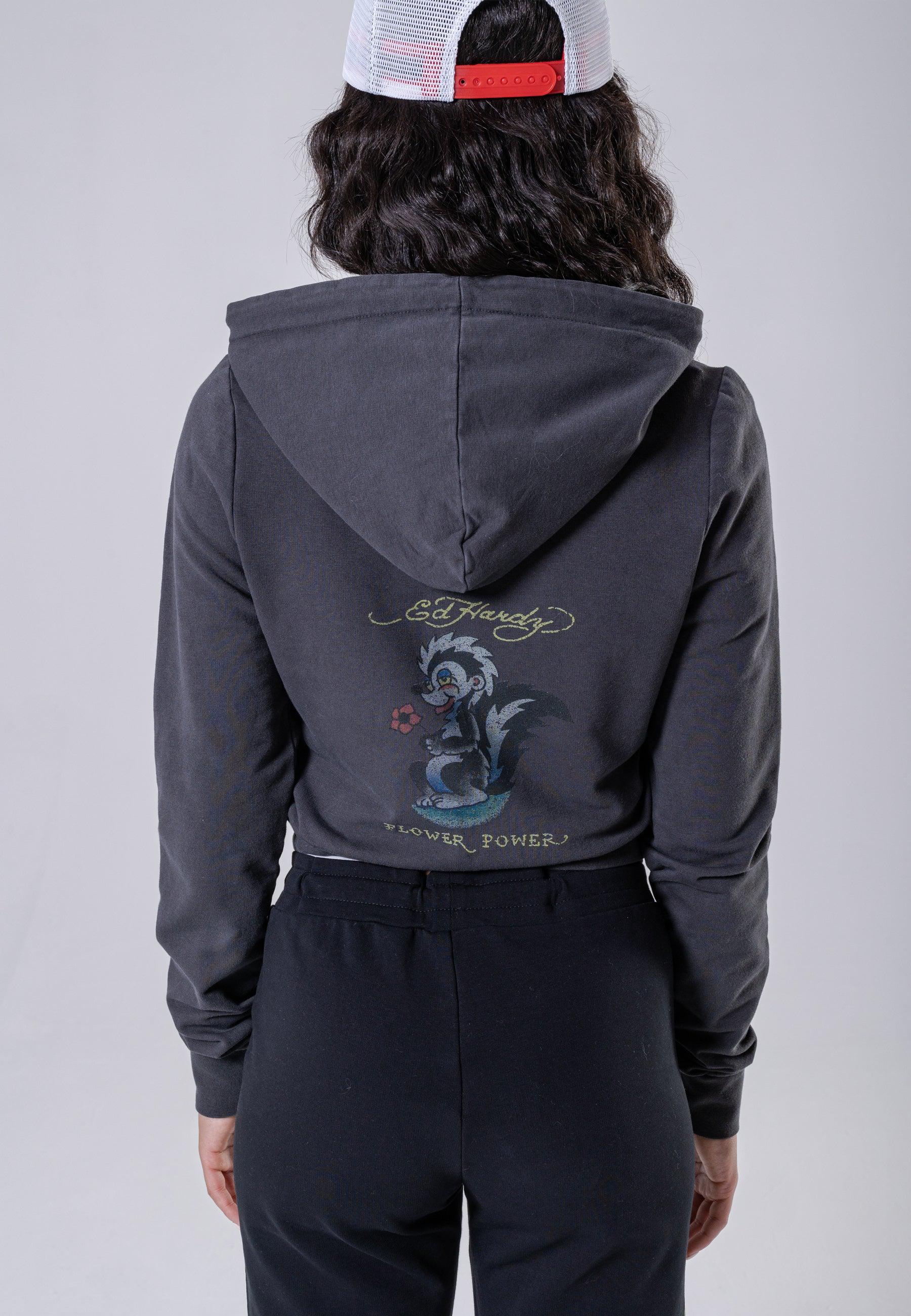 Skunk-Power Cropped Zip Thru Hoody - Gewaschenes Schwarz
