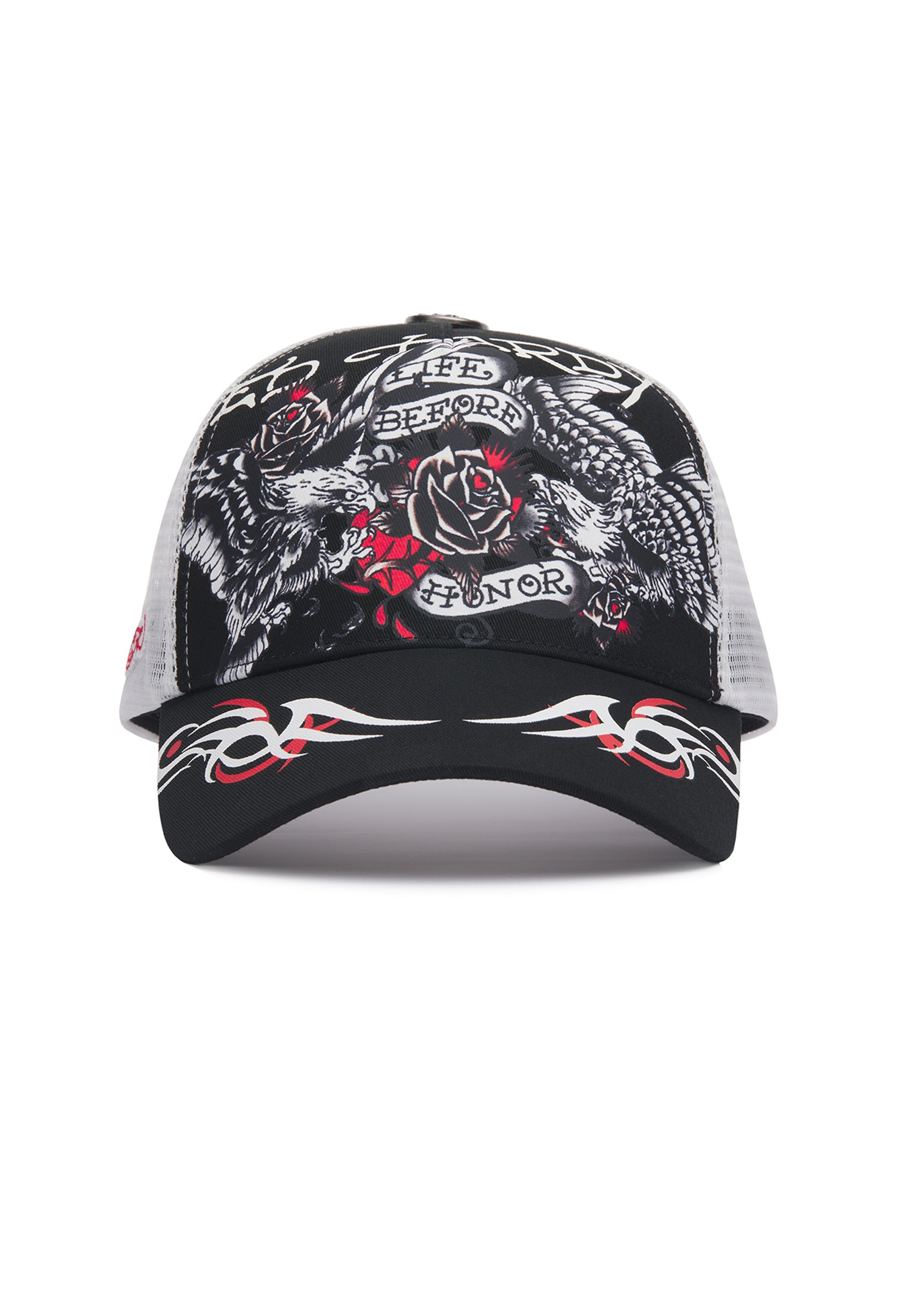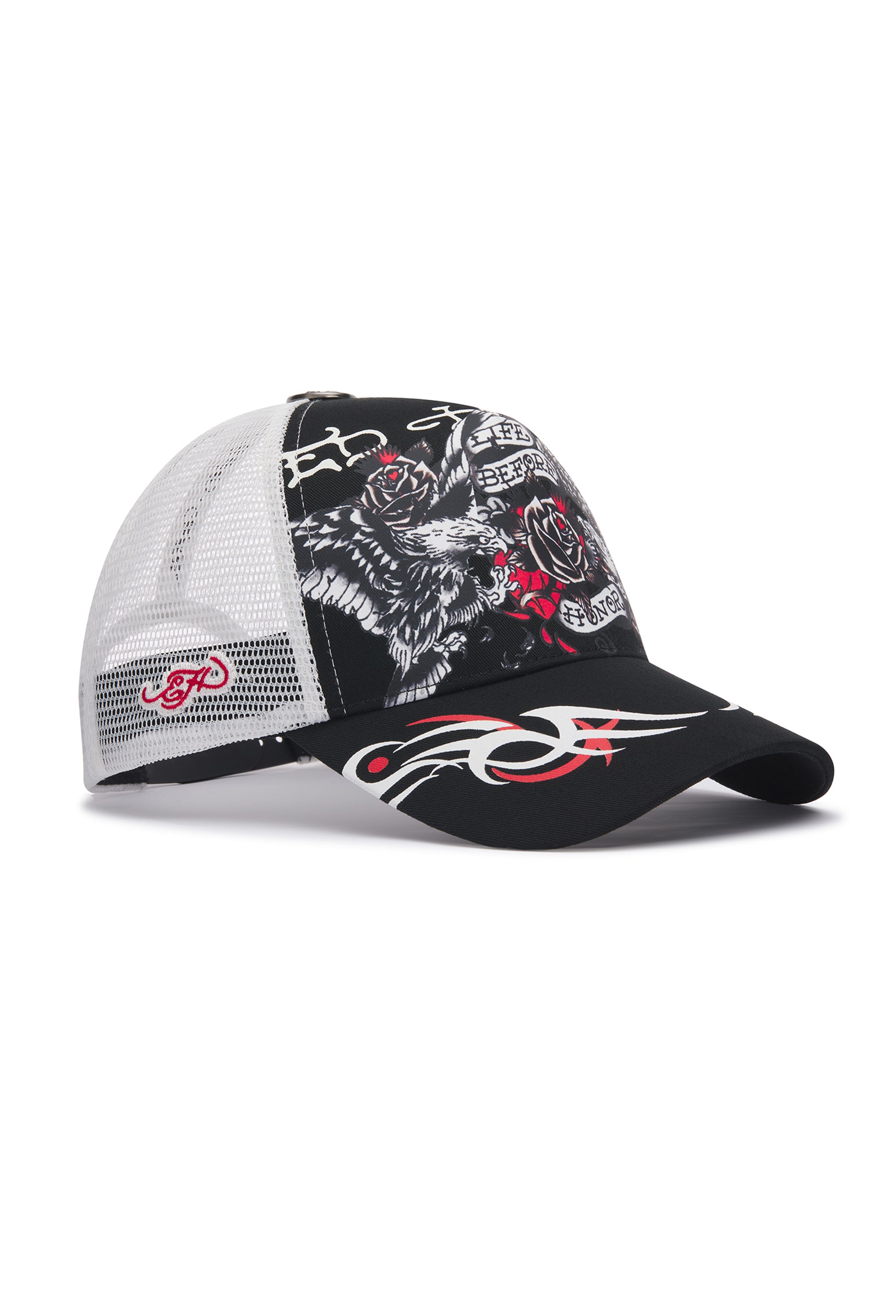 Unisex Life Before Tattoo 5 Panel Trucker Cap in Black/White