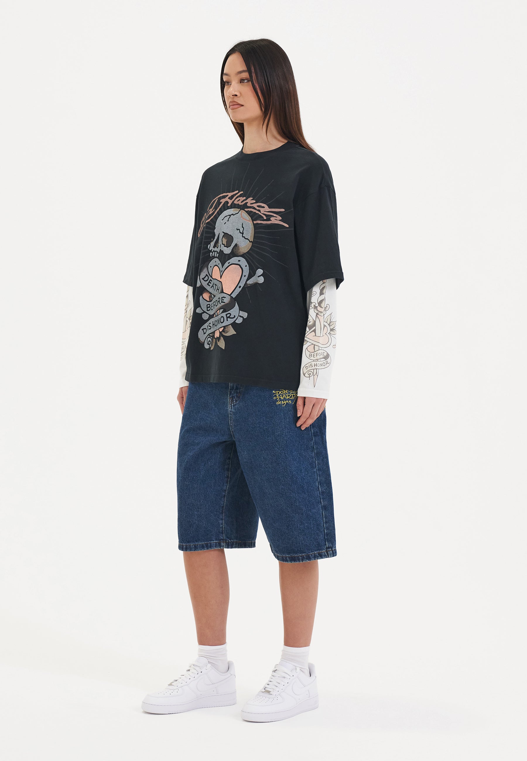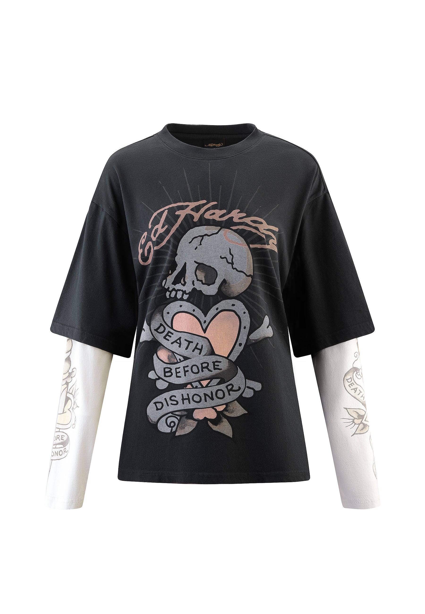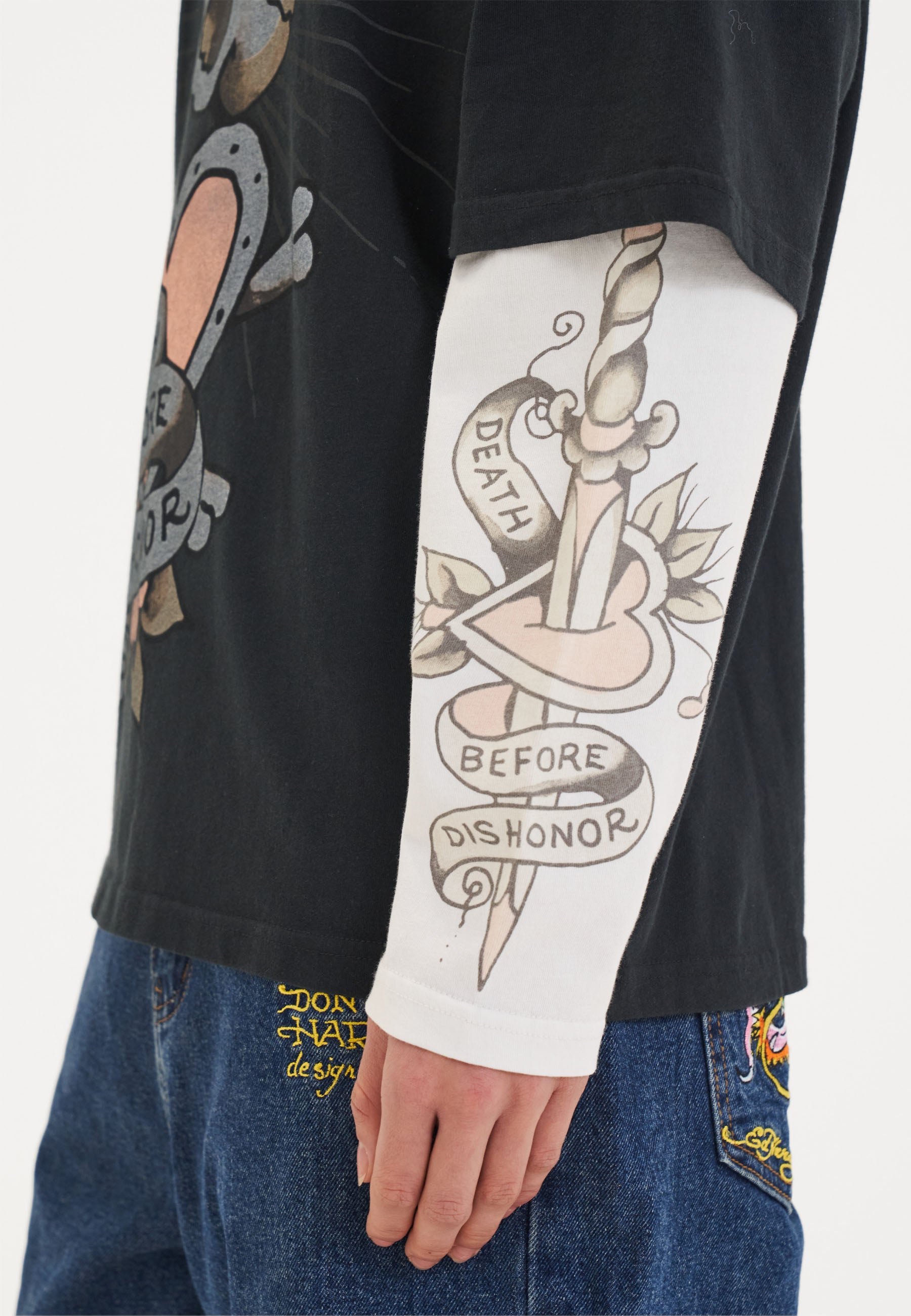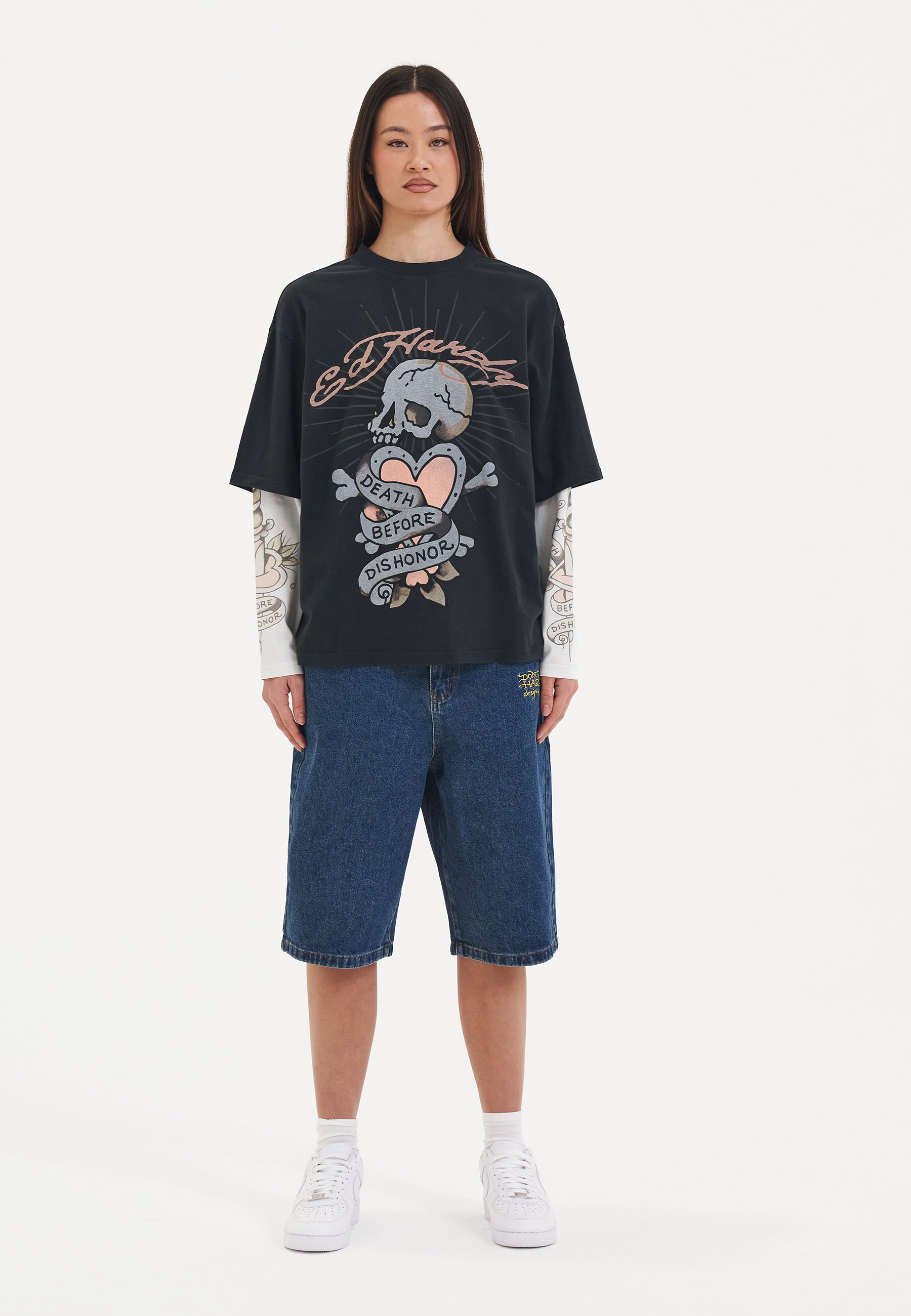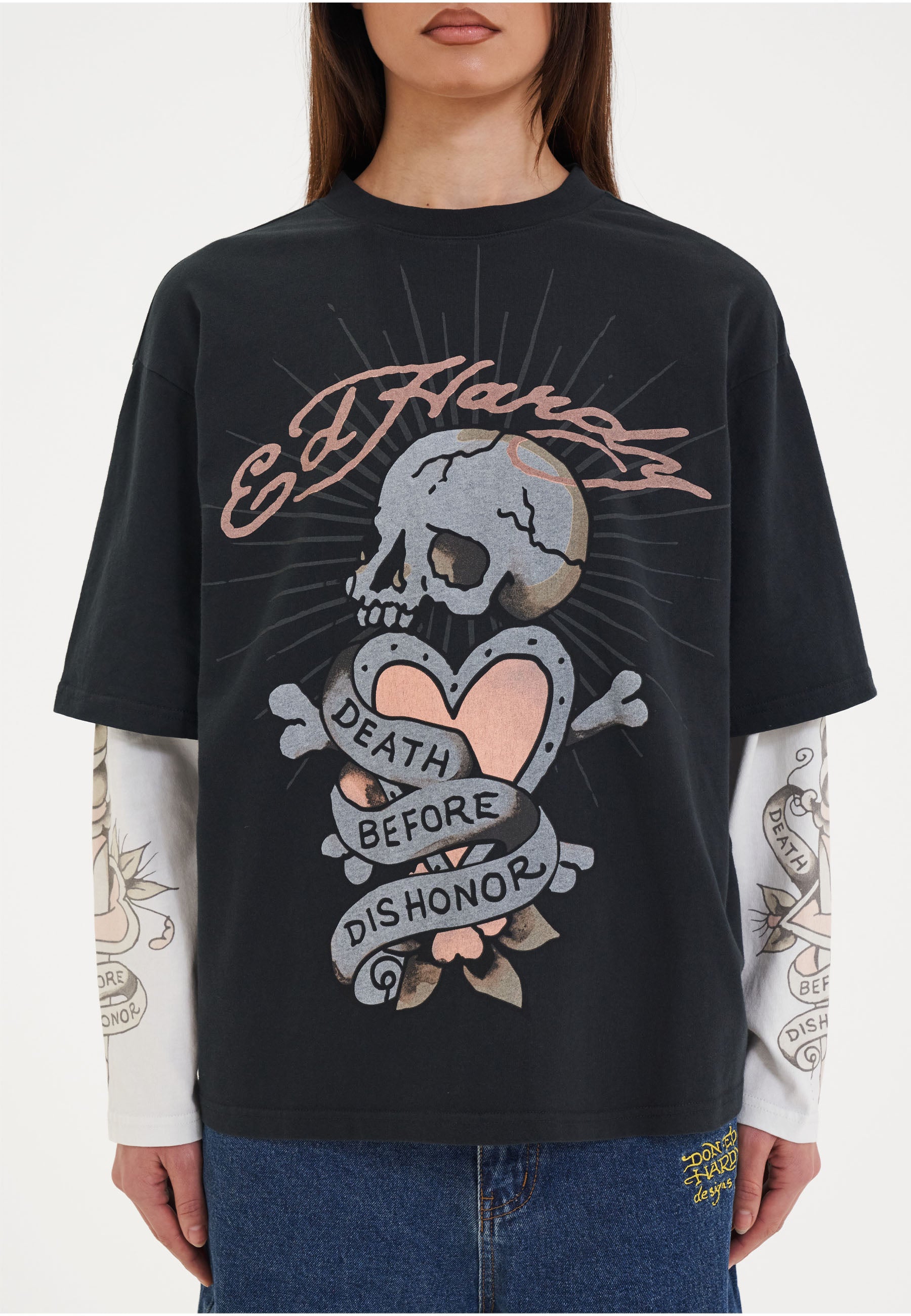 Back for another season, the Death and Dishonour Double-Sleeve tee asserts itself as an enduring Ed Hardy classic.