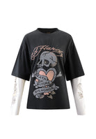 Womens Death & Dishonour Double Sleeve Relaxed Tshirt Top