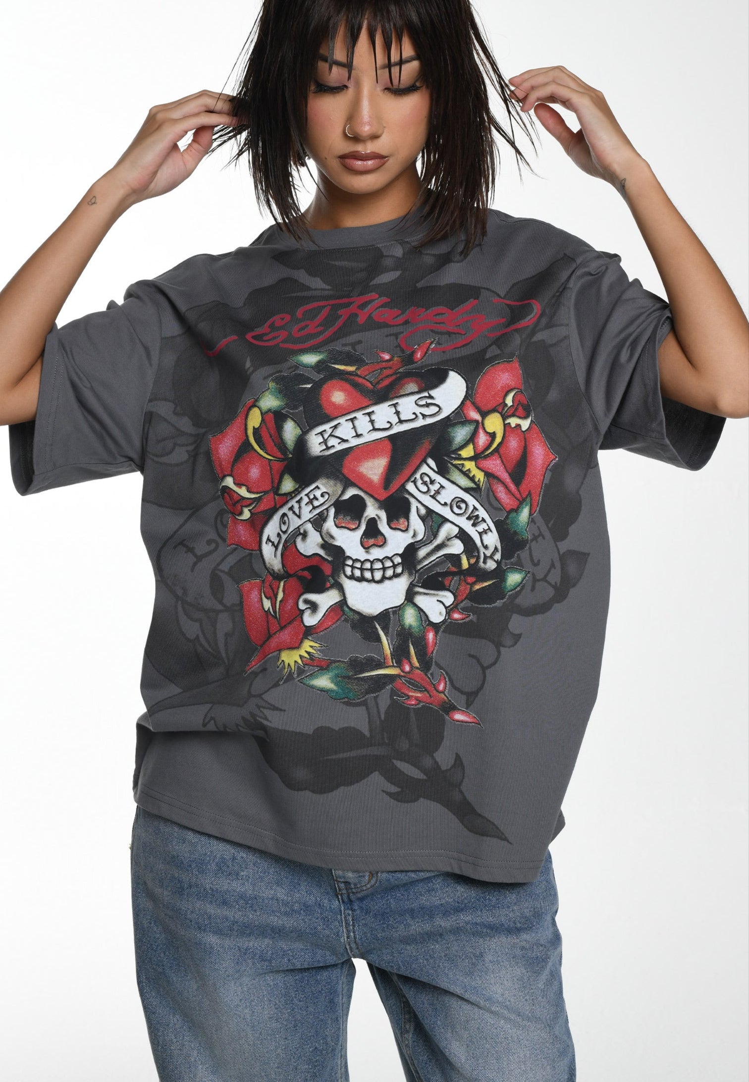 Womens Kills Slowly Relaxed T-Shirt - Charcoal
