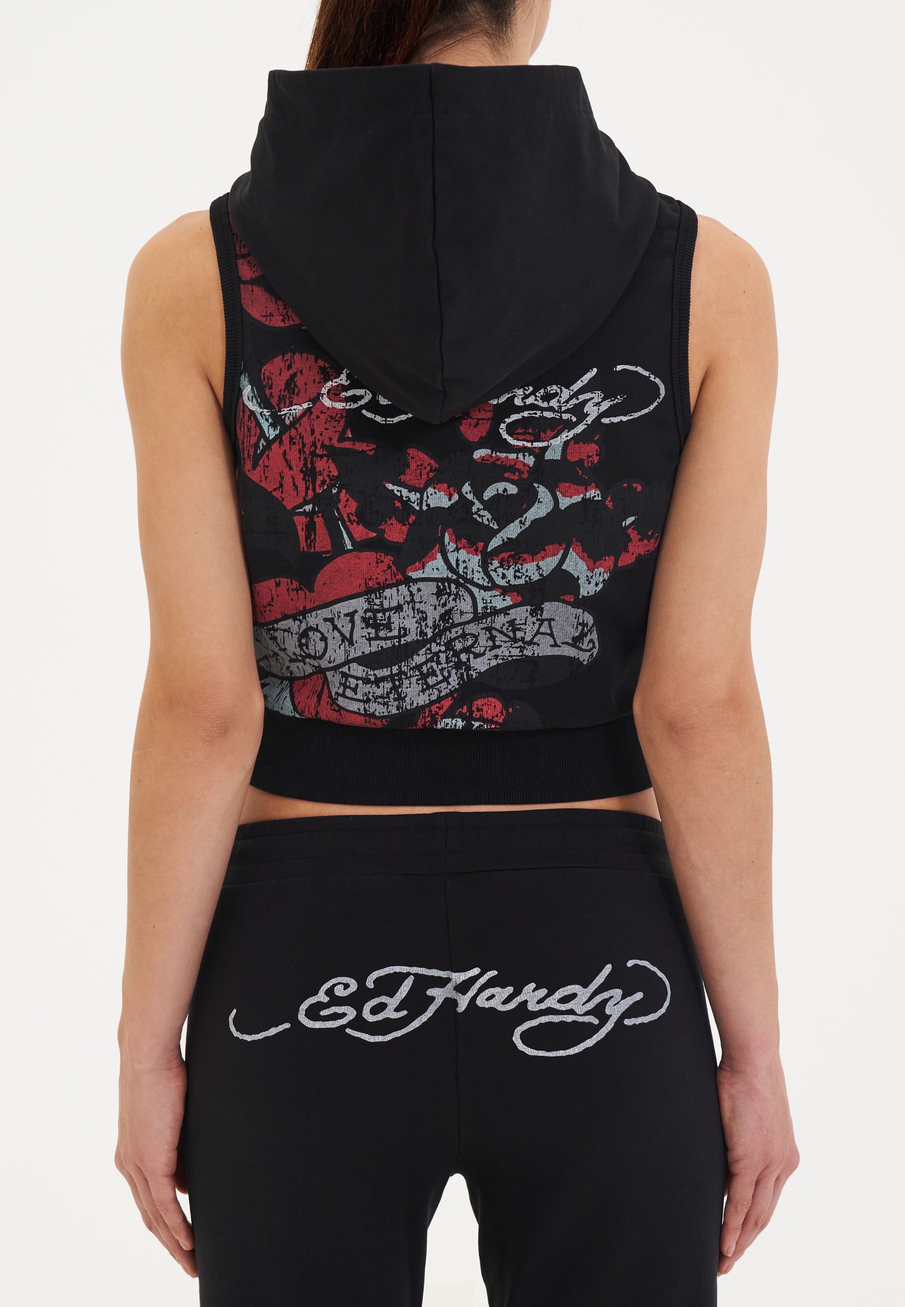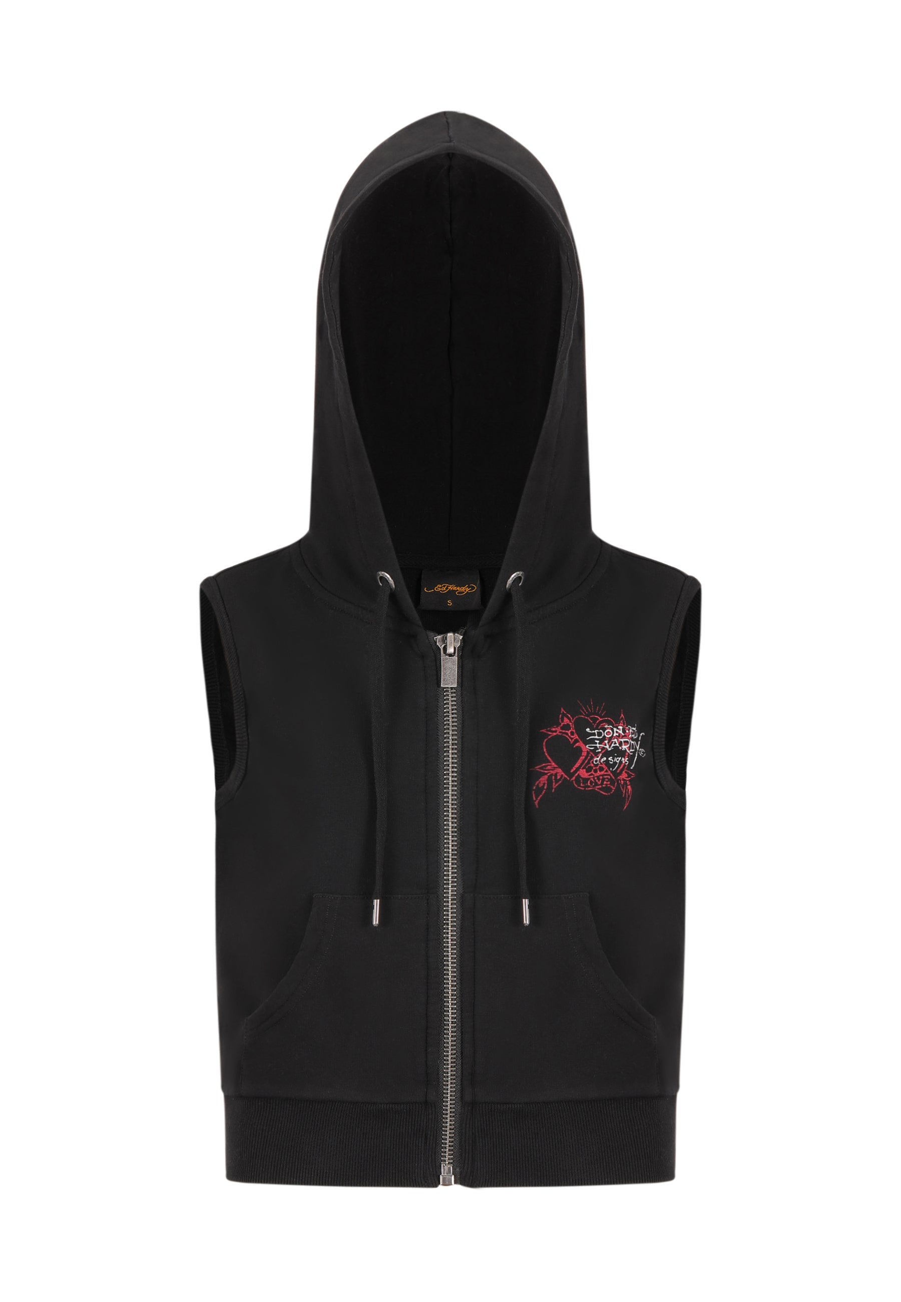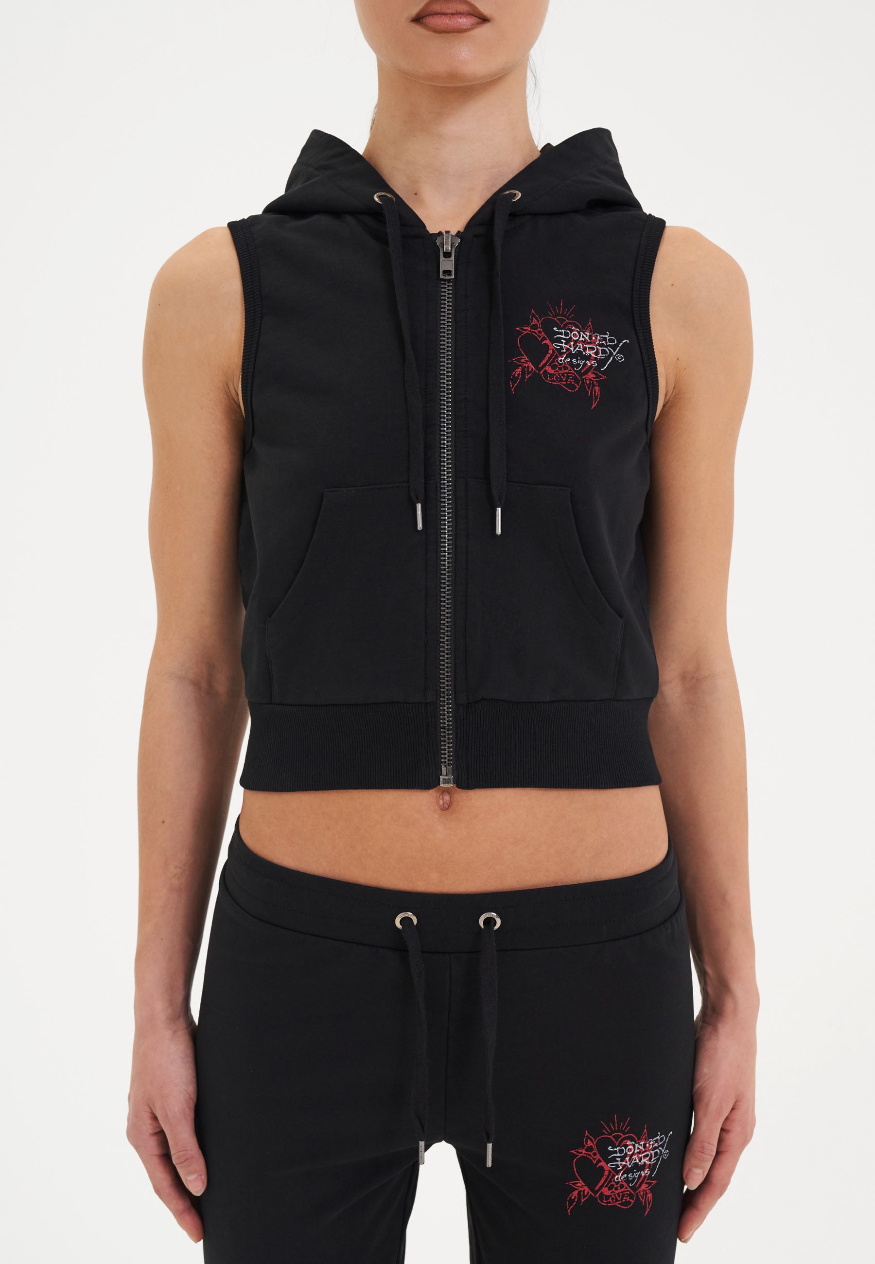 Womens Love Eternal Sleeveless Zip Thru Cropped Hoodie - Black