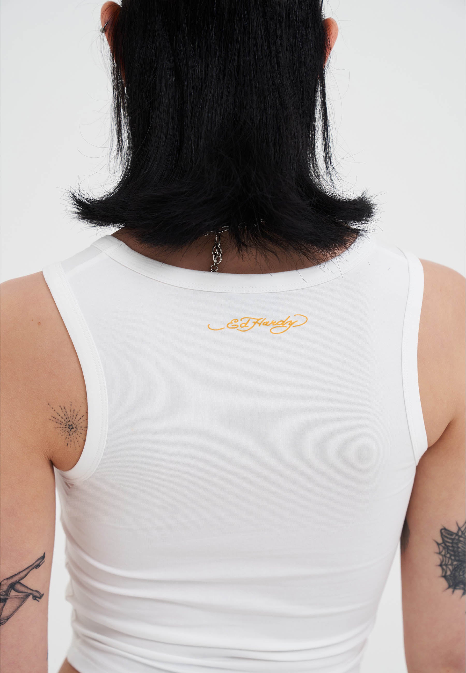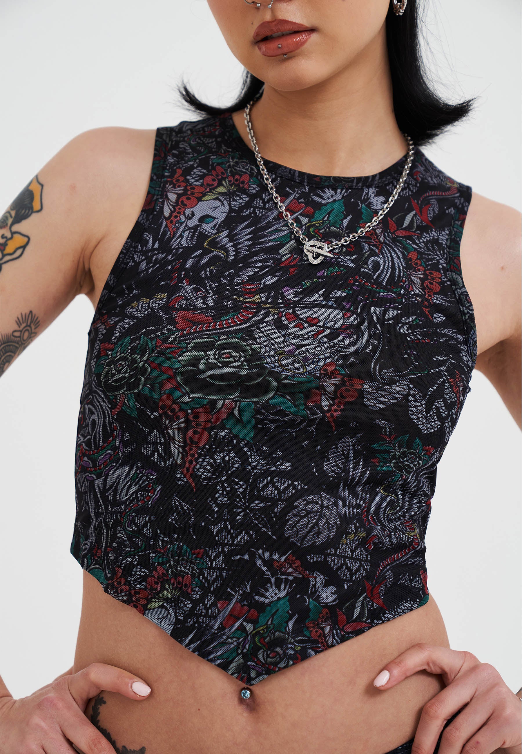 Womens Dragon Repeat Tied Back Mesh Vest Top - Black