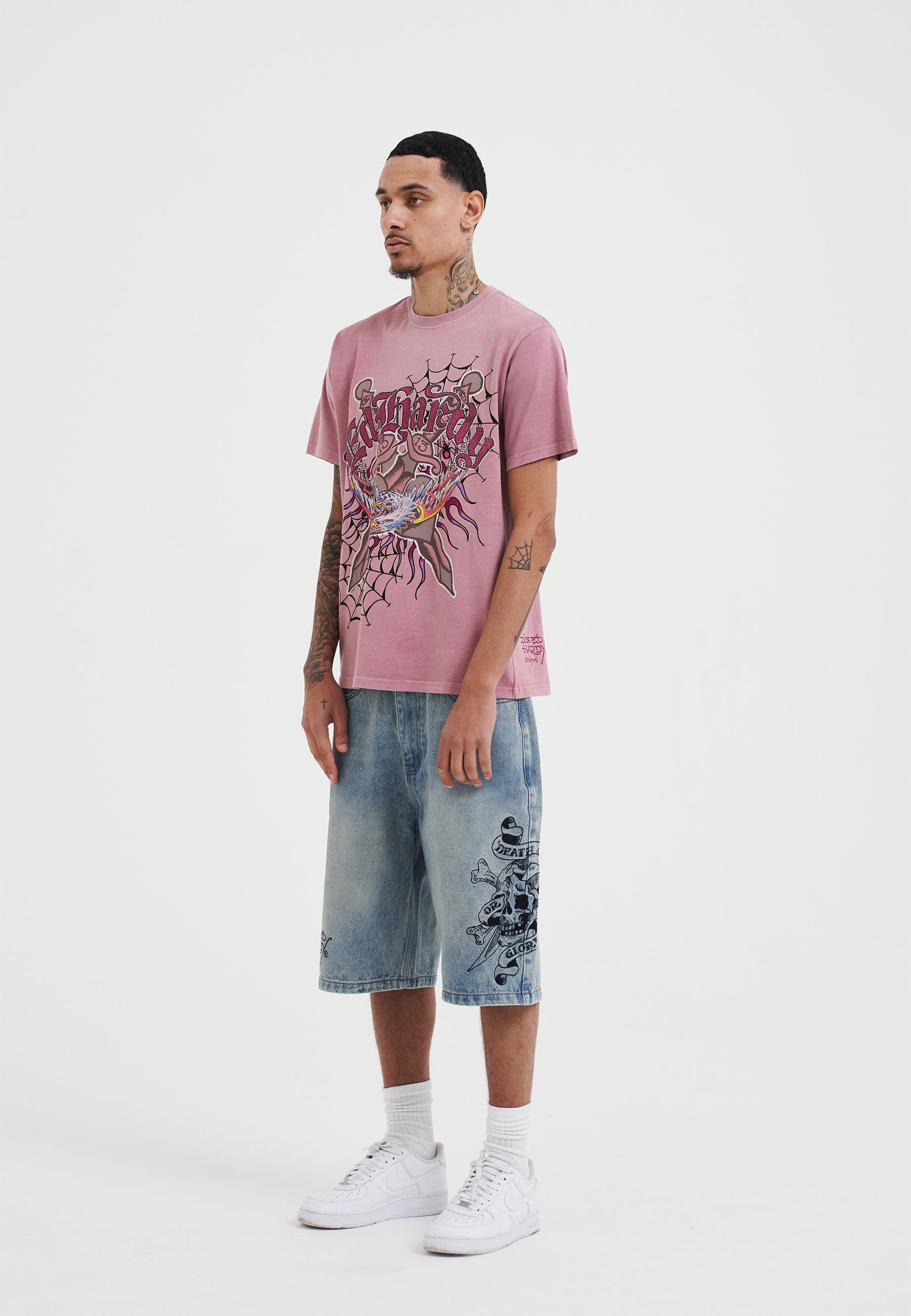Mens Gothic Lightning Eagle Diamante T-Shirt - Pink