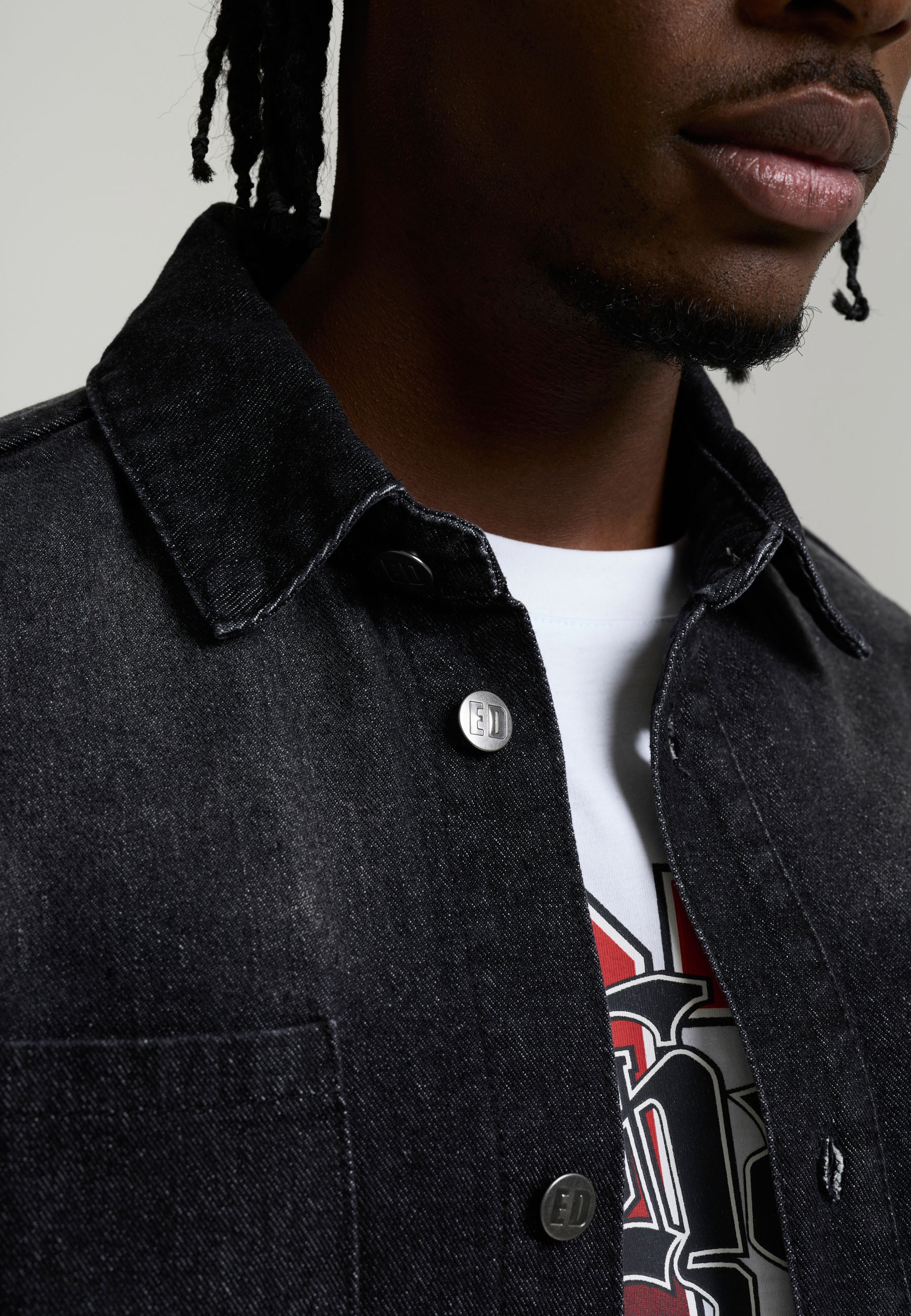 Mens Tonal Dragon Utility Denim Shirt in Black