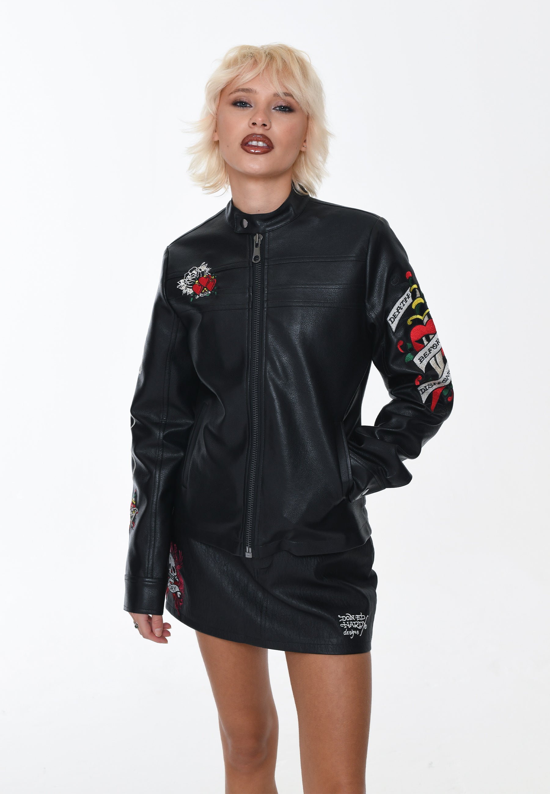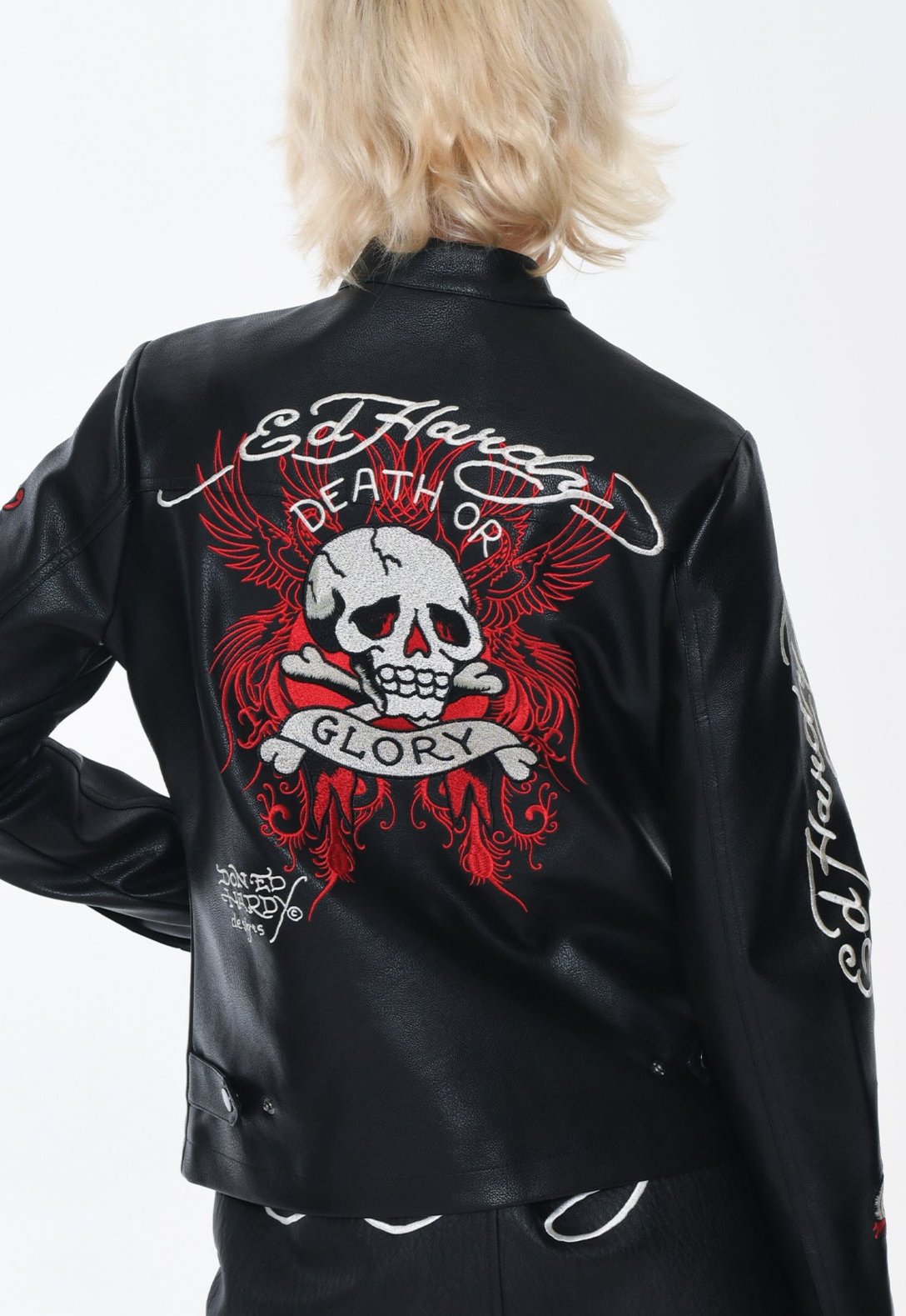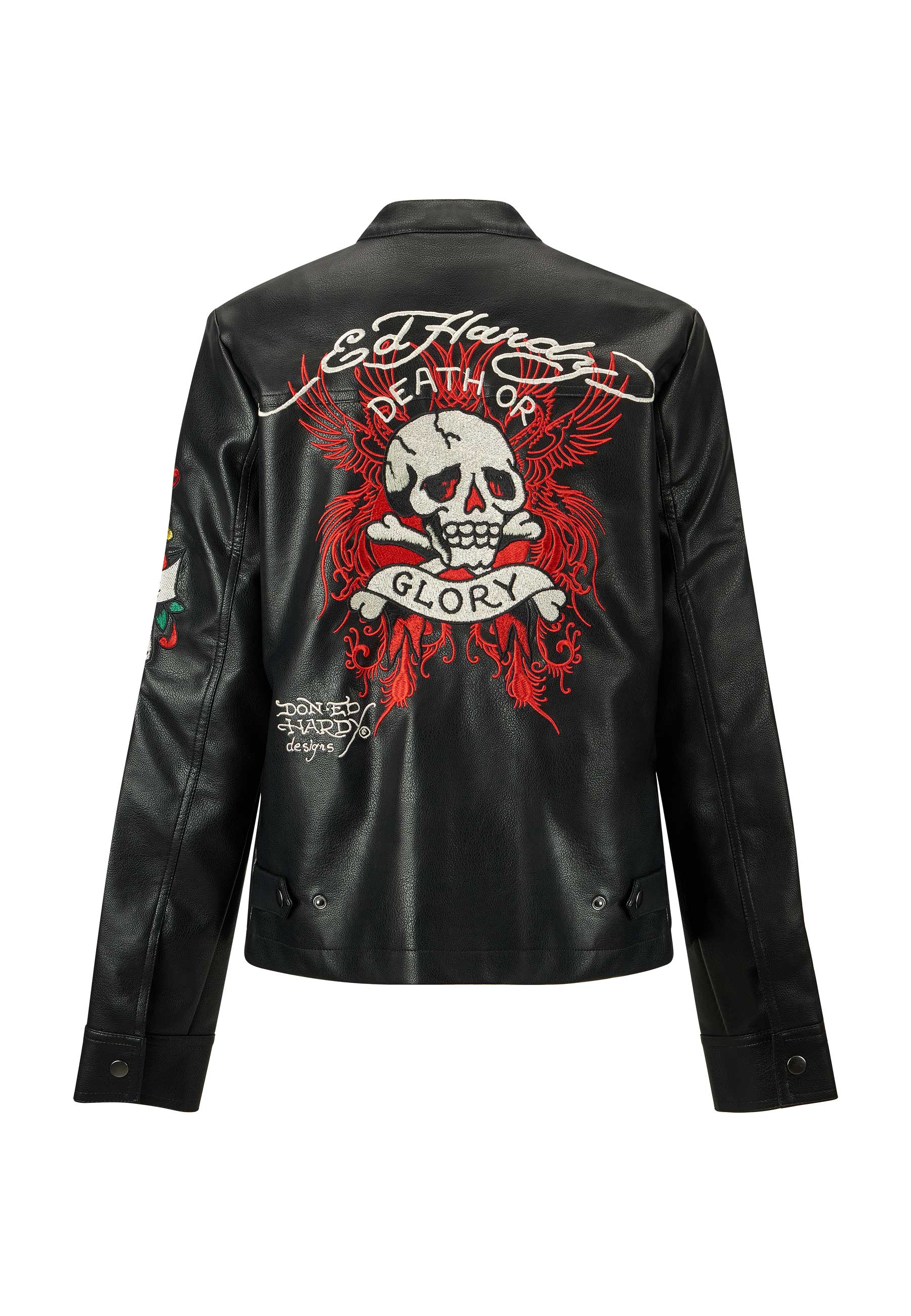 Womens Death Or Glory Vegan Leather Biker Jacket - Black