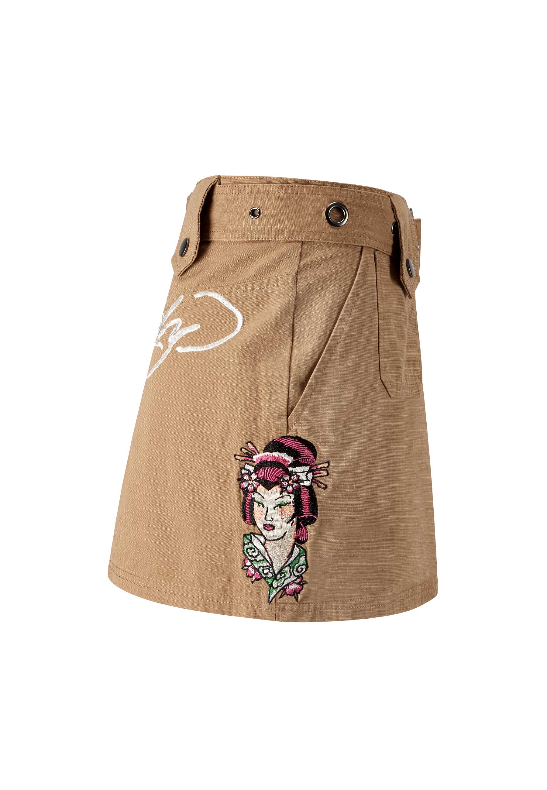 Womens Geisha Girl Cargo Mini Skirt - Brown