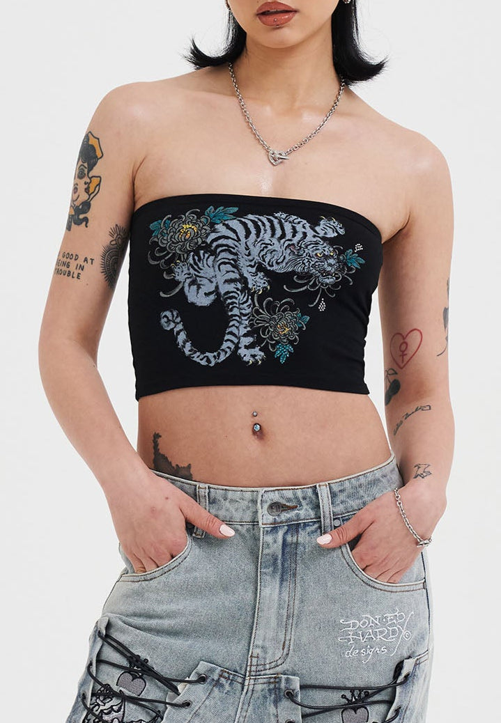 Womens Snow Tiger Diamante Bandeau Top - Black