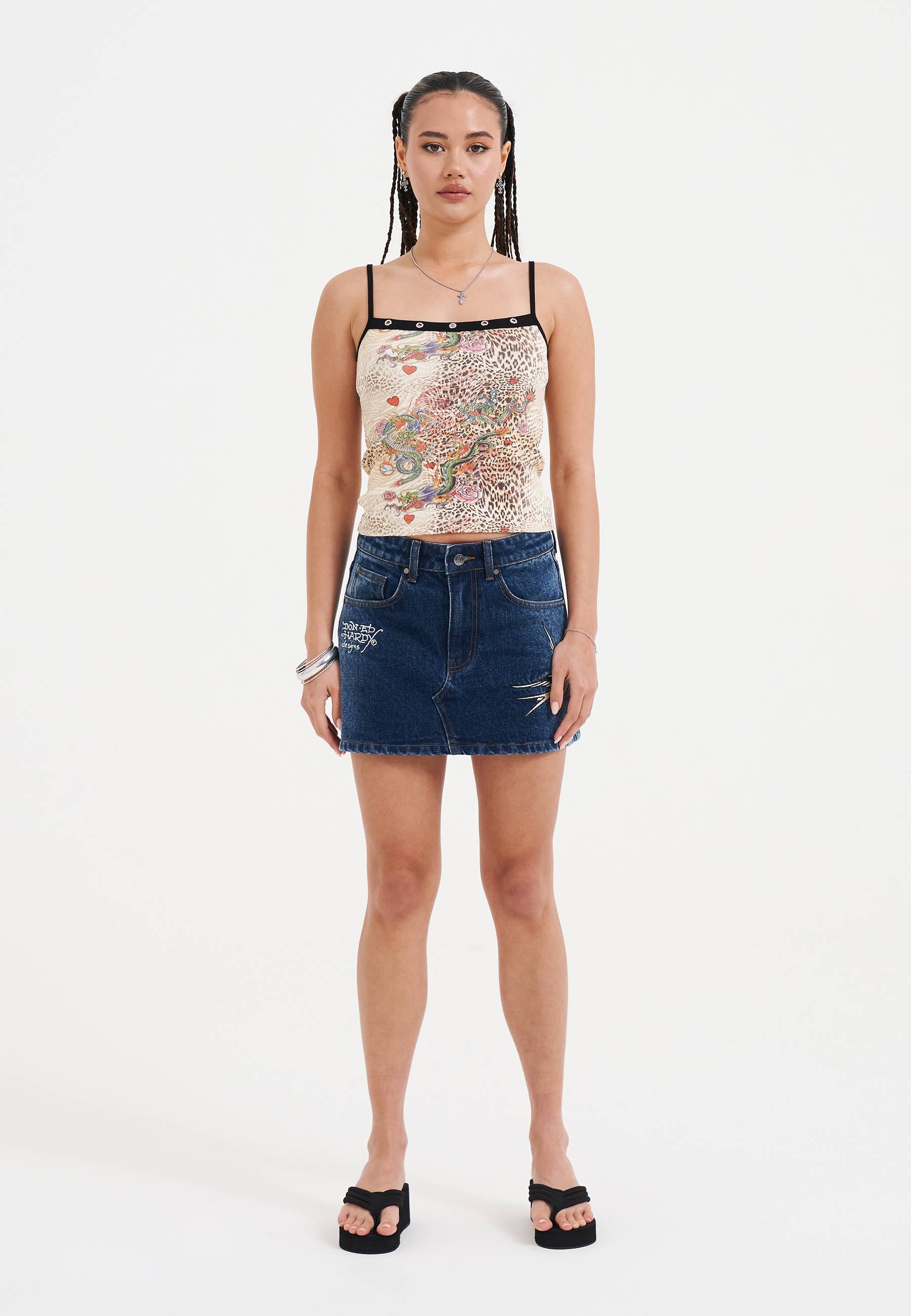 Womens Swallow Side Washed Denim Skirt - Indigo
