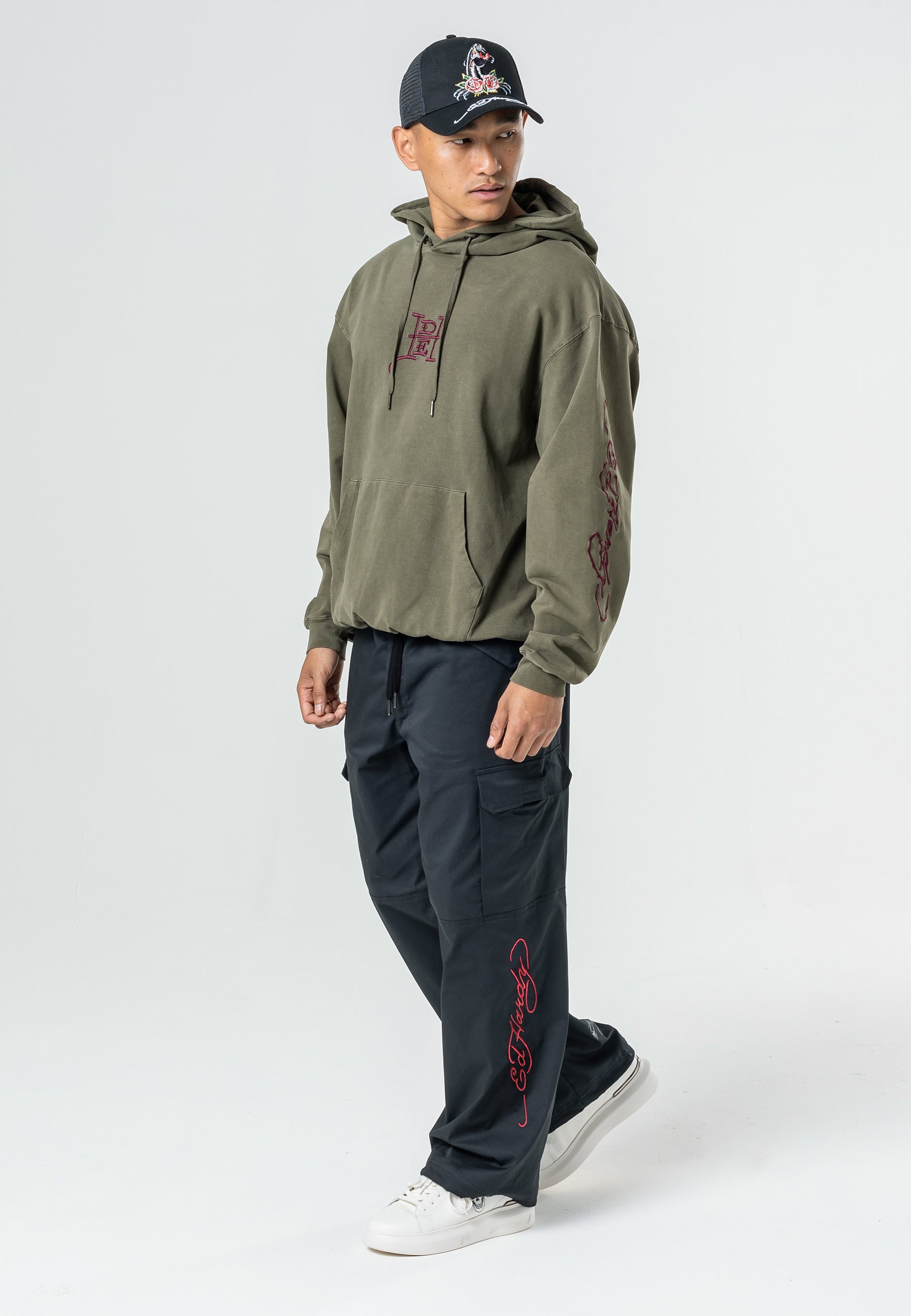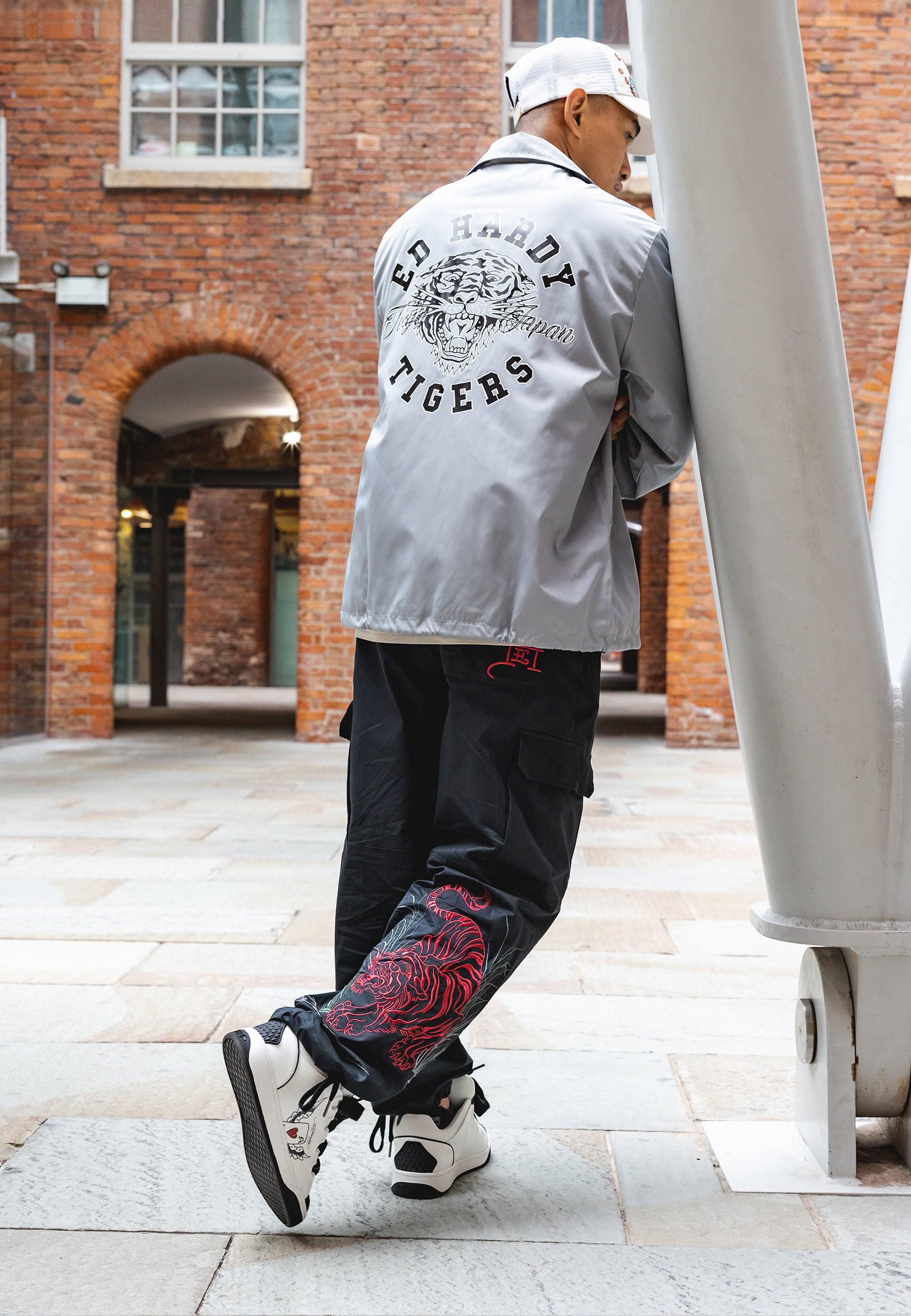 These Jungle Tiger Cargo Pant-Washed Black features the infamous Eds archive of high-definition embroidered Tiger on the lower back legs, as well as the embroidered Ed Hardy logo on the back zip pocket. These comfy cargos are perfect for chill, day and night vibes.