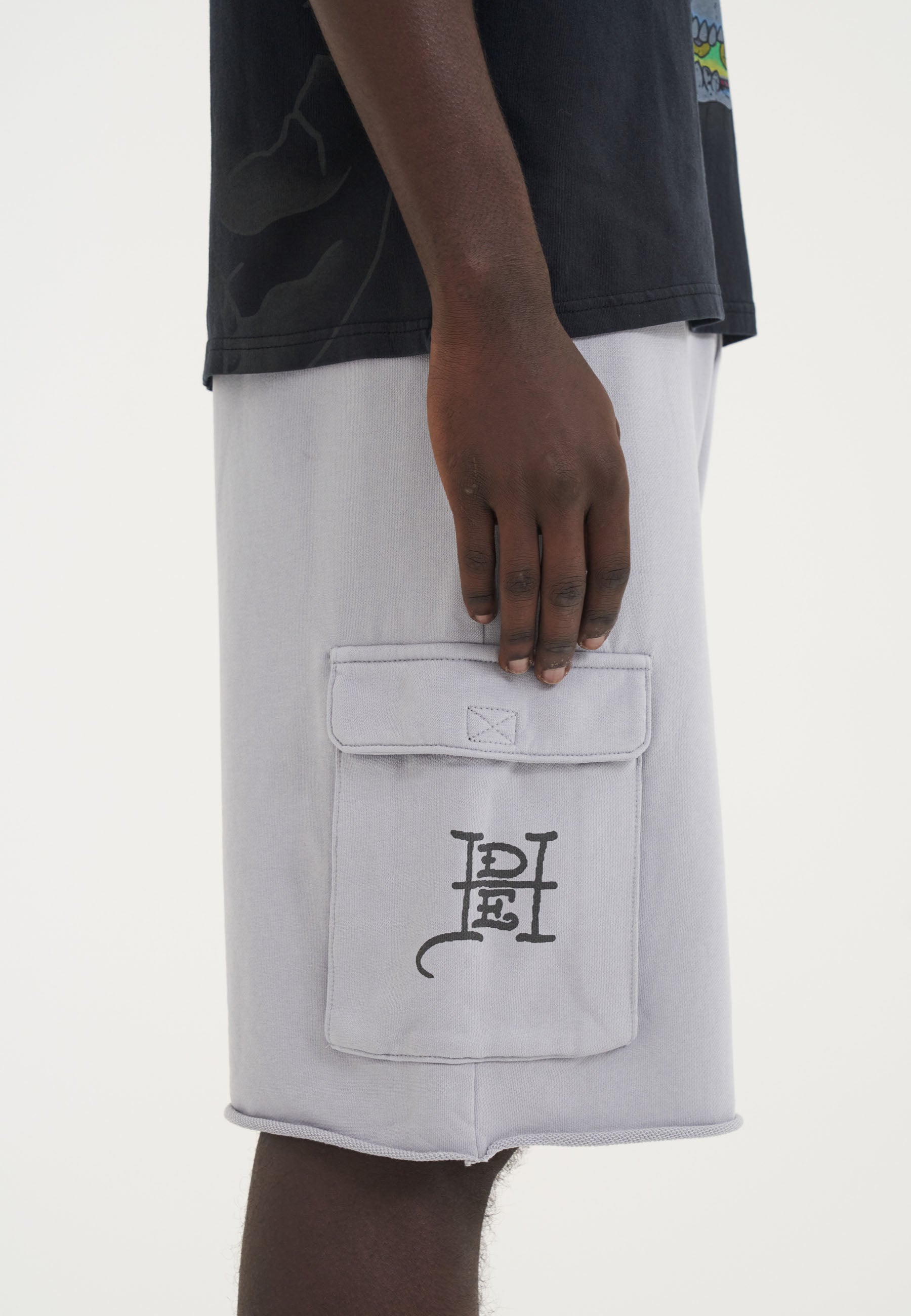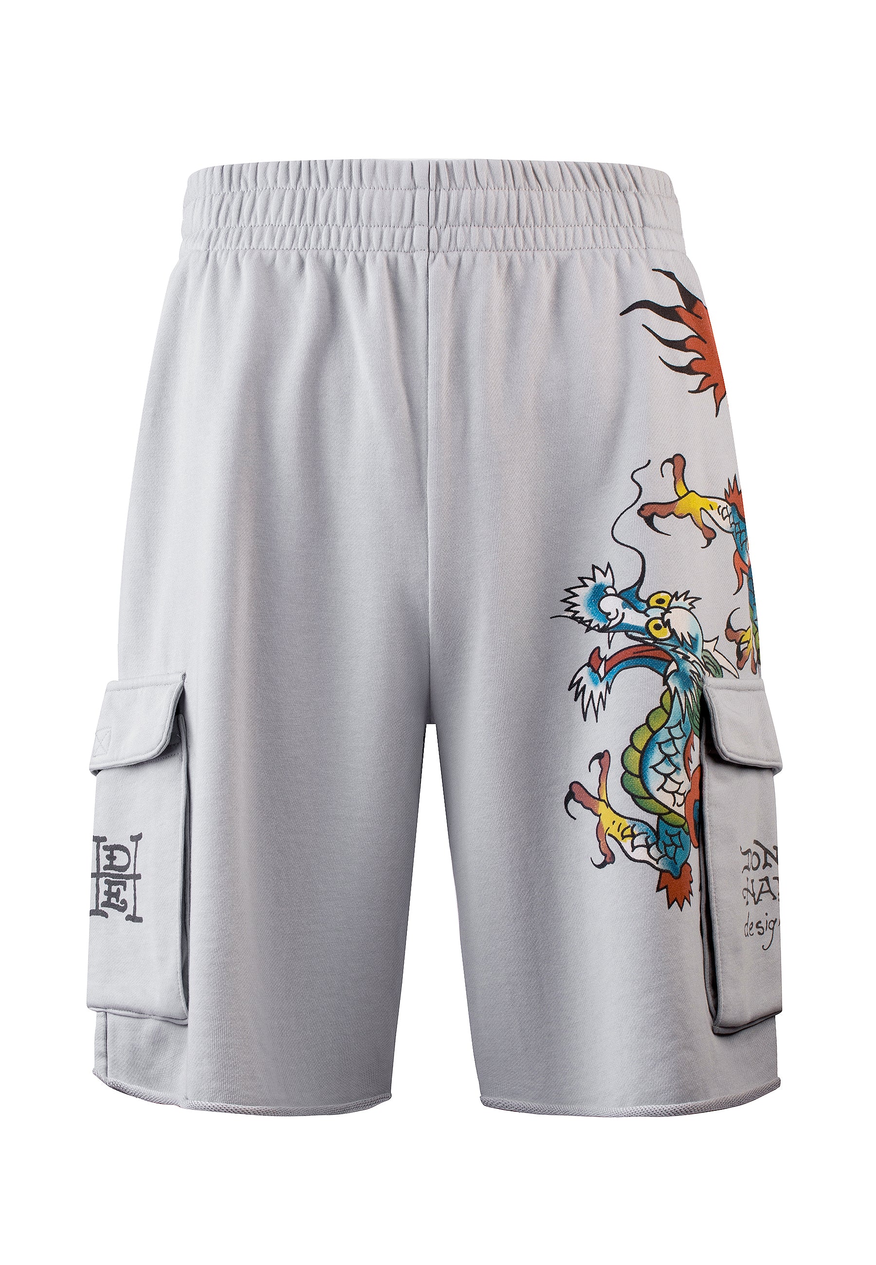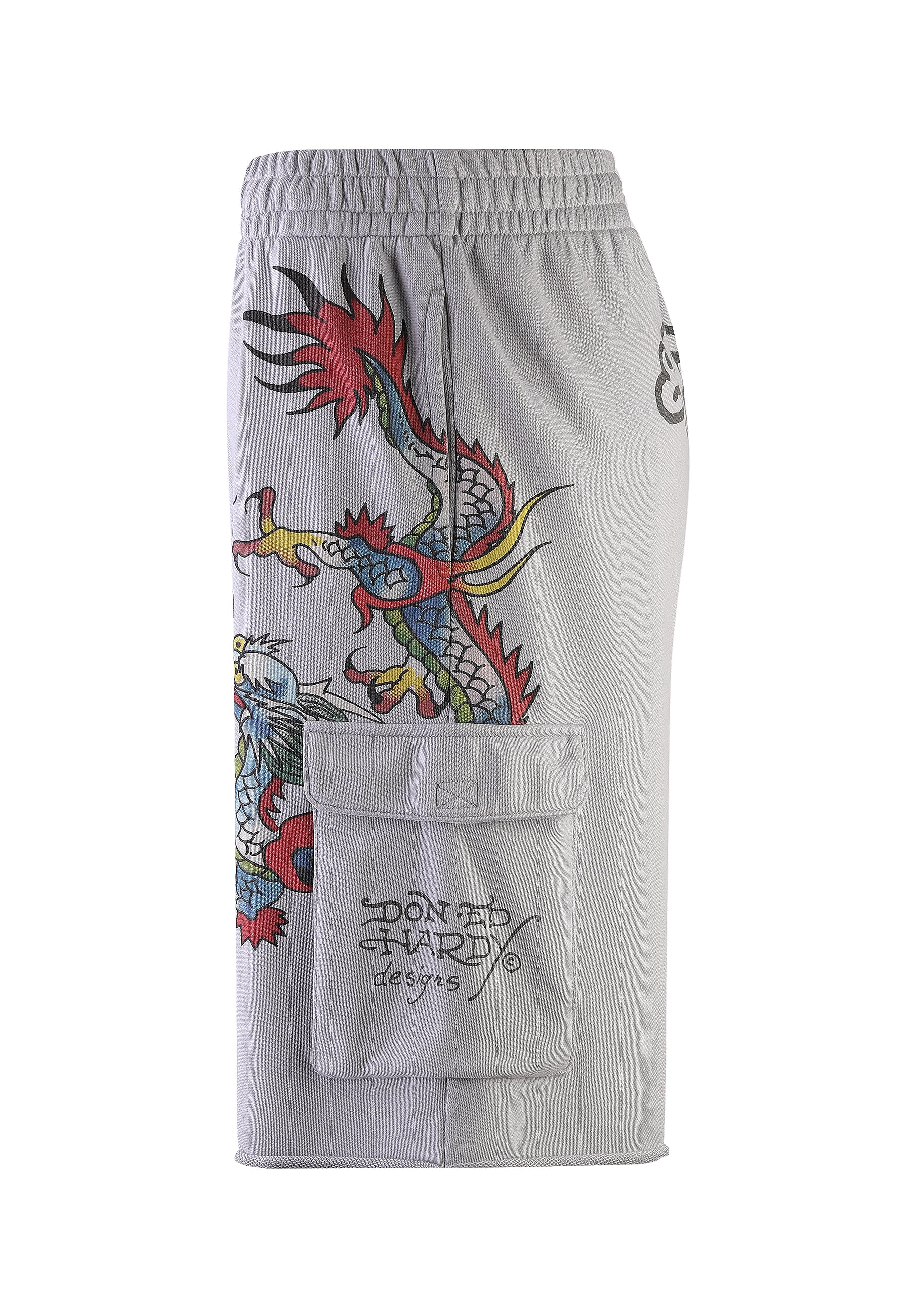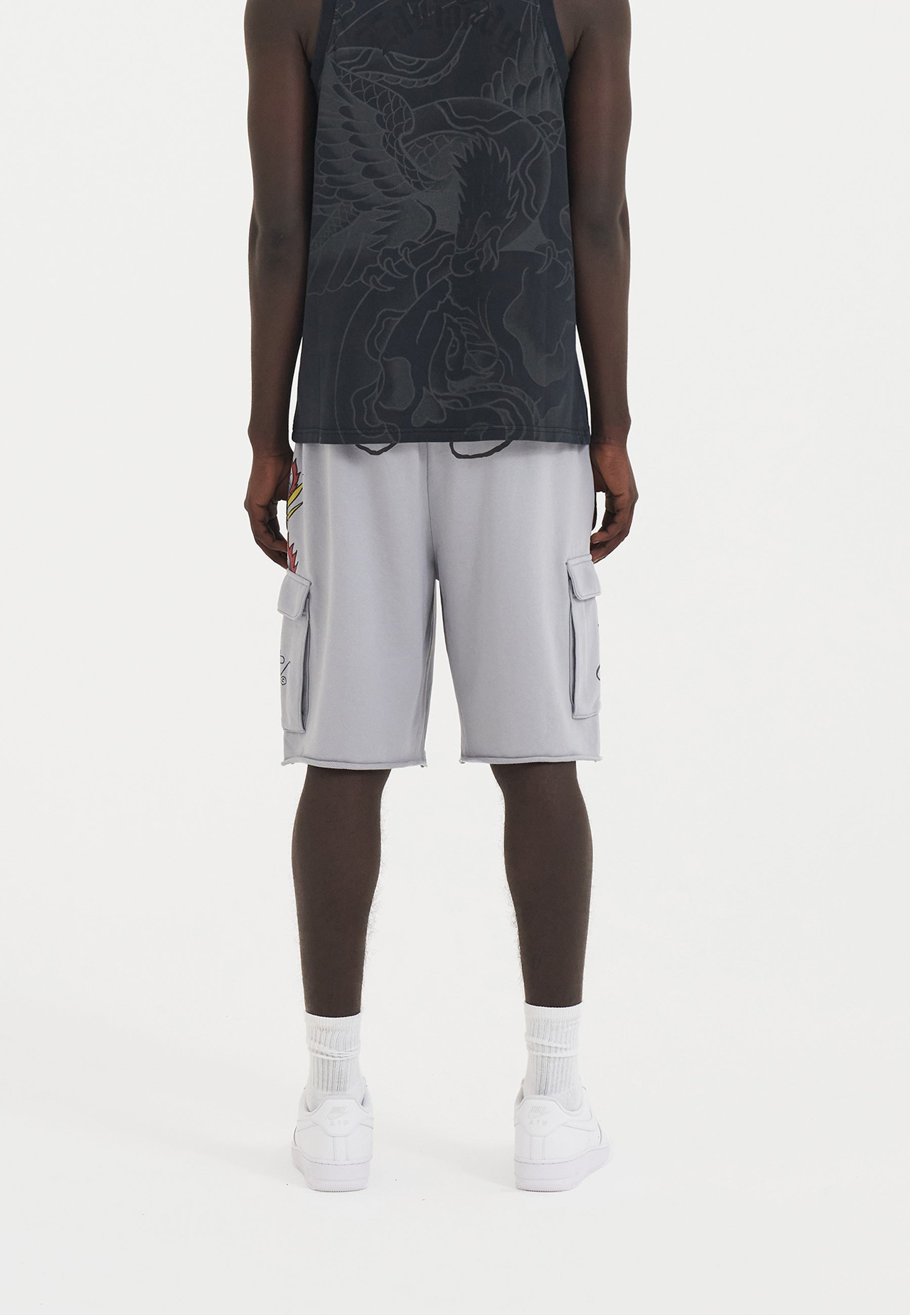 Mens Crawling Dragon Sweat Cargo Shorts - Grey