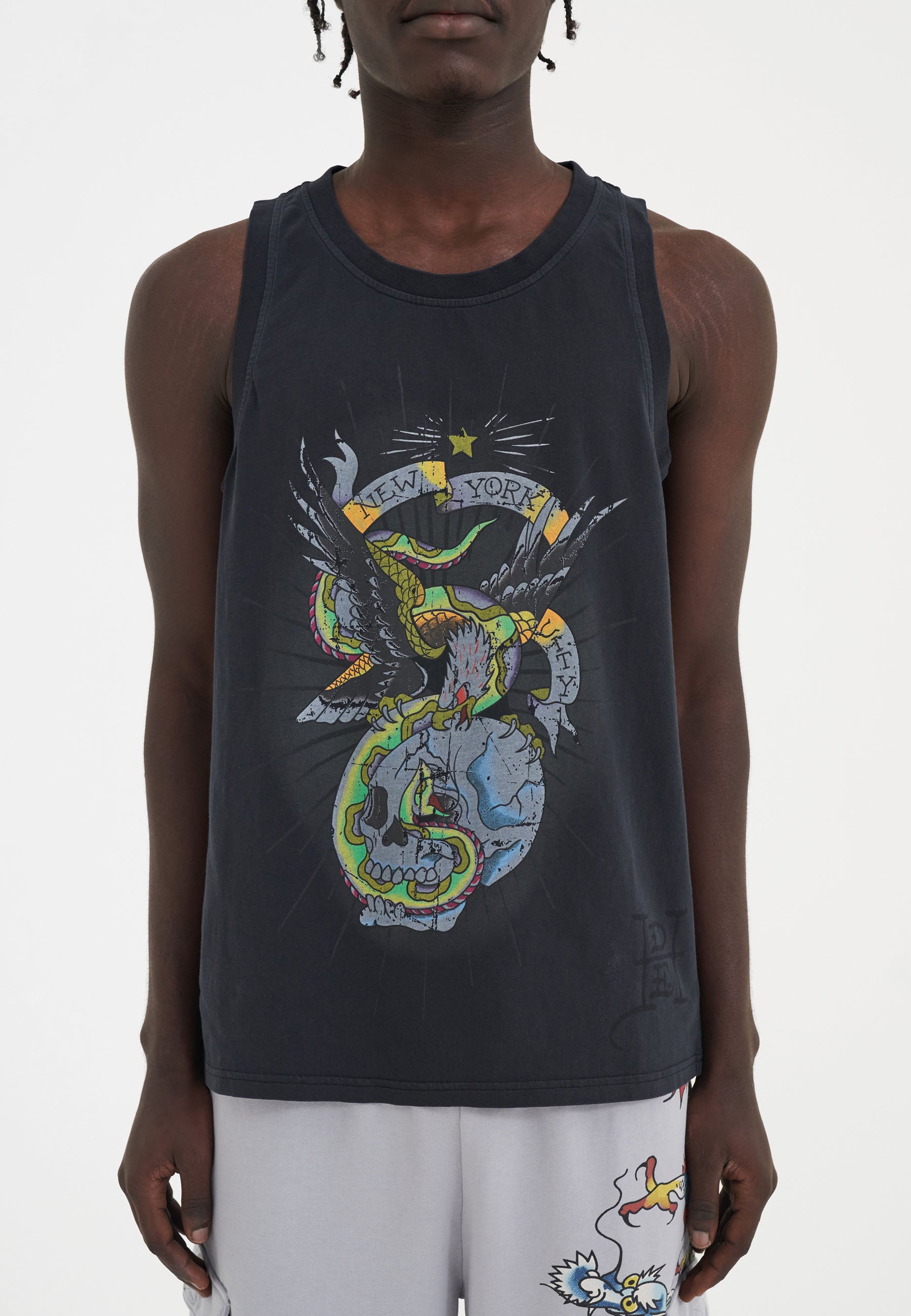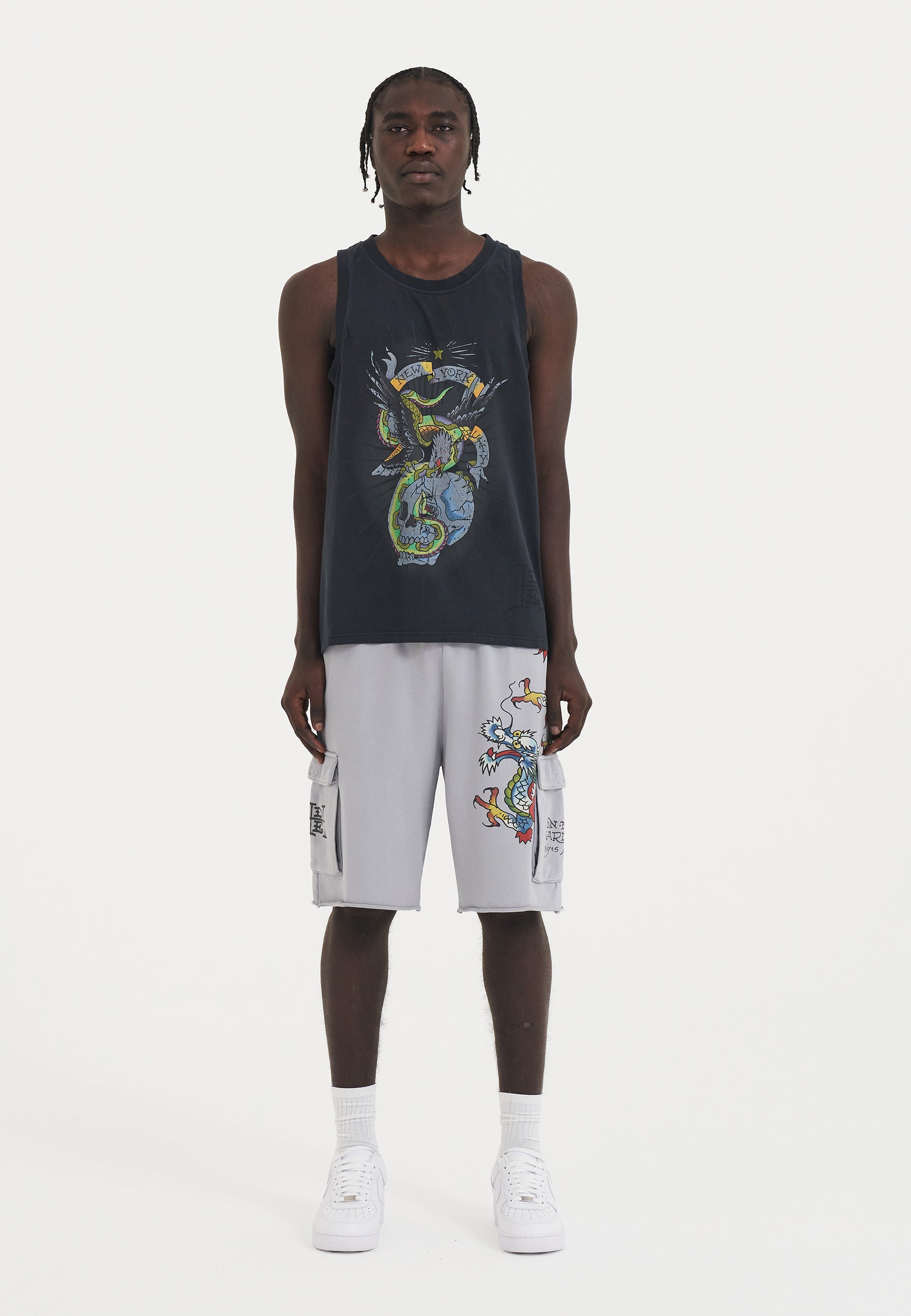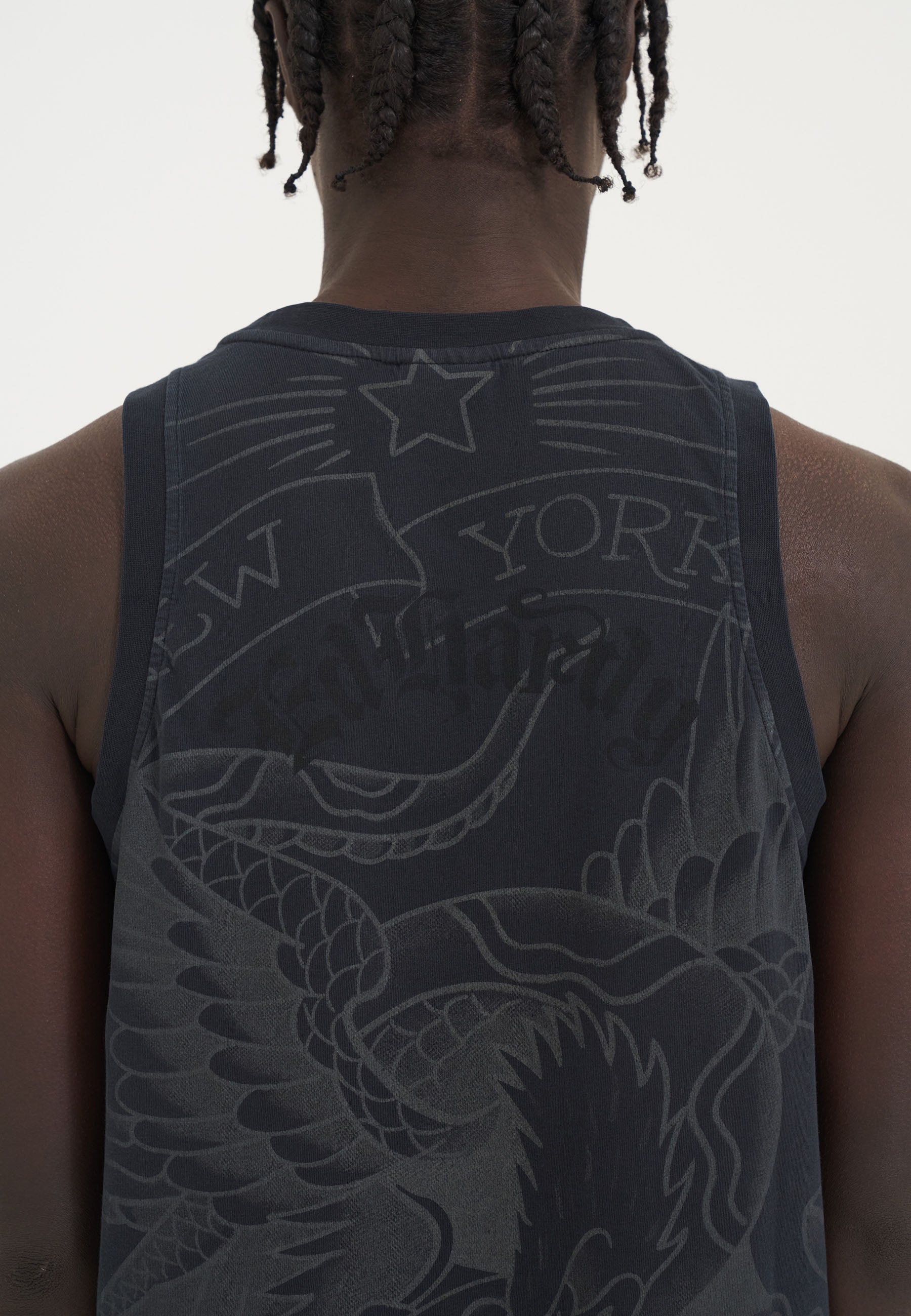 The SS24 collection invites you to defy the ordinary. Uncover the Eagle and Snake Battle Tank Top Vest and delve into Ed's distinctive take on punk design, driven by the spirit of creative liberation through his timeless graphic prints.