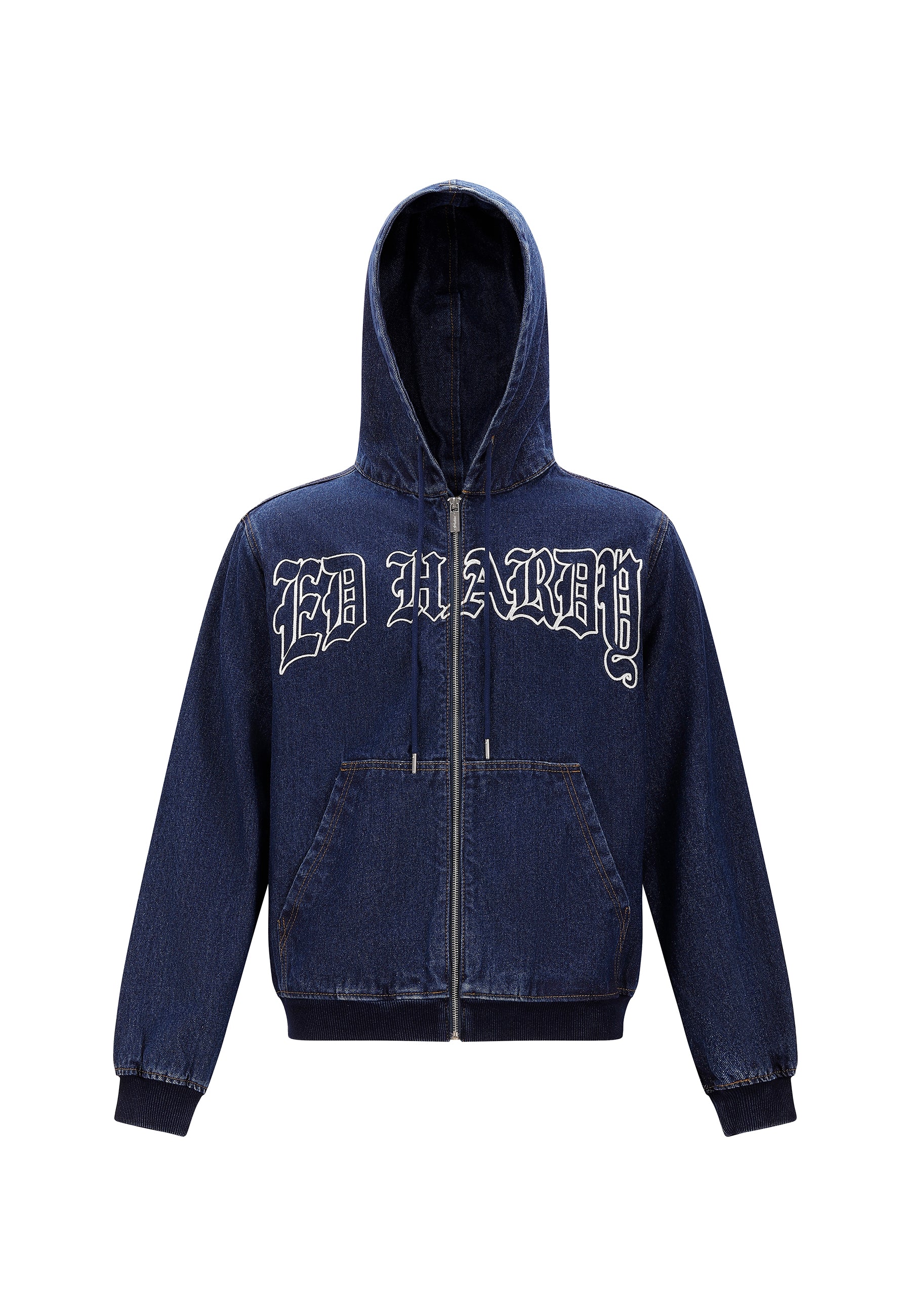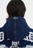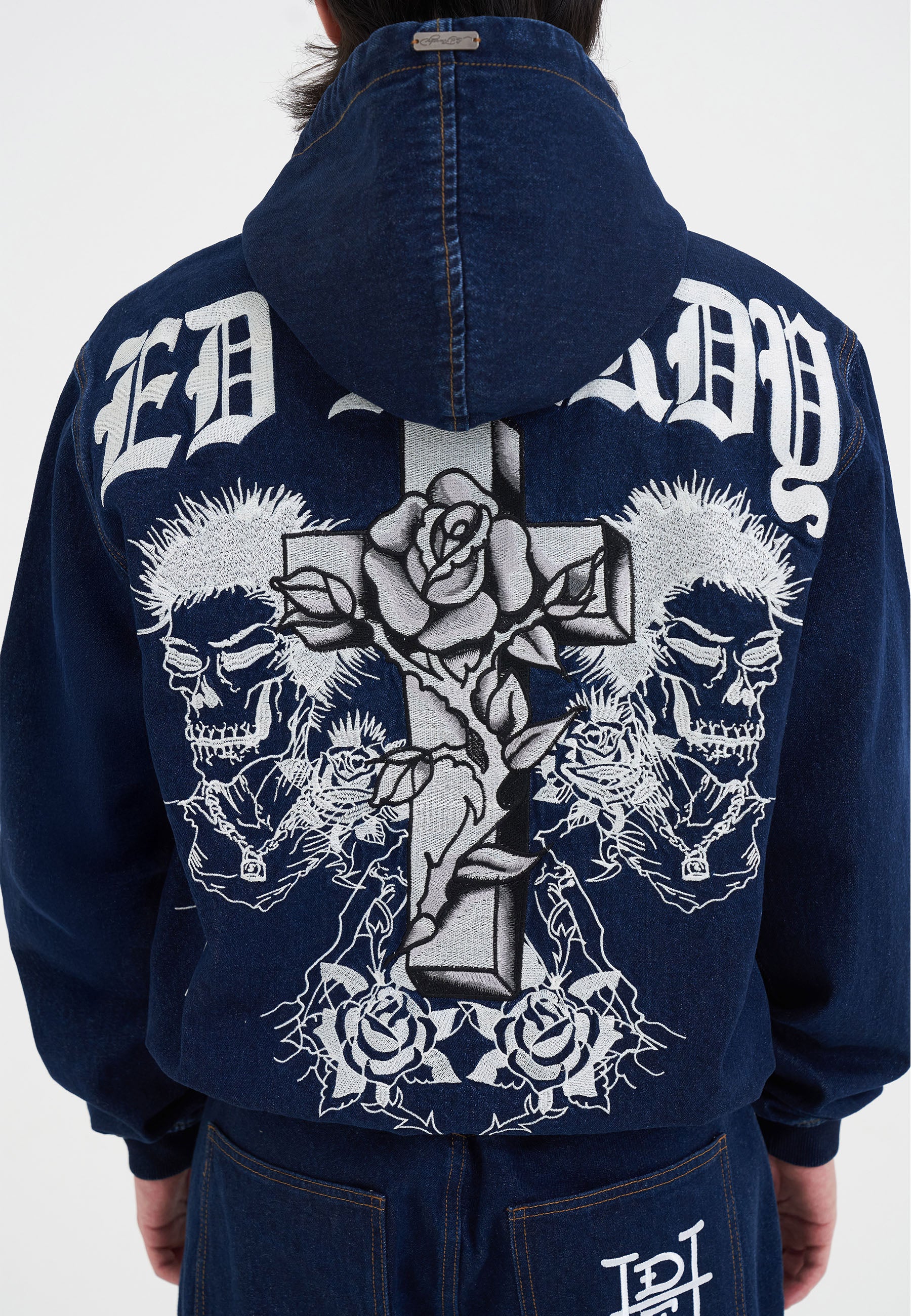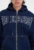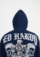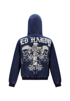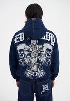 MENS FLAMING CROSS DENIM ZIP THRU HOODIE in Indigo