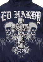 Mens Flaming Cross Denim Zip Thru Hoodie - Indigo