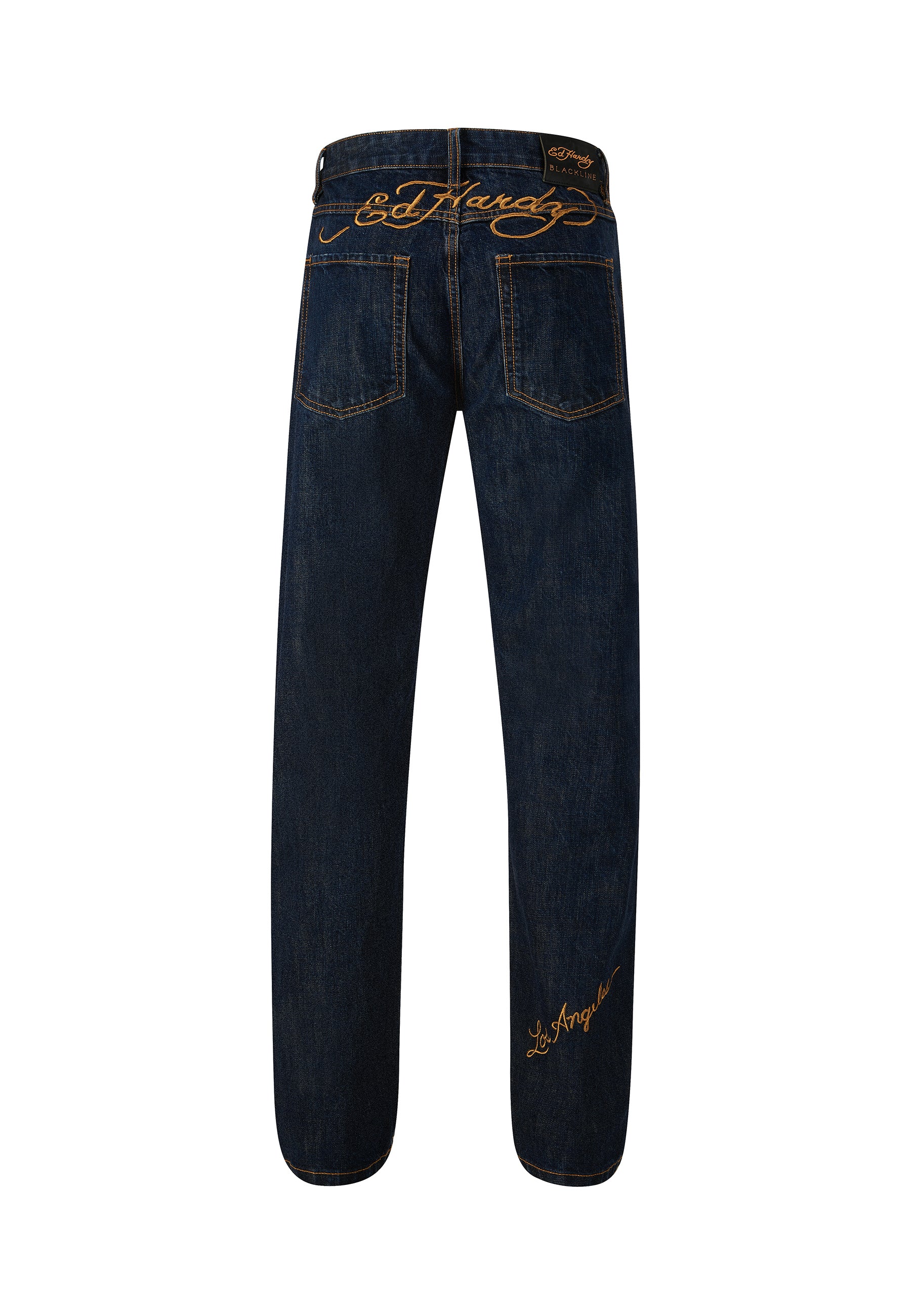 - Ed Hardy's Signature Logo Motif Across Reverse Pockets