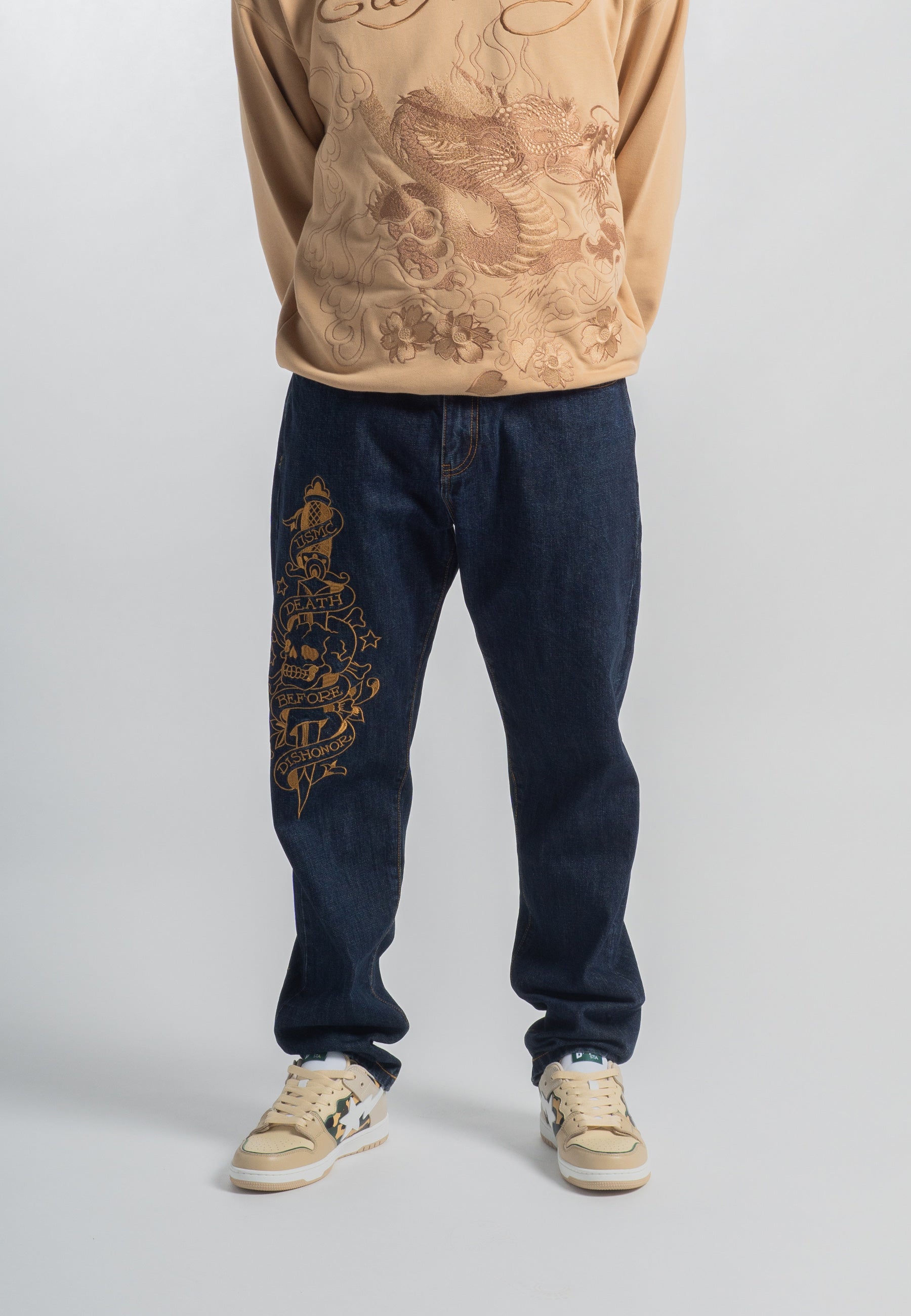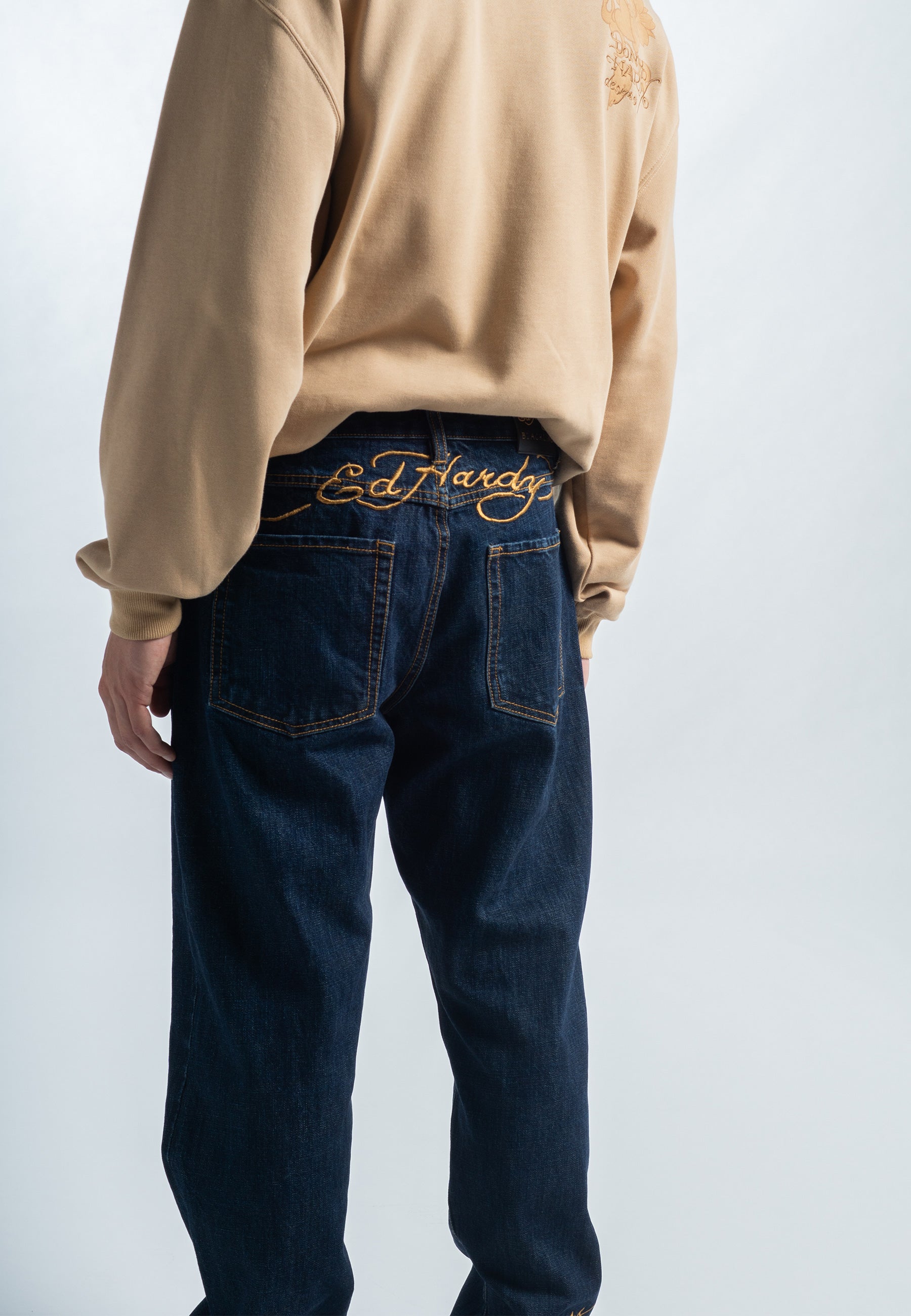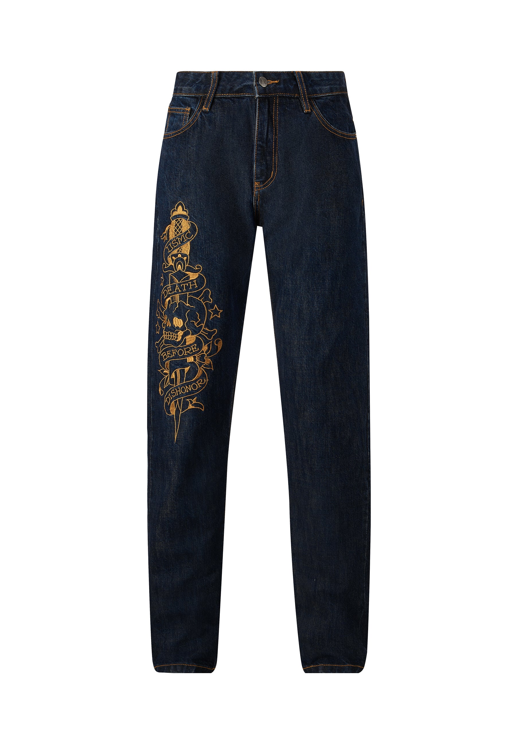 Revitalise your denim collection with the Men's NYC-Skull Tattoo Jeans from our A/W Collection. Crafted with vintage-inspired tonal embroidery and premium selvedge denim, consider these as a tribute to Ed Hardy's enduring artistry when worn and styled by you.