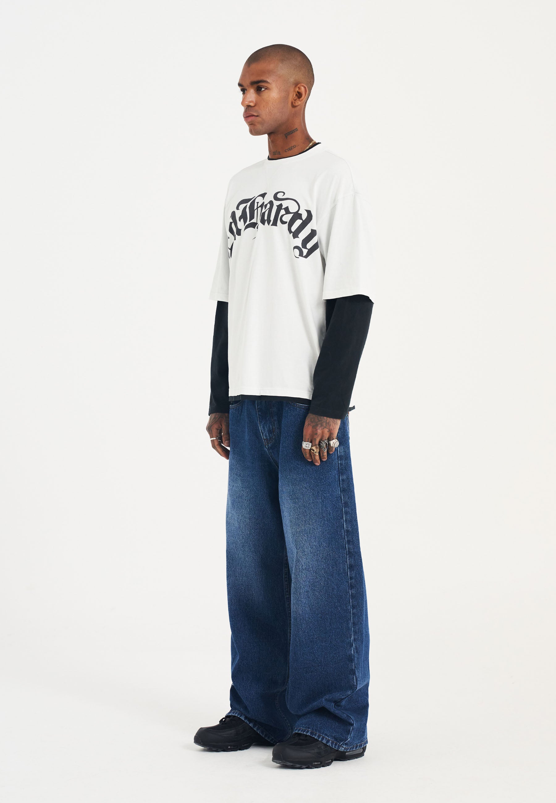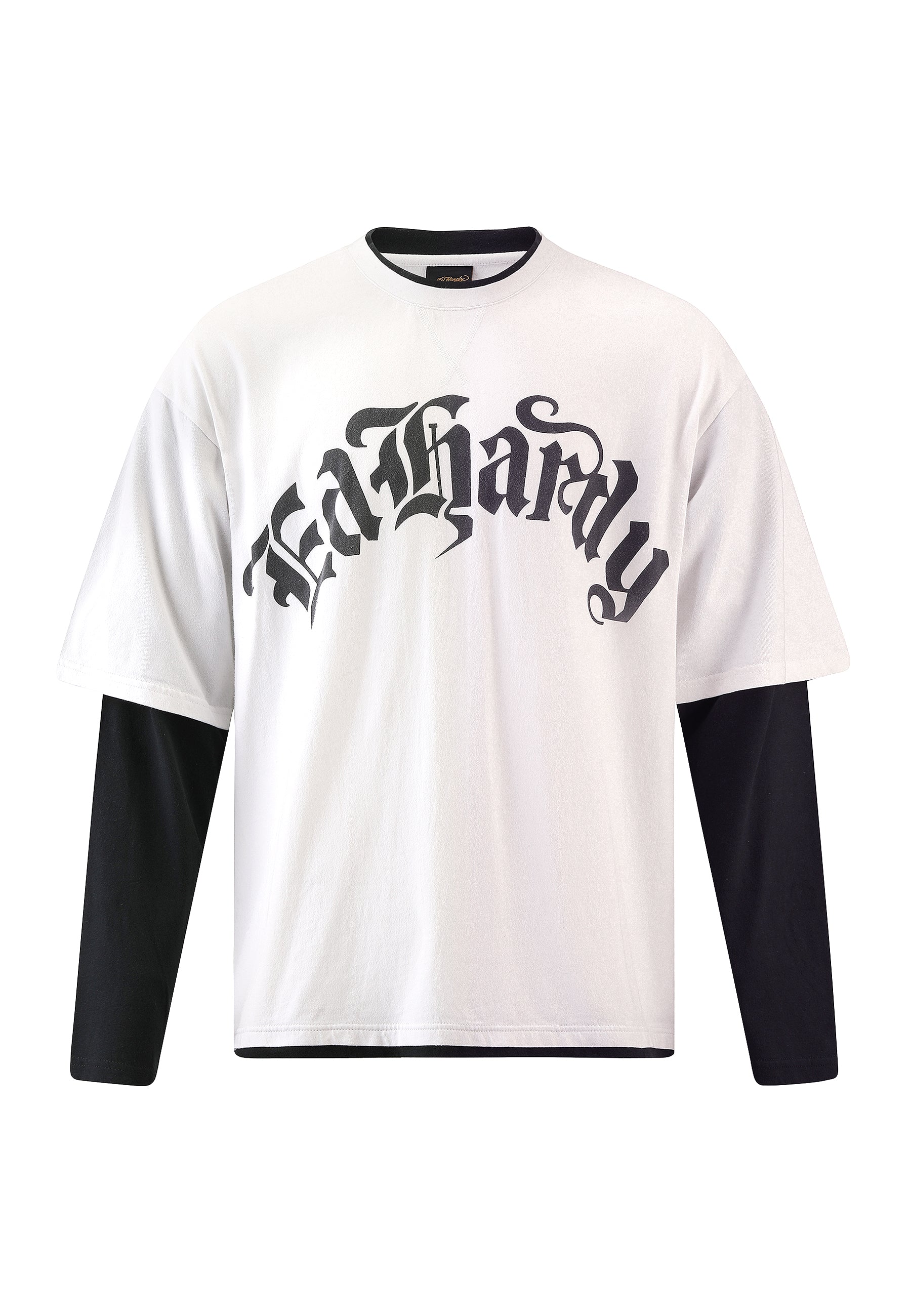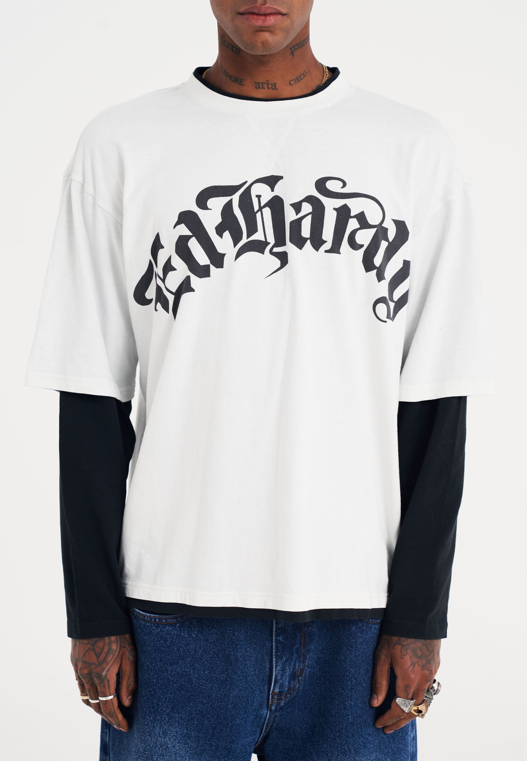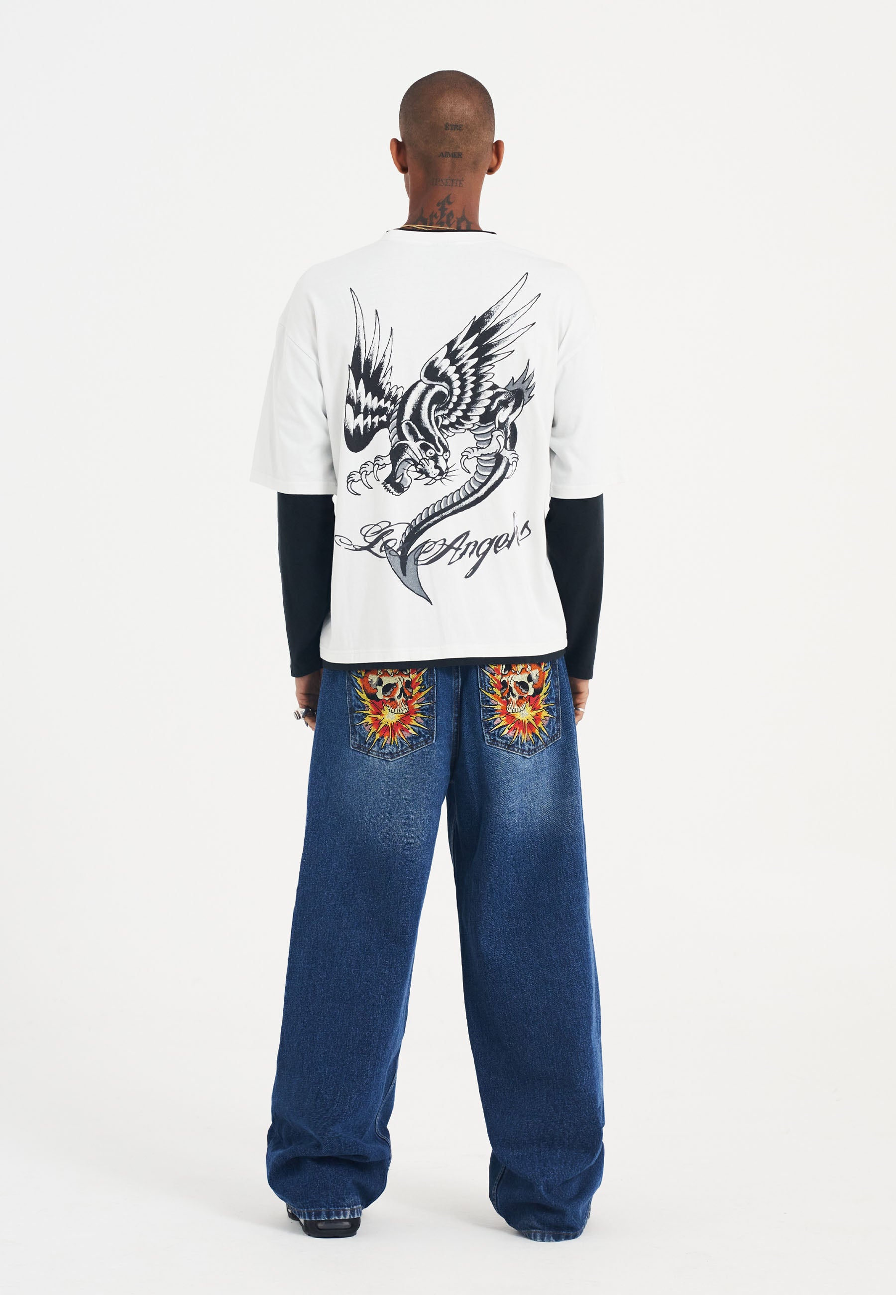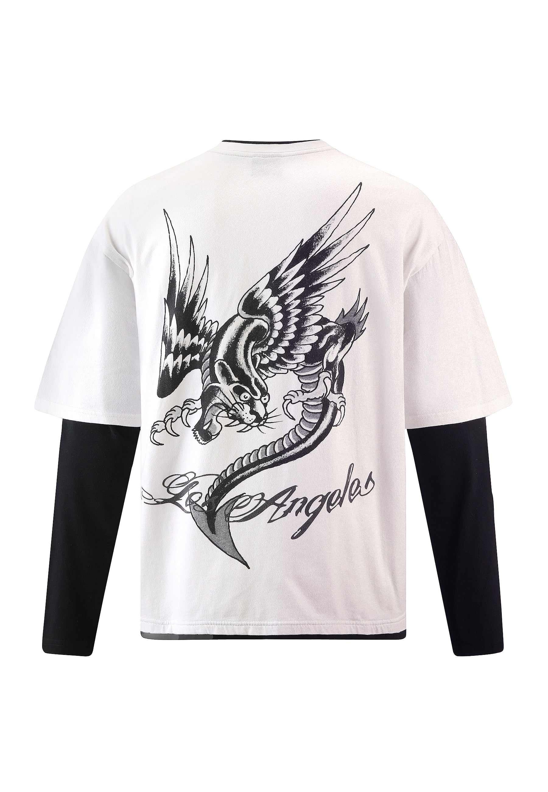 Mens Panther Dragon Double Sleeve Tshirt - White/Black