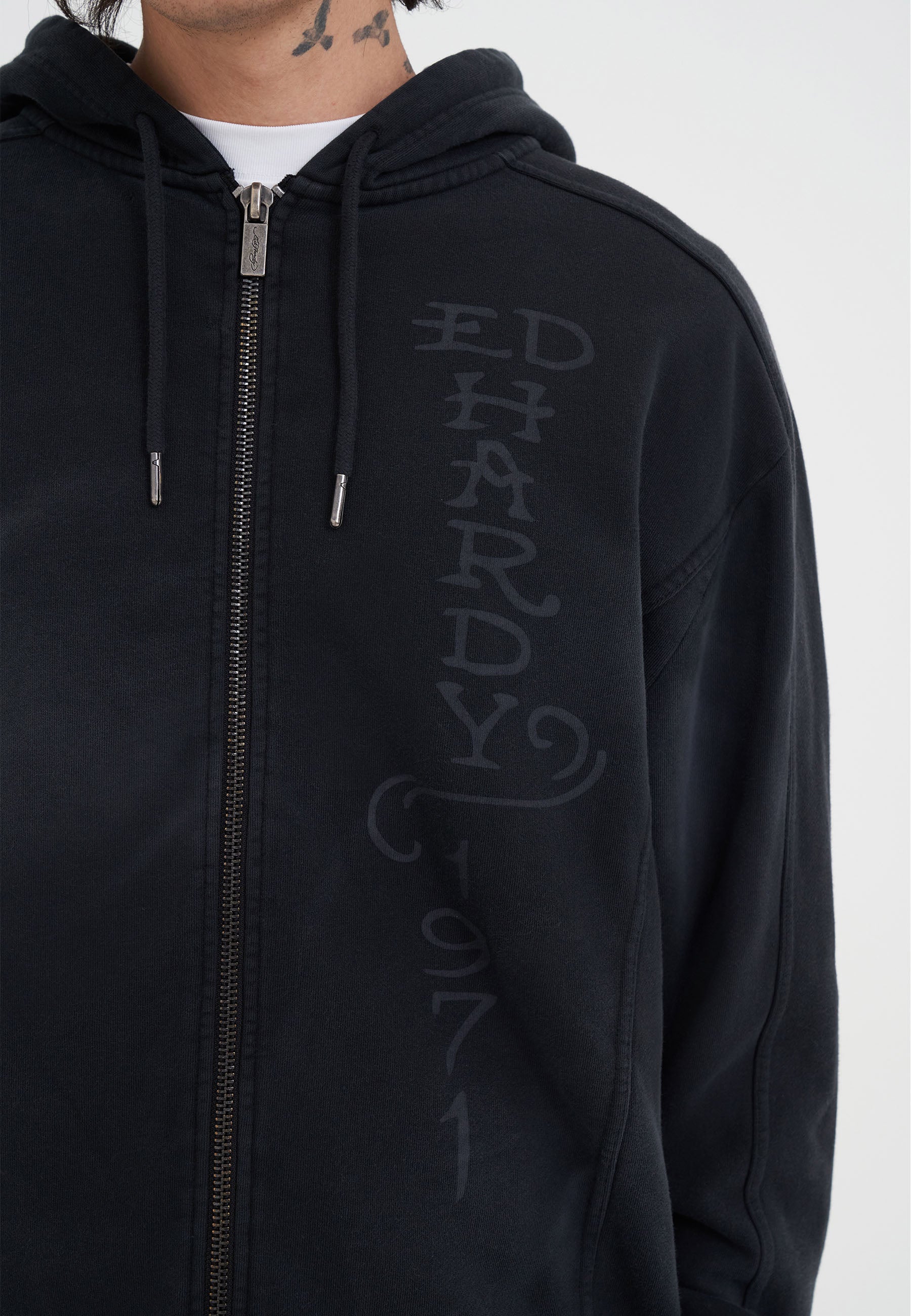 MENS SNAKE DAGGER ZIP THRU HOODIE in Black