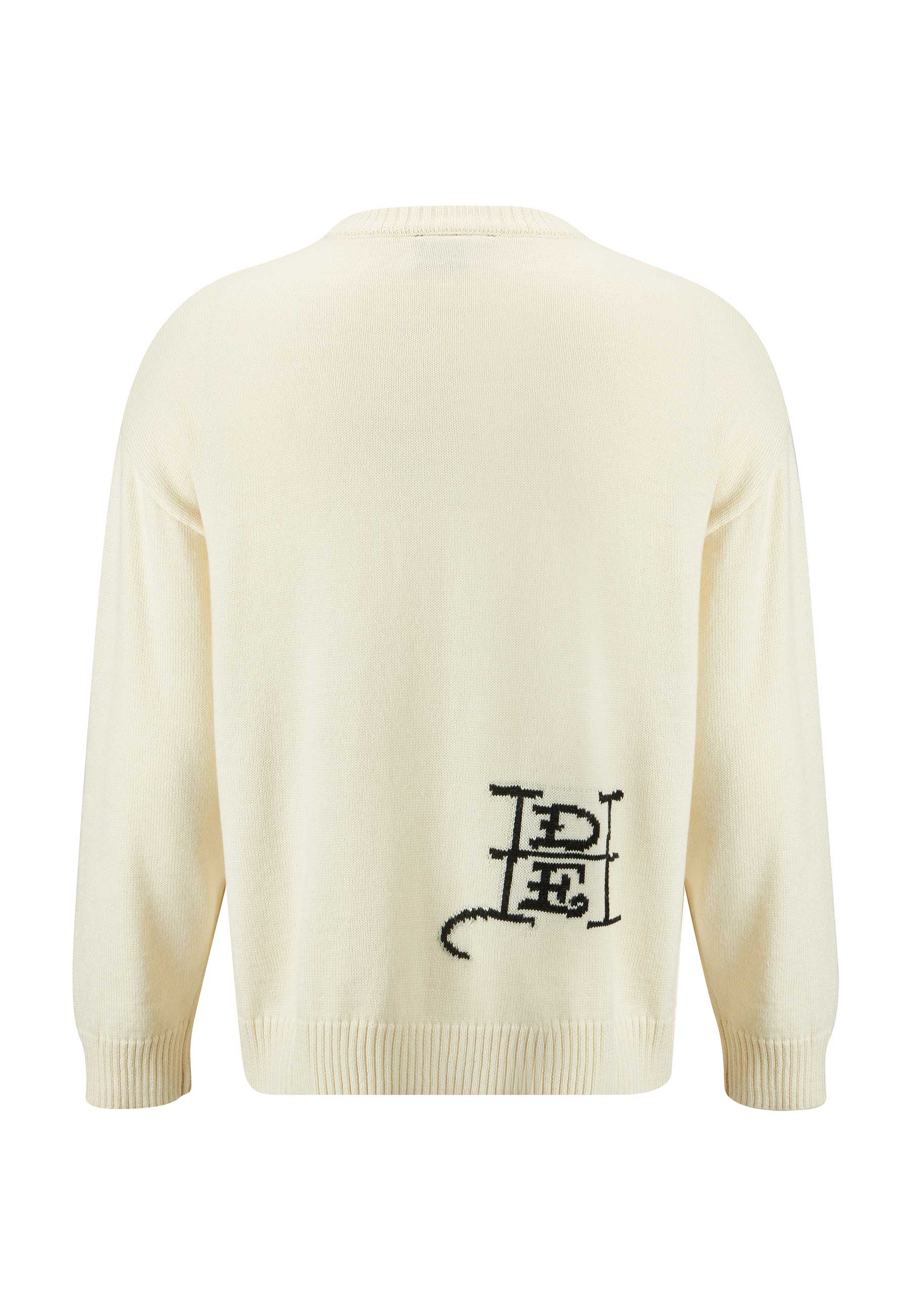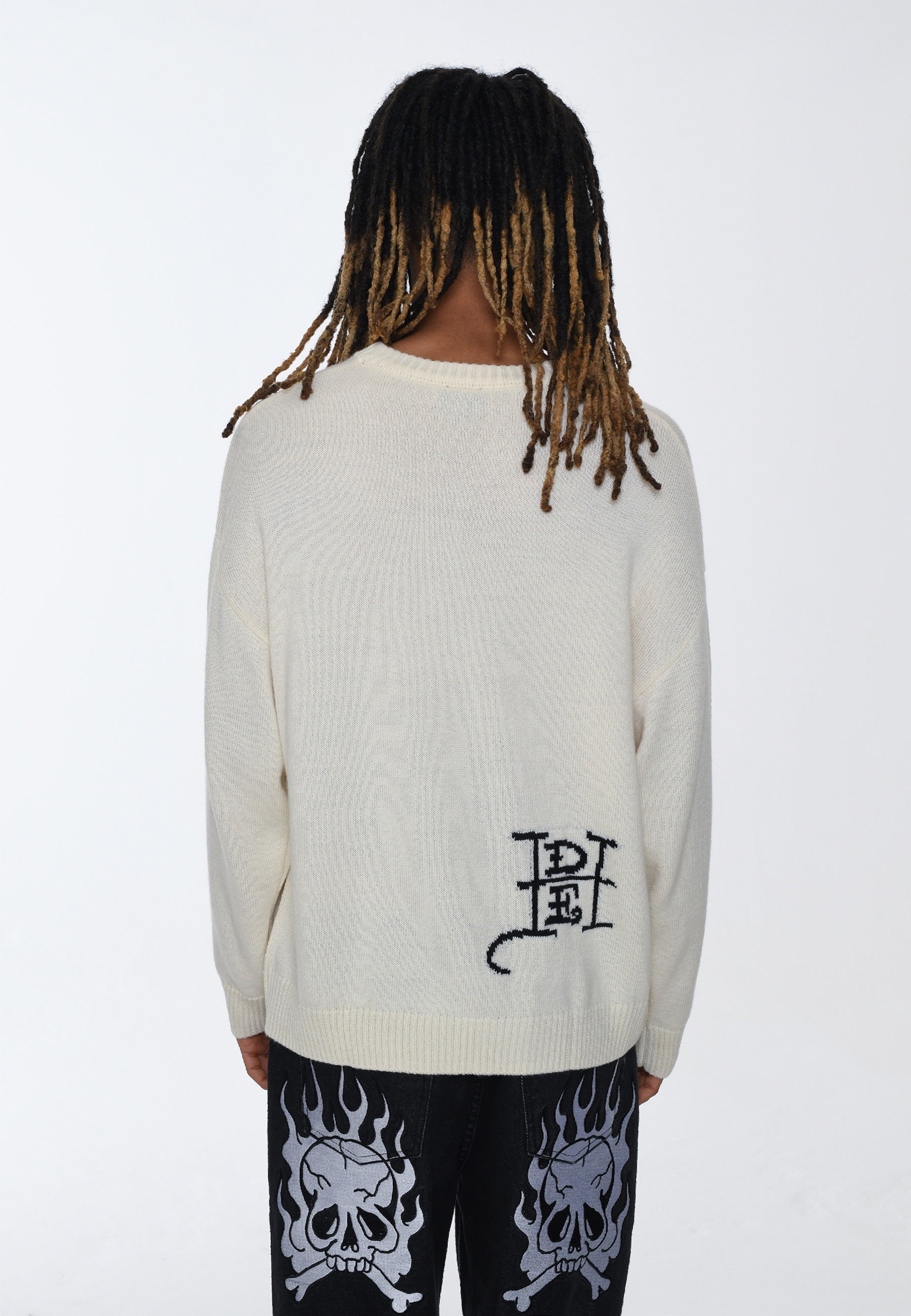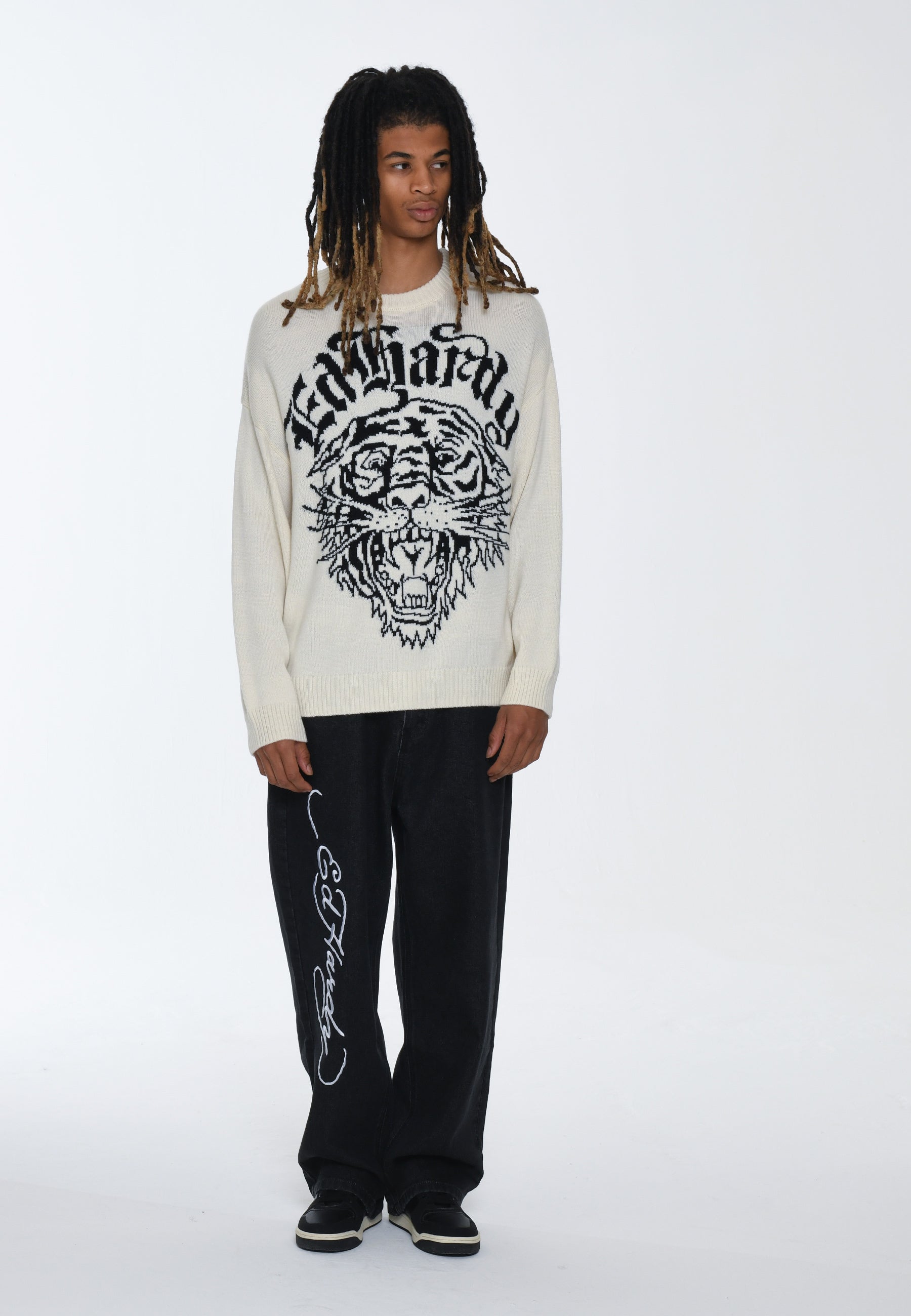 Mens Tiger-Roar Jaquard Knitted Jumper - Off White/Black